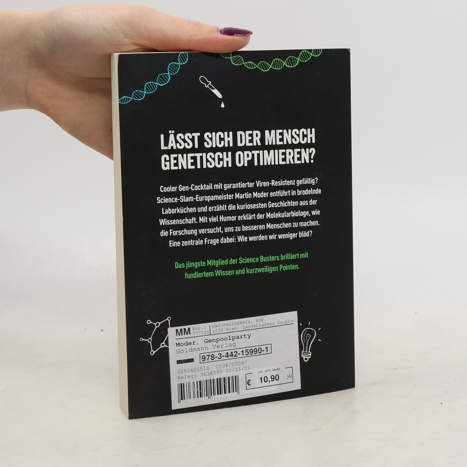 Wissenschaft einfach clever erklärt: Menschen optimieren? Das neue Buch von Science-Slam-Europameister Martin Moder entführt uns mit Witz, Verve und Wissen in die Naturwissenschaft der Gegenwart und Zukunft – und klärt dabei spielerisch die bedeutendsten Fragen unserer Zeit: Sind Persönlichkeit und Intelligenz einer Person wirklich biologisch bedingt? Oder ist es möglich, sich die neuesten Erkenntnisse aus der Genetik zunutze zu machen, um sich körperlich und geistig ein kleines Upgrade zu verleihen? Oder gar ein ganz neuer Mensch zu werden? Molekularbiologie auf Nobelpreis-Niveau, jetzt im Taschenbuch: vom jüngsten und bestgebauten der fabelhaften Science Busters!
