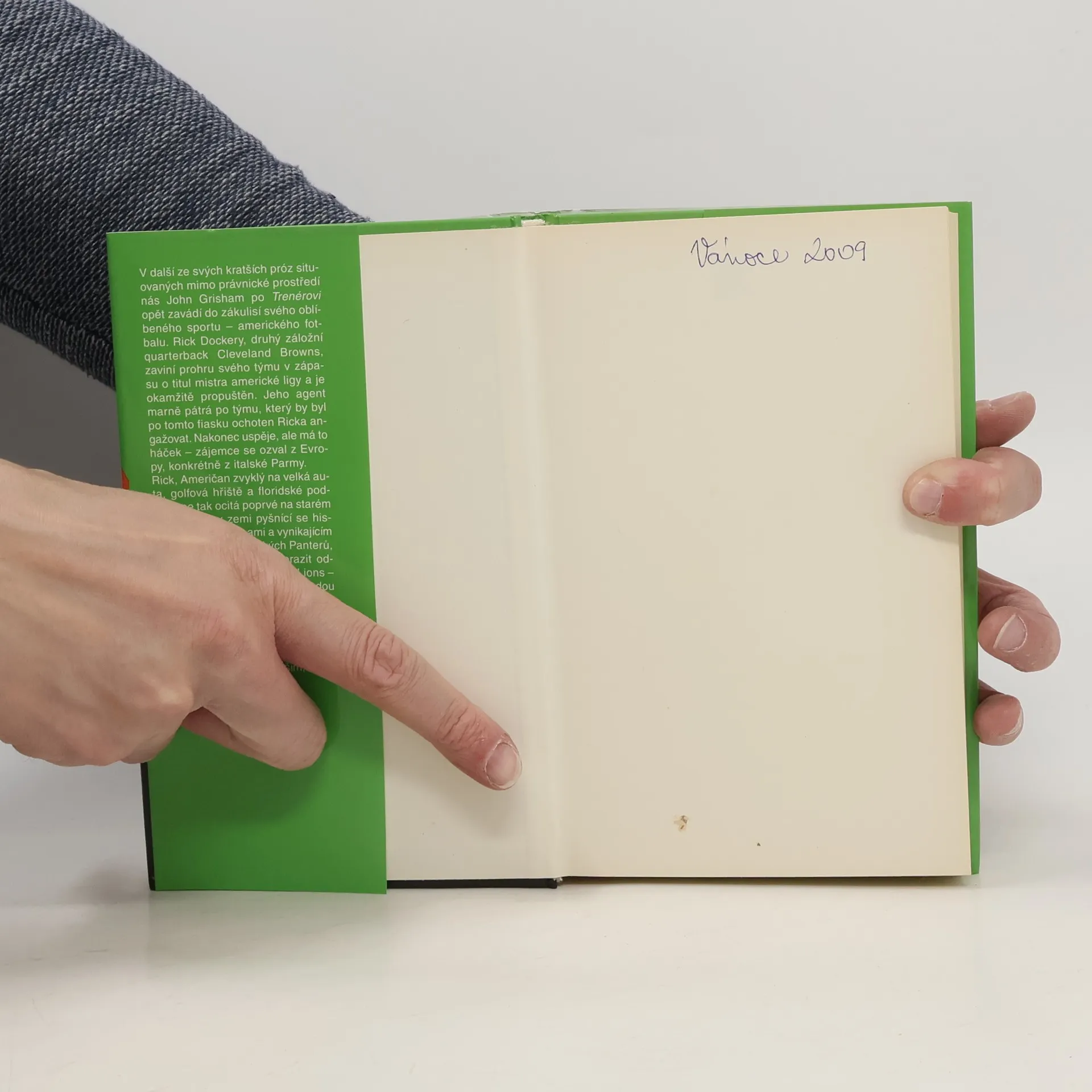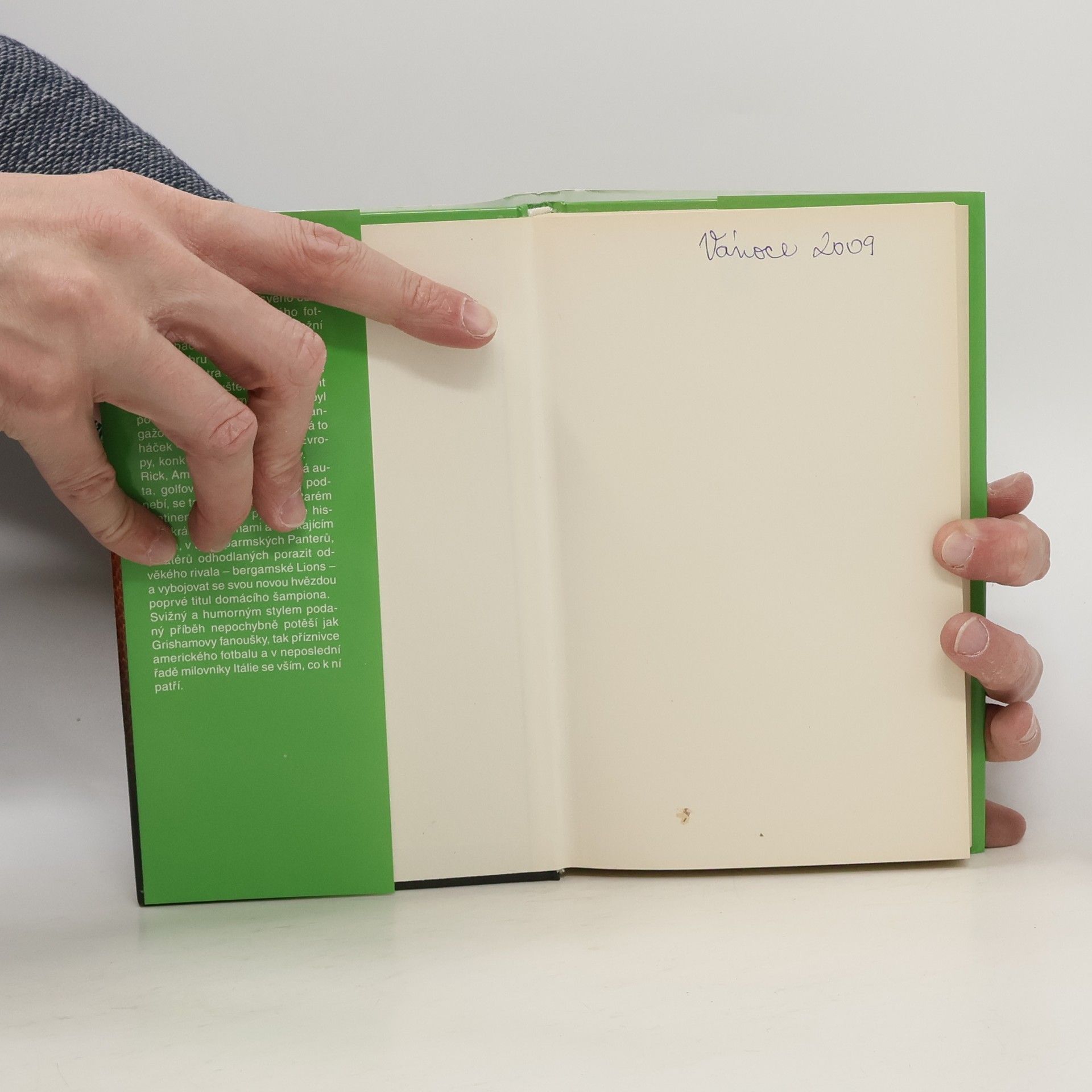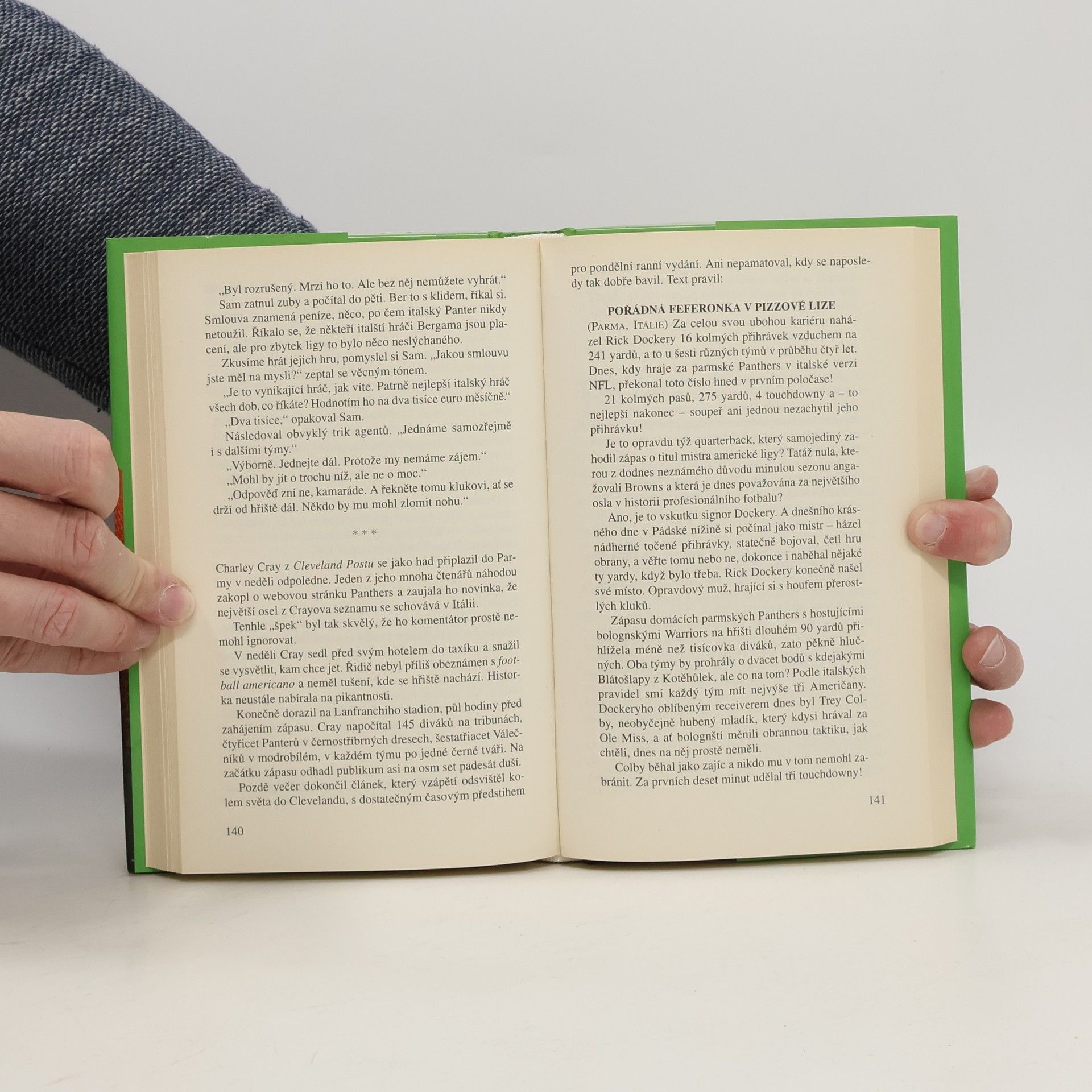 V další ze svých kratších próz situovaných mimo právnické prostředí nás John Grisham po Trenérovi opět zavádí do zákulisí svého oblíbeného sportu – amerického fotbalu. Rick Dockery, druhý záložní quarterback Cleveland Browns, zaviní prohru svého týmu v zápasu o titul mistra americké ligy a je okamžitě propuštěn. Jeho agent marně pátrá po týmu, který by byl po tomto fiasku ochoten Ricka angažovat. Nakonec uspěje, ale má to háček – zájemce se ozval z Evropy, konkrétně z italské Parmy. Rick, Američan zvyklý na velká auta, golfová hřiště a floridské podnebí, se tak ocitá poprvé na starém kontinentu, v zemi pyšnící se historií, krásnými ženami a vynikajícím jídlem, v týmu parmských Panterů, amatérů odhodlaných porazit odvěkého rivala – bergamské Lions – a vybojovat se svou novou hvězdou poprvé titul domácího šampiona. Svižný a humorným stylem podaný příběh nepochybně potěší jak Grishamovy fanoušky, tak příznivce amerického fotbalu a v neposlední řadě milovníky Itálie se vším, co k ní patří.