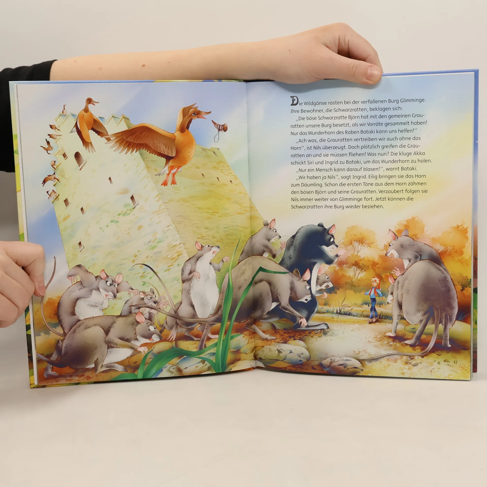 Als Däumling macht sich Nils Holgersson auf seine wundersame Reise mit Akka und den Wildgänsen nach Lappland. Mit seinen Freunden, dem Gänserich Martin und dem Hamster Krümel, erlebt er unterwegs viele spannende Abenteuer, bevor er nach Hause zurückkehren kann und der Zauber des Wichtelmännchens gebrochen wird.