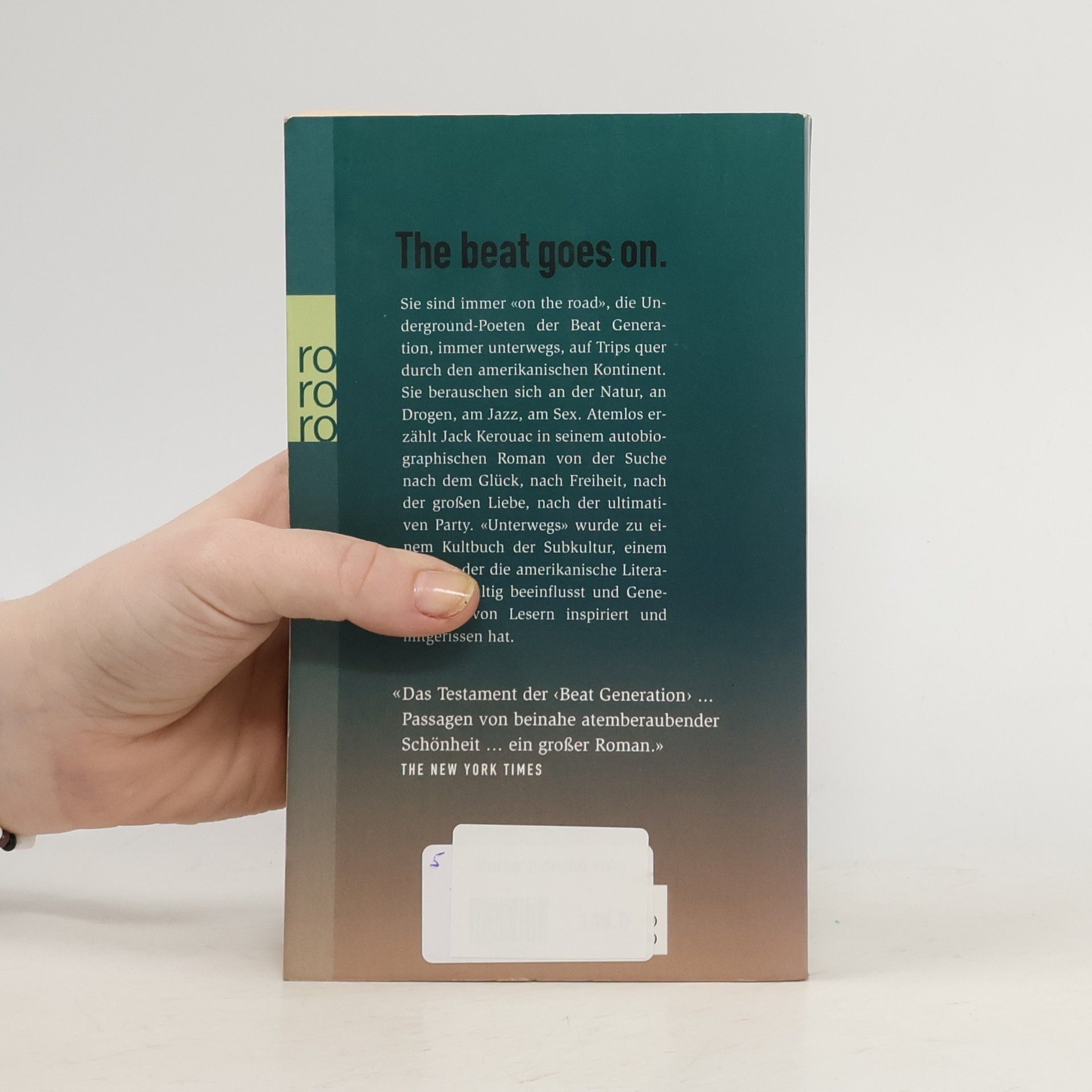 The Beat goes onSie sind immer «on the road», die Underground-Poeten der Beat Generation, immer unterwegs, auf Trips quer durch den amerikanischen Kontinent. Sie berauschen sich an der Natur, an Drogen, am Jazz, am Sex. Atemlos erzählt Jack Kerouac in seinem autobiografischen Roman von der Suche nach dem Glück, nach Freiheit, nach der großen Liebe, nach der ultimativen Party. «Unterwegs» wurde zu einem Kultbuch der Subkultur, einem Roman, der die amerikanische Literatur nachhaltig beeinflusst und Generationen von Lesern inspiriert und mitgerissen hat. «Das Testament der ‹Beat Generation› ... Passagen von beinahe atemberaubender Schönheit … ein großer Roman.» (The New York Times)