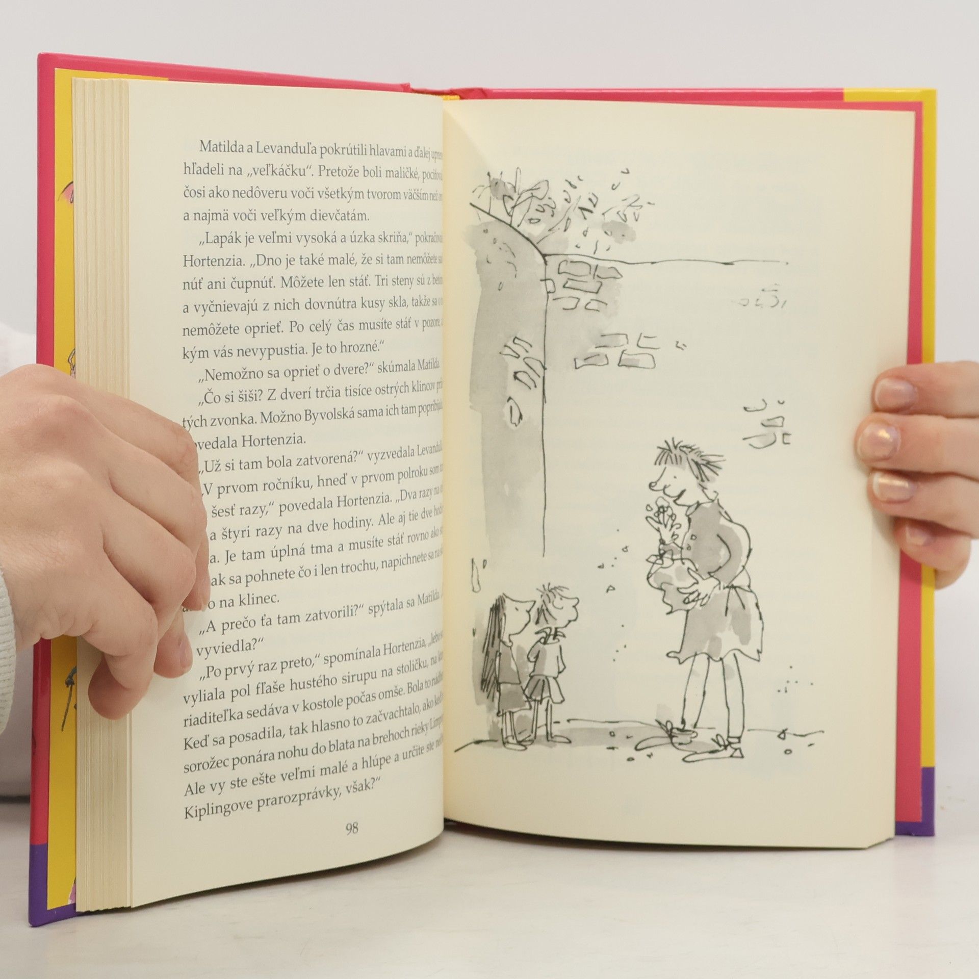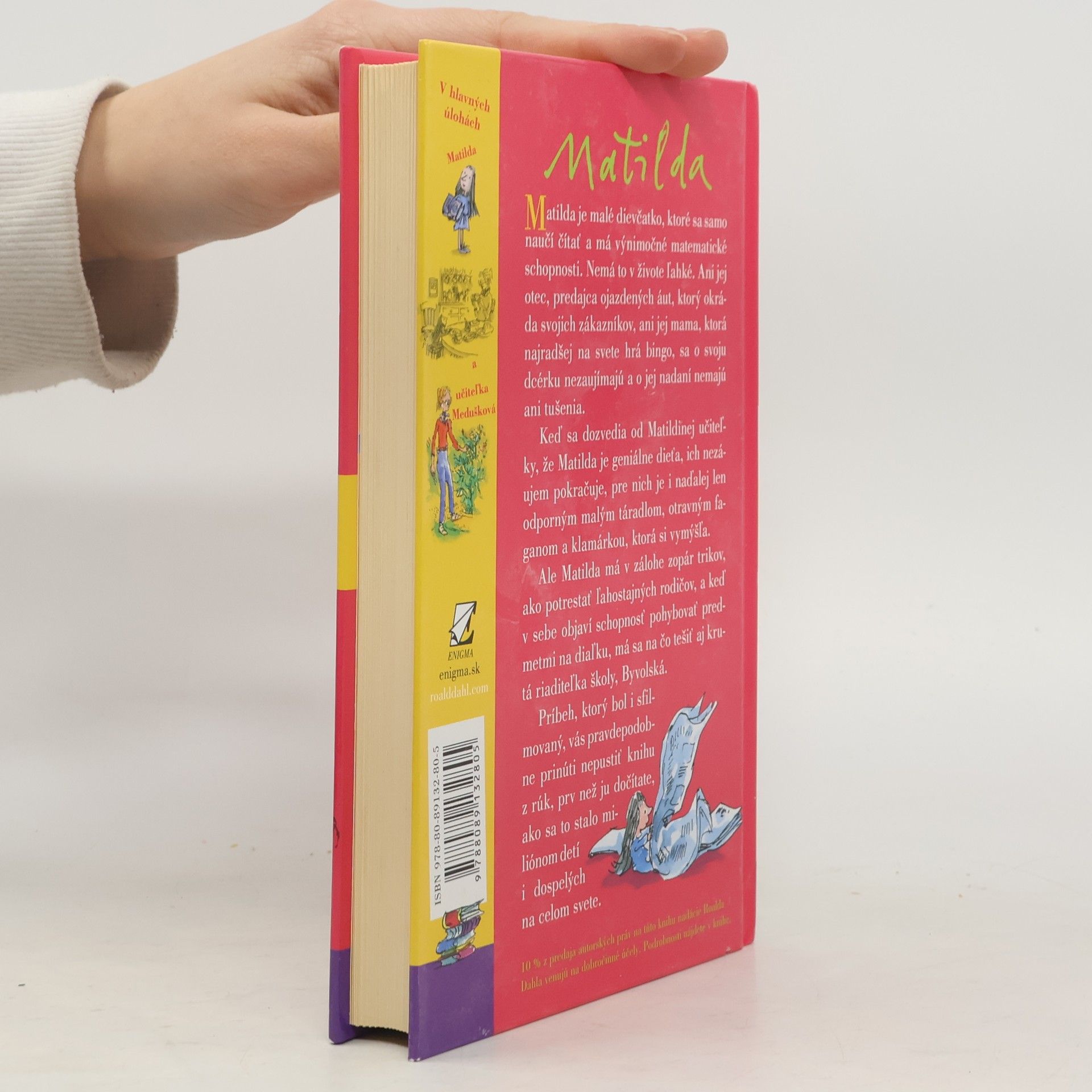 Príbeh malého, výnimočne nadaného dievčatka, ktoré v sebe objaví schopnosť pohybovať predmetmi na diaľku Vás pravdepodobne prinúti - ako sa to stalo miliónom detí, ale i dospelých na celom svete - nepustiť knihu z rúk prv než ju dočítate. Vďaka deju plnému napätia, originálnych nápadov a svojrázneho, niekedy až čierneho humoru sa kniha stala ihneď po prvom vydaní v roku 1988 bestsellerom. K úspechu knihy prispievajú aj nenapodobiteľné ilustrácie jedného z najrenomovanejších britských ilustrátorov, Quentina Blaka, dlhoročného spolupracovníka R. Dahla. S potešením predkladáme túto knihu slovenským deťom, ale aj všetkým dospelým, ktorí si chcú v zhone všedného dňa pripomenúť zázračno detskej duše.