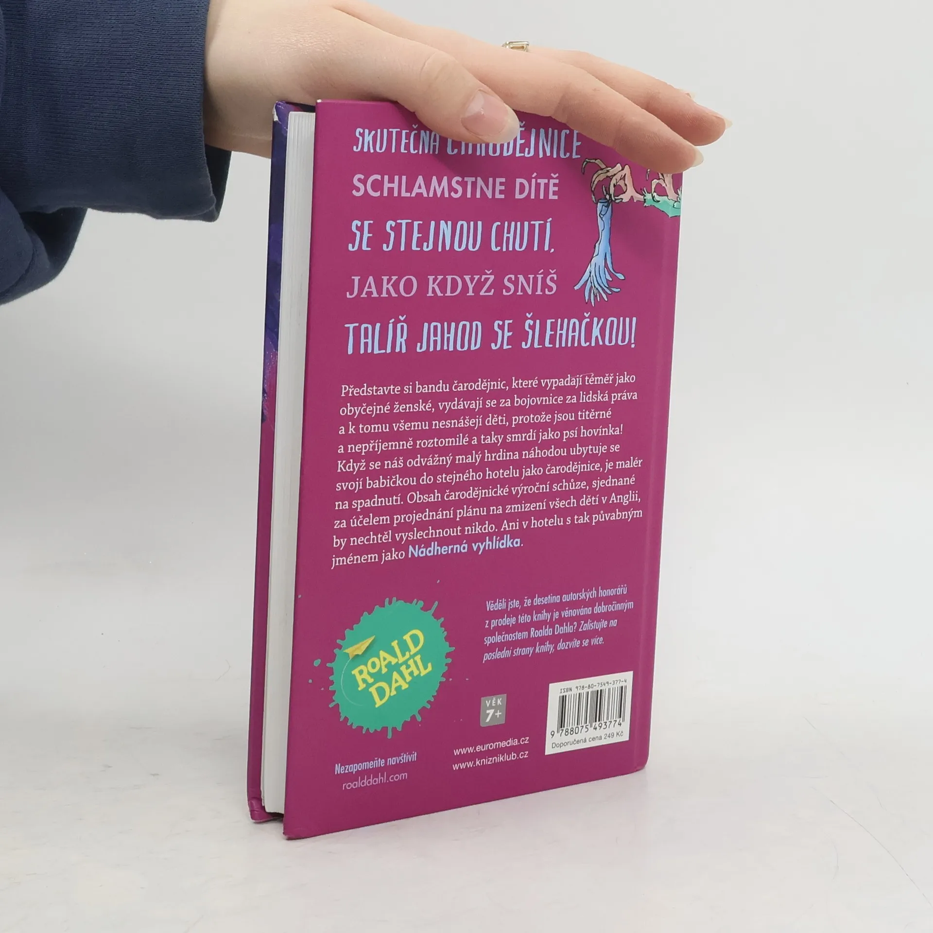 Skutečná čarodějnice schlamstne dítě se stejnou chutí, jako když sníš talíř jahod se šlehačkou! Představte si bandu čarodějnic, které vypadají téměř jako obyčejné ženské, vydávají se za bojovnice za lidská práva a k tomu ke všemu nesnášejí děti, protože jsou titěrné a nepříjemně roztomilé a taky smrdí jako psí hovínka! Když se náš odvážný malý hrdina náhodou ubytuje se svojí o nic víc sympatickou babičkou do stejného hotelu jako čarodějnice, je malér na spadnutí. Obsah čarodějnické výroční schůze, sjednané za účelem projednání plánu na zmizení všech dětí v Anglii, by nechtěl vyslechnout nikdo. Ani v hotelu s tak půvabným jménem jako Nádherná vyhlídka. Kniha je určena pro děti od 7 let.