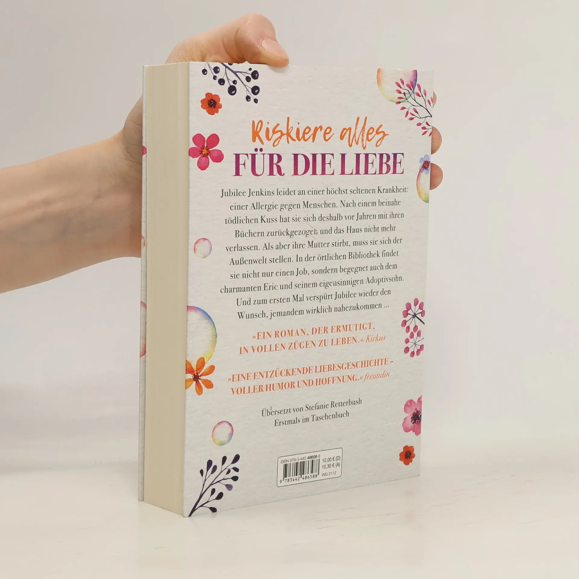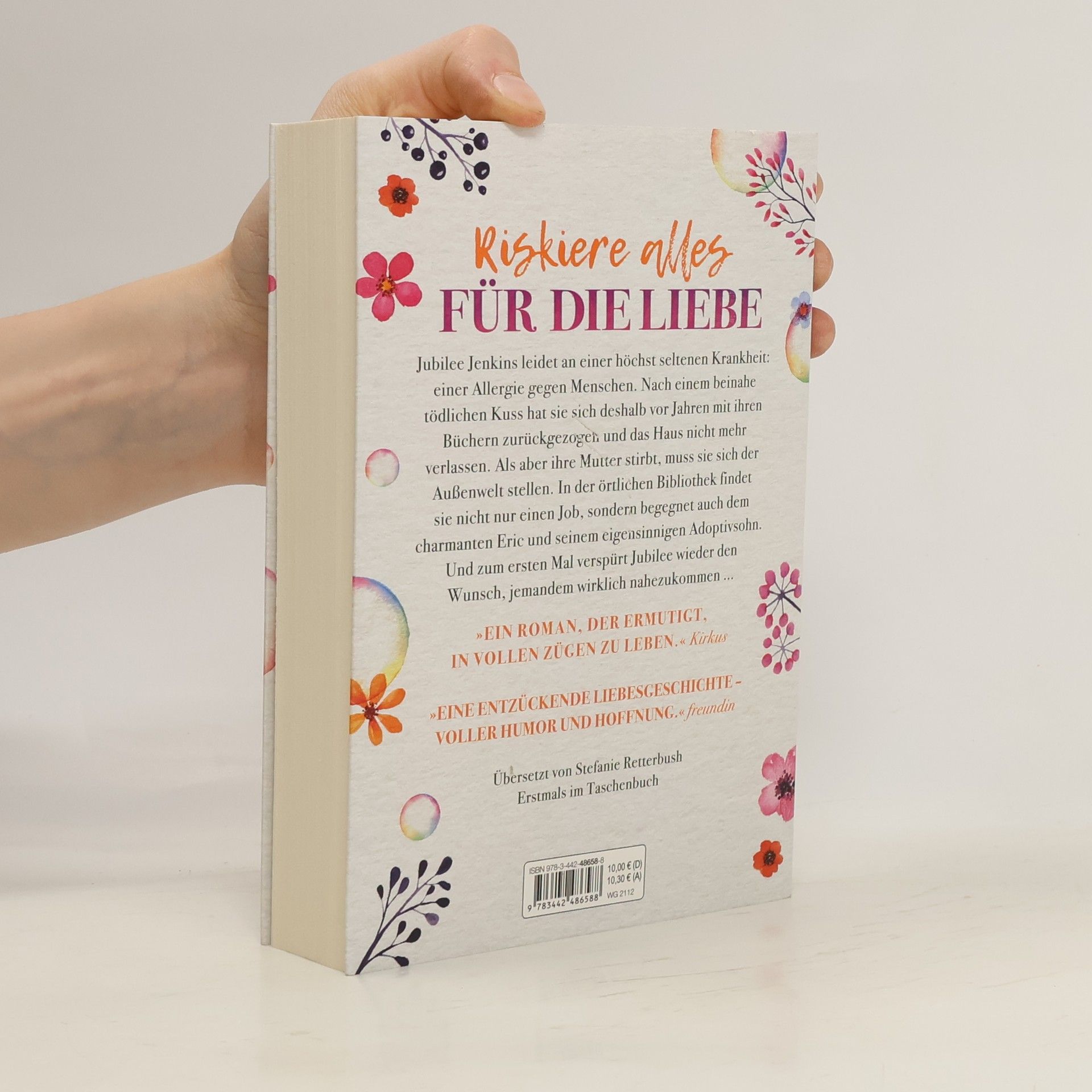 Jubilee Jenkins hat das Haus seit Jahren nicht verlassen, denn sie leidet an einer seltenen Krankheit – einer Allergie gegen Menschen. Als ein Junge sie an der Highschool küsste, erlitt sie einen anaphylaktischen Schock und wäre beinahe gestorben. Doch mit dem Tod ihrer Mutter muss Jubilee sich der gefürchteten Außenwelt stellen. Sie findet einen Job in der örtlichen Bibliothek und verliert langsam ihre Angst vor den Menschen. Und als sie dem charmanten Eric und seinem eigensinnigen Adoptivsohn begegnet, verspürt Jubilee zum ersten Mal den Wunsch, jemandem wirklich nahezukommen ... Bereits erschienen unter dem Titel „Die kuriosen Symptome der Liebe“.