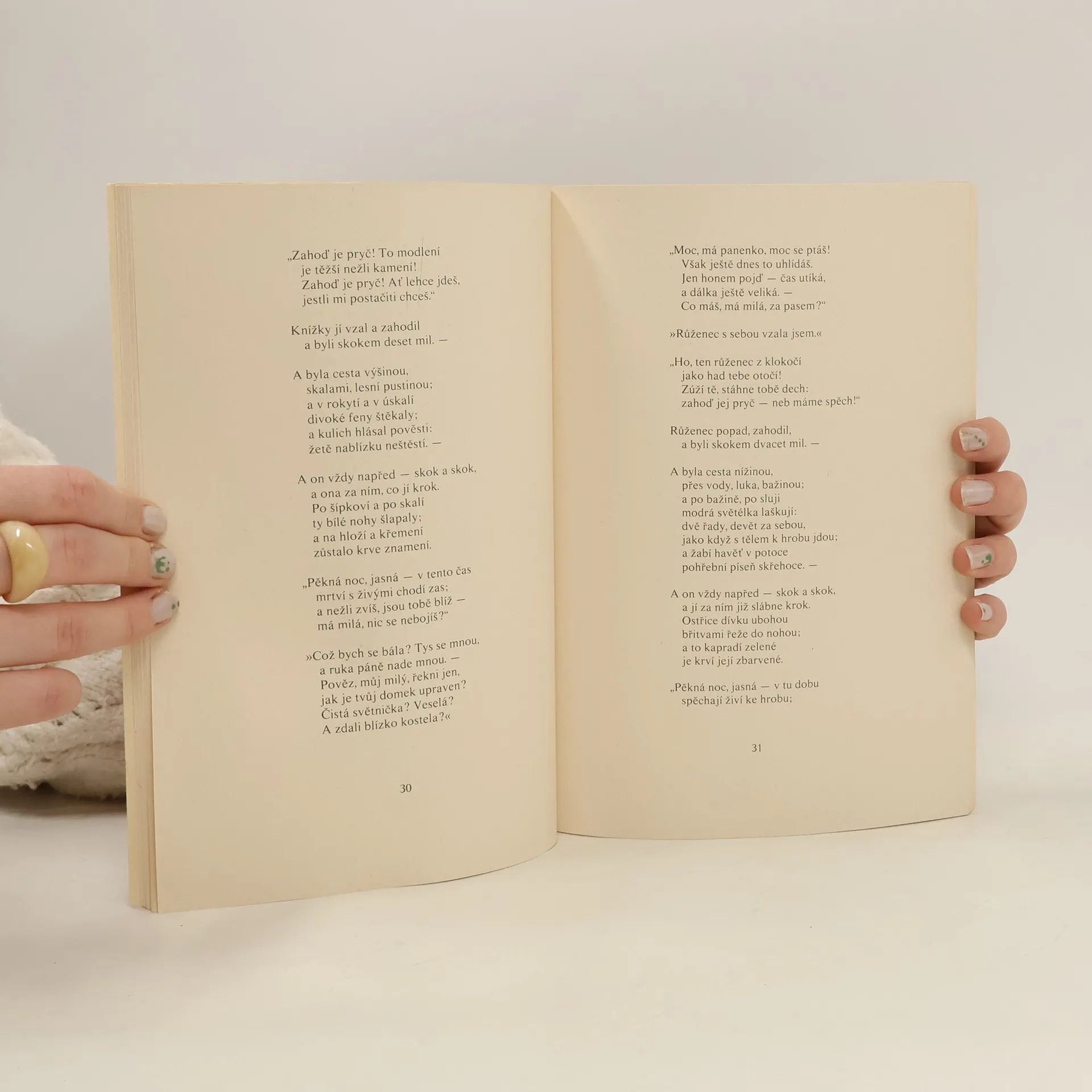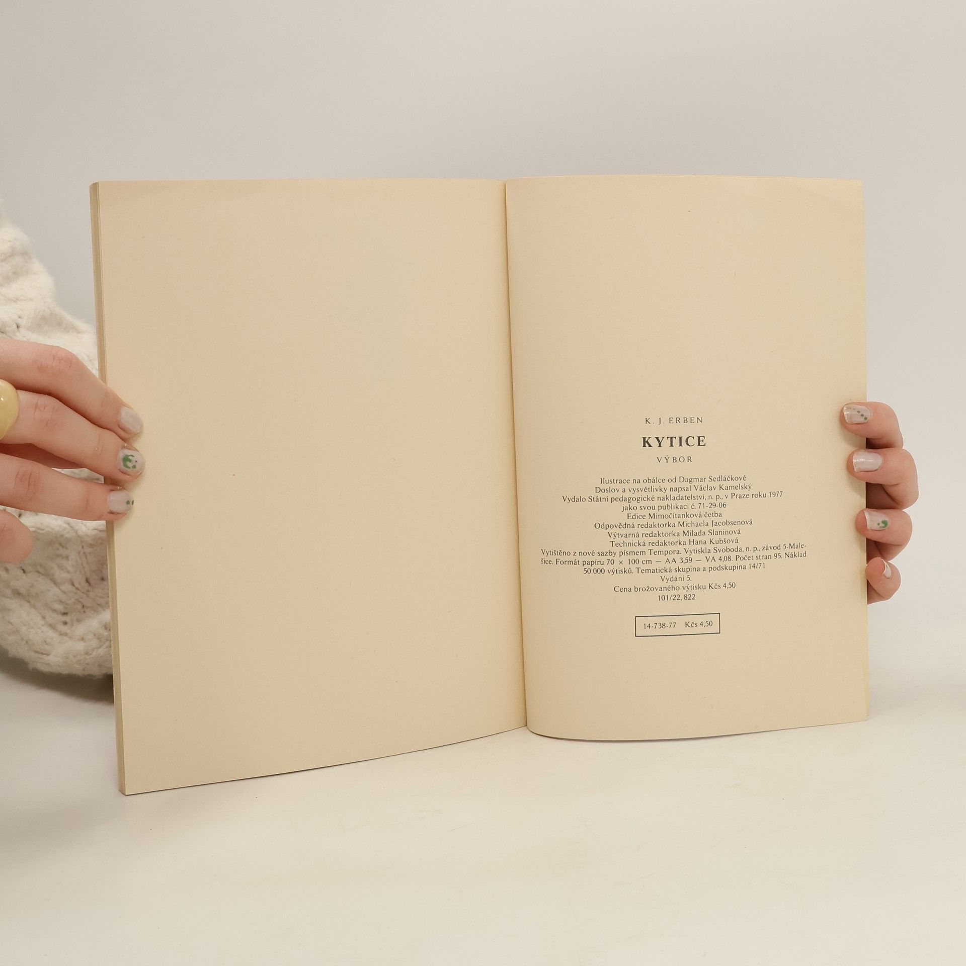 Výbor z kytice obsahující balady: Kytice, Poklad, Svatební košile, Polednice, Zlatý kolovrat, Štědrý den, Vodník a Vrba. 14-738-77