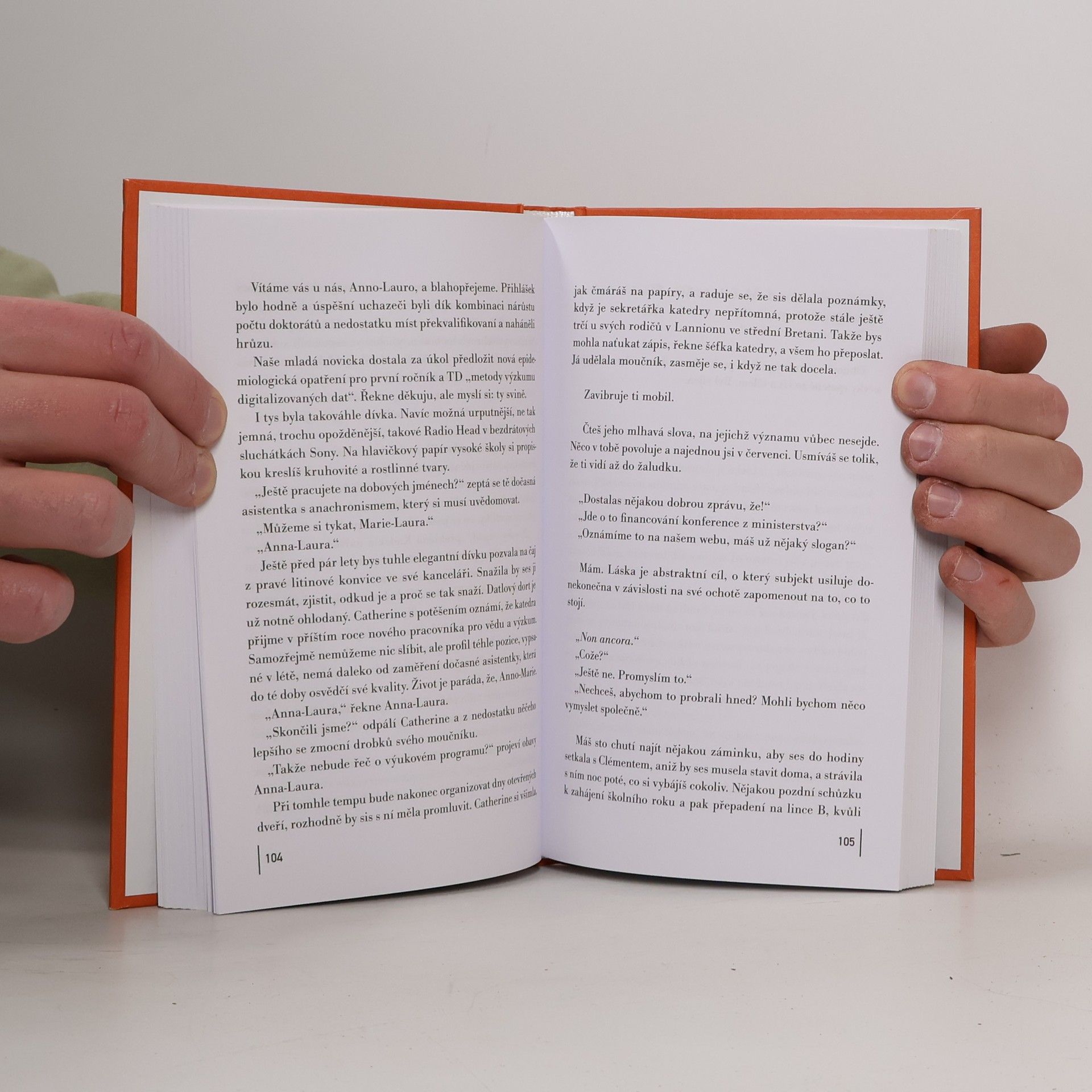 Román úspěšné francouzské autorky, nominantky několika literárních cen, je zdrcujícím pohledem na vztahy dvou zcela odlišných lidí, které jsou determinovány rodinnými a společenskými poměry. Padesátiletý Clément je úspěšný bankéř, žijící s pocitem nemilovaného dítěte. Jediný, koho má opravdu rád a pro koho je ochoten se obětovat, je jeho pes. Aby popudil svou matku, říká mu Taťka. Čtyřicetiletá Laura - spořádaná profesorka, manželka a matka, která dělá věci tak, jak se má. Ve skutečnosti ale touží po velkých citech. Oba žijí v jakési ulitě kompromisu a pohodlnosti. V kulisách současného rozjitřeného a nepředvídatelného světa rozehrají sebevražednou hru neukojené vášně, nenaplněné touhy, frustrace a mezigeneračního nepochopení.