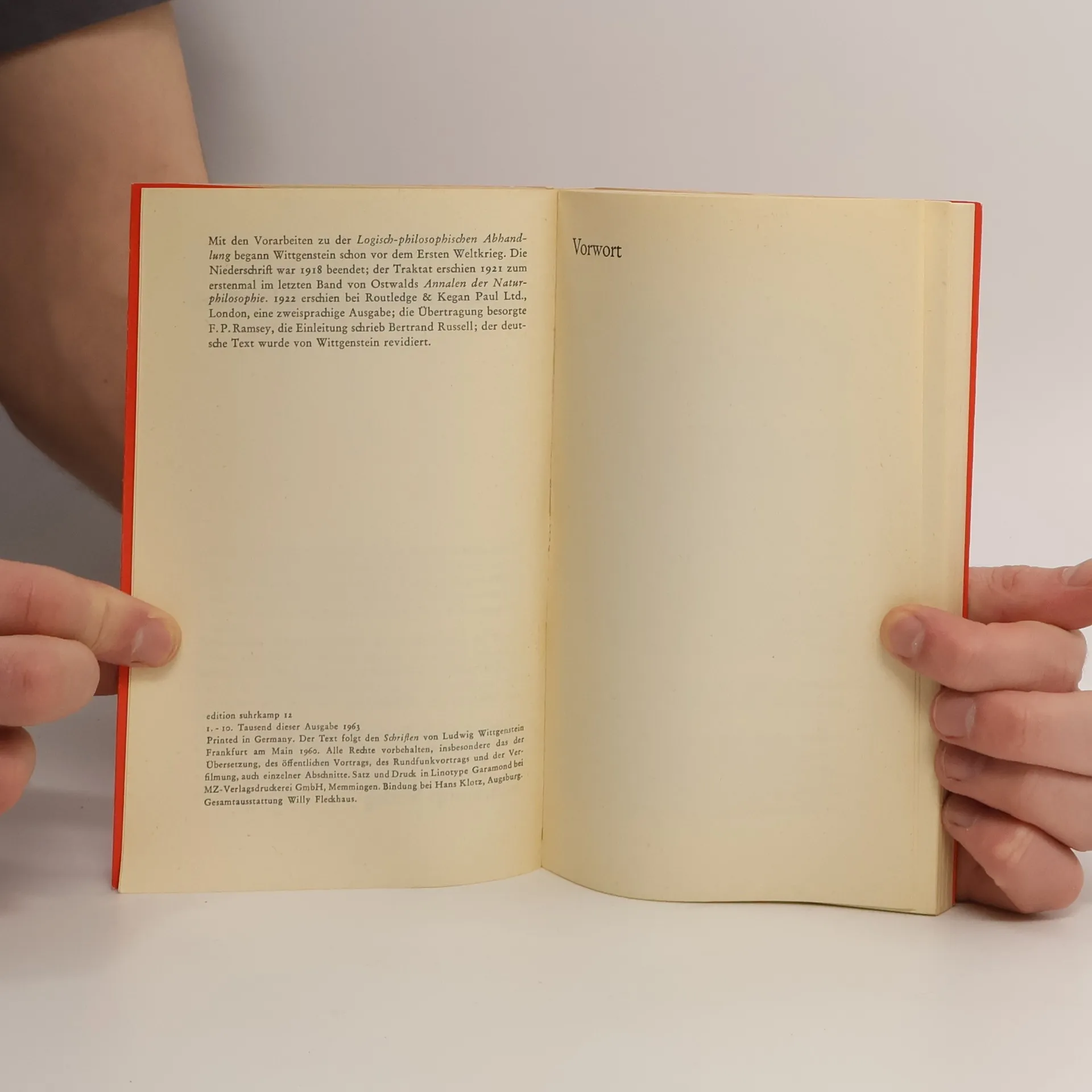 Ein philosophisches Traktat von größtmöglicher Allgemeinheit und Endgültigkeit: »Die Welt ist alles, was der Fall ist.« »Man könnte den ganzen Sinn des Buches etwa in die Worte fassen: Was sich überhaupt sagen läßt, läßt sich klar sagen; und wovon man nicht reden kann, darüber muß man schweigen.« Diese Ausgabe des Tractatus logico-philosophicus ist Teil der Edition SUHRKAMP LETTERPRESS, die in Zusammenarbeit mit dem Typographen Erik Spiekermann und der SÜPERGRÜP, einer Gruppe von sieben ausgezeichneten deutschen Designern – neben Erik Spiekermann Mirko Borsche, Johannes Erler, Lars Harmsen, Sarah Illenberger, Eike König und Mario Lombardo –, entstanden ist: sieben herausragende Werke des 20. Jahrhunderts, alle erschienen im Suhrkamp Verlag, neu gestaltet, gesetzt und von digital belichteten Platten im Buchdruckverfahren auf einem Original Heidelberger Zylinder gedruckt. Die exklusive nummerierte Auflage ist limitiert auf 1.000 Exemplare und mit Lesebändchen und einer Broschüre zum Projekt ausgestattet. Lars Harmsen, SÜPERGRÜP, entwarf den Umschlag. Erik Spiekermann hat Satz und Layout vorgenommen.