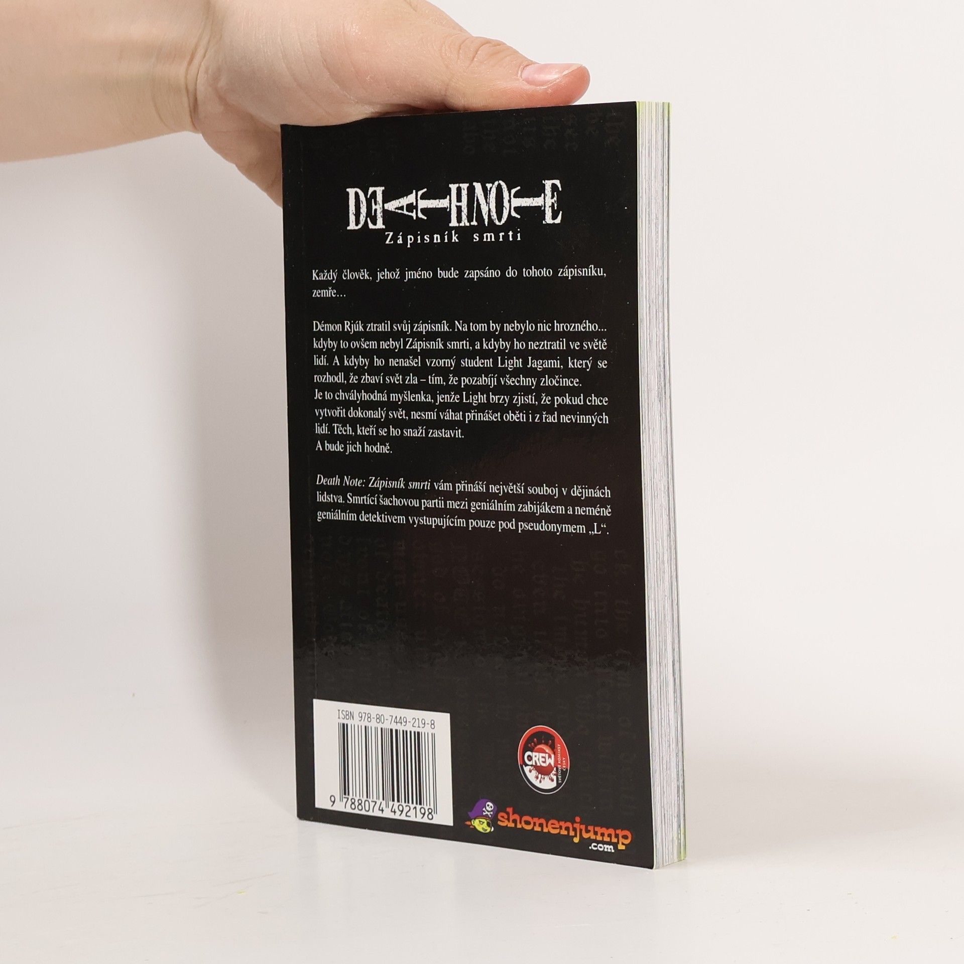 Démon Rjúk ztratil svůj zápisník. Na tom by nebylo nic hrozného... kdyby to ovšem nebyl Zápisník smrti, a kdyby ho neztratil ve světě lidí. A kdyby ho nenašel vzorný studen Light Jagami, který se rozhodl, že zbaví svět zla - tím, že pozabíjí všechny zločince. Je to chvályhodná myšlenka, jenže Light brzy jistí, že pokud chce vytvořit dokonalý svět, nesmí váhat přinášet oběti i z řad nevinných lidí. Těch, kteří se ho snaží zastavit. A bude jich hodně. Death Note: Zápisník smrti vám přináší největší souboj v dějinách lidstva. Smrtící šachovou partii mezi geniálním zabijákem a neméně geniálním detektivem vystupujícím pouze pod pseudonymem "L".