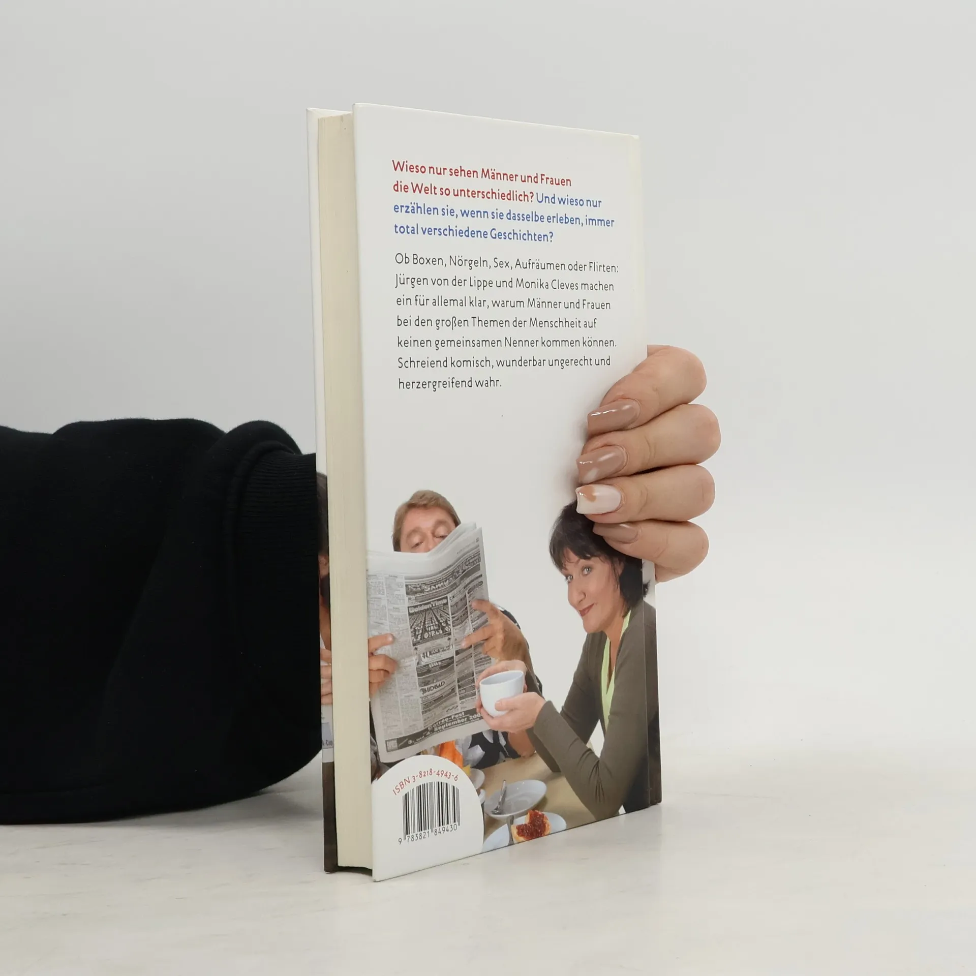 Jürgen von der Lippe in Hochform! Wieso nur erzählen Männer und Frauen, die dasselbe erleben, immer total verschiedene Geschichten? Und wieso nur sehen sie die Welt total unterschiedlich? Haben sie womöglich verschiedene Augen? Oder werden Informationen anders verarbeitet? Jürgen von der Lippe: „Es ist ein Unterschied, ob man von aller Welt geliebt aufwächst, weil gutaussehend, attraktiv, umschwärmt, oder ob man sich jeden sexuellen Kontakt hart erarbeiten musste, wie ich. Ebenso prägt es die Weltsicht, ob man kränklich ist und die Mehrzahl der handelsüblichen ärztlichen Instrumente schon im eigenen Leib verspürte, oder ob man selbst einen Schädelbruch ohne Hinzuziehung eines Arztes mit Bachblüten attackieren würde, wie Frau Cleves. Ach, was rede ich viel, lesen Sie und erkennen Sie sich selbst wieder, in wem auch immer! Viel Spaß.“ Monika Cleves: „Es ist ein Riesenvorteil, zu zweit ein Buch zu schreiben. Man hat nur die halbe Arbeit und wenn es ein Flop wird, hat der andere Schuld.“ Die großen Themen der Menschheit - Aufräumen, Boxen, Sex und noch ein paar mehr - aus der Sicht eines Mannes und einer Frau. Ein herrlicher Spaß voller hintersinniger Komik.