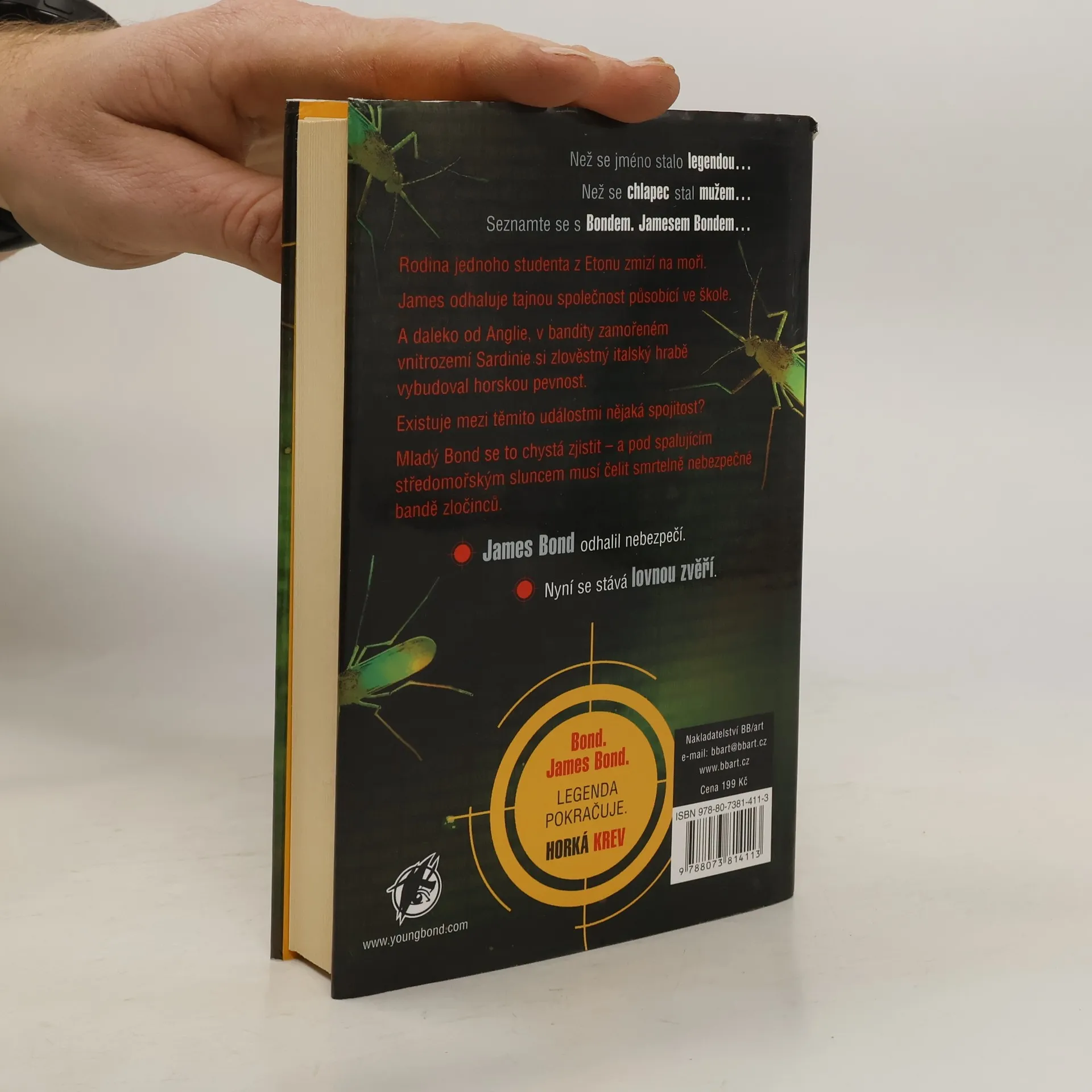 Než se jméno stalo legendou. Než se chlapec stal mužem. Seznamte se s Bondem. Jamesem Bondem. James Bond odhalil nebezpečí. Nyní se stává lovnou zvěří. Rodina jednoho studenta z Etonu zmizí na moři. James odhaluje tajnou společnost působící ve skrytosti ve škole. A daleko od Anglie, v bandity zamořeném vnitrozemí Sardinie si zlověstný italský hrabě vybudoval horskou pevnost. Existuje mezi těmito událostmi nějaká spojitost? Mladý Bond se to chystá zjistit – a pod spalujícím středomořským sluncem musí čelit smrtelně nebezpečné bandě zločinců. James Bond je nejproslulejší ze všech tajných agentů, co kdy existovali. Jeho život ve skrytém světě britských tajných služeb brilantně zachytilo čtrnáct klasických knih Iana Fleminga od Casina Royale po Chobotničku. Ian Fleming začal psát o Jamesi Bondovi před více než padesáti lety. Jako kronikář Bondovy kariéry u tajné služby byl Fleming mimořádně povolanou osobou – sám se účastnil vysoké zpravodajské hry za druhé světové války.