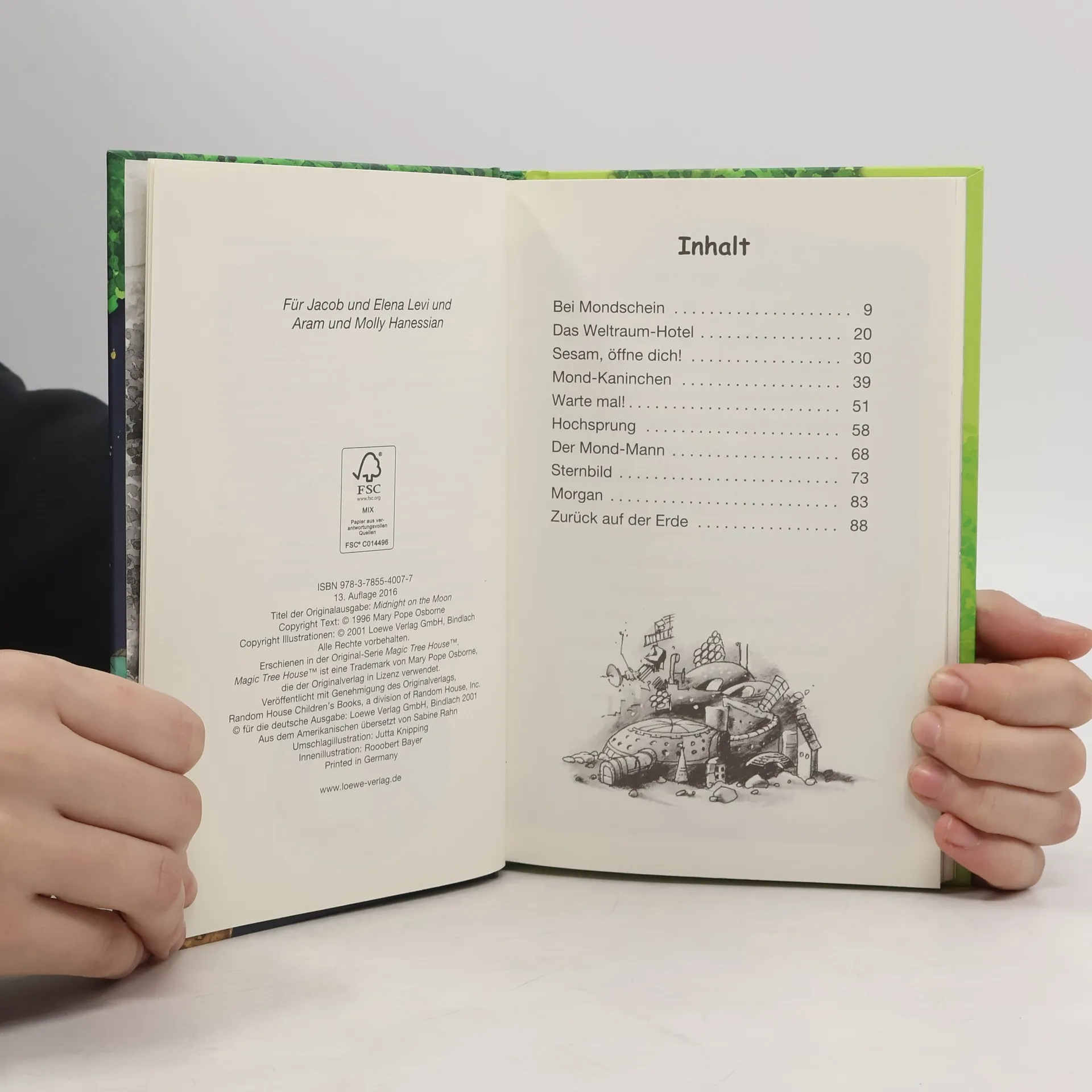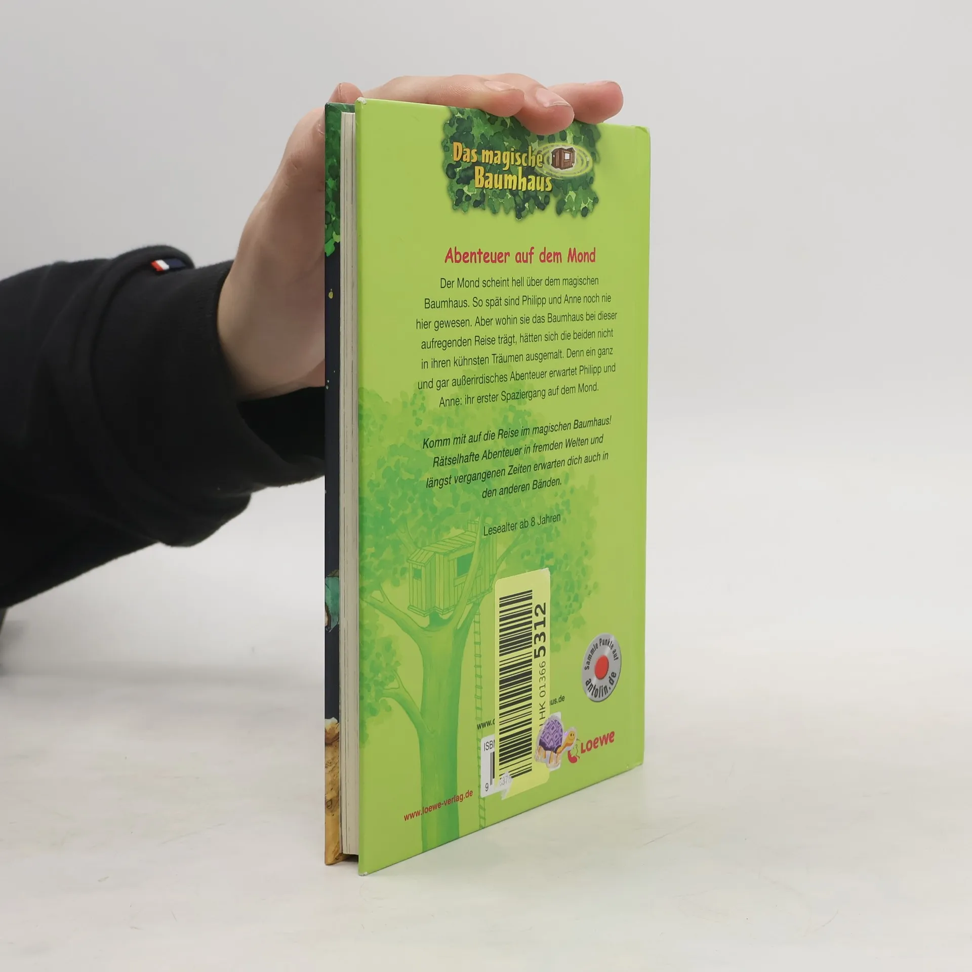 Das Buch ist bei deiner Buchhandlung vor Ort und bei vielen Online-Buchshops erhältlich! + Bücher, die Kinder gerne lesen wollen + Beliebte Themen: Abenteuer, Tiere, fremde Länder und Weltraum + Hochwertiges Hardcover + Mit vielen Illustrationen + Bereits über 10 Millionen verkaufte Bücher der Baumhaus-Reihe + Ausgewogenes Text-Bild-Verhältnis + Große Schrift + Kurze Kapitel + Der Mond scheint hell über dem magischen Baumhaus. So spät sind Philipp und Anne noch nie hier gewesen. Aber wohin sie das Baumhaus bei dieser aufregenden Reise trägt, hätten sich die beiden nicht in ihren kühnsten Träumen ausgemalt. Denn ein ganz und gar außerirdisches Abenteuer erwartet Philip und Anne: ihr erster Spaziergang auf dem Mond. Komm mit auf die Reise im magischen Baumhaus! Rätselhafte Abenteuer in fremden Welten und längst vergangenen Zeiten erwarten dich auch in den anderen Bänden. Die beliebte Kinderbuch-Reihe von Bestsellerautorin Mary Pope Osborne! Die Geschwister Anne und Philipp reisen mit dem magischen Baumhaus durch die Zeit. Sie erleben spannende Abenteuer, entdecken ferne Länder und lernen viele berühmte Persönlichkeiten kennen. Mehr Infos zur Reihe und tolle Extras unter: www. MagischesBaumhaus. de