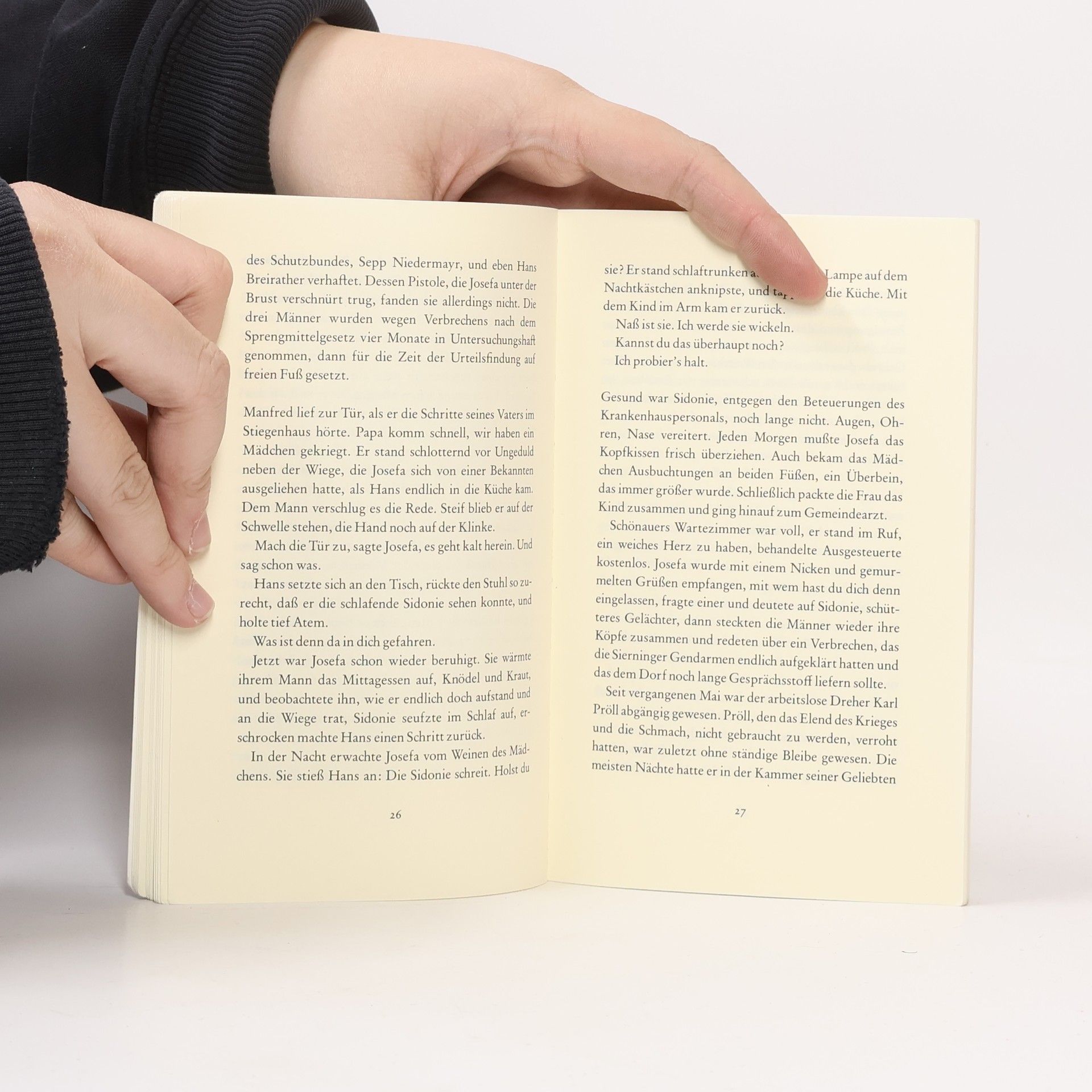 Am achtzehnten August 1933 entdeckte der Pförtner des Krankenhauses von Steyr ein schlafendes Kind. Neben dem Säugling, der in Lumpen gewickelt war, lag ein Stück Papier, auf dem mit ungelenker Schrift geschrieben stand: »Ich heiße Sidonie Adlersburg und bin geboren auf der Straße nach Altheim. Bitte um Eltern.«