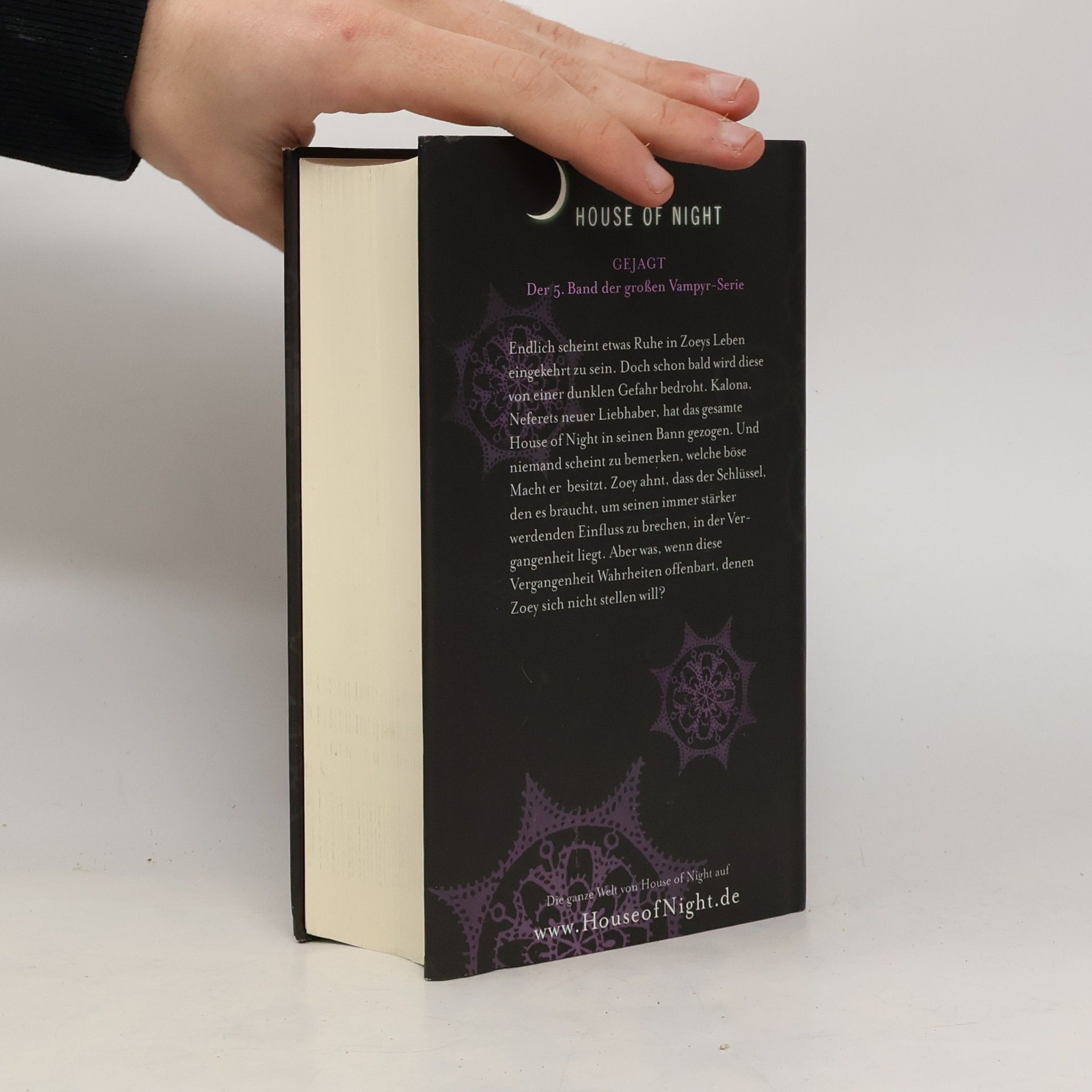 House of Night GEJAGT Der 5. Band der großen Vampyr-Serie. Zoey ist wieder mit ihren Freunden vereint und Stevie Rae und die roten Jungvampyre sind nicht länger Neferets Geheimnis. Aber eine dunkle Gefahr bedroht die neue Ruhe. Kalona, Neferets neuer Liebhaber, sieht umwerfend aus und hat das gesamte House of Night in seinen Bann gezogen. Und niemand scheint zu bemerken, welche Bedrohung von ihm ausgeht. Der Schlüssel, den es braucht, um seinen immer stärker werdenden Einfluss zu brechen, liegt in der Vergangenheit. Aber was, wenn diese Vergangenheit Geheimnisse offenbart, die Zoey nicht wissen will und Wahrheiten, denen sie sich nicht zu stellen traut?