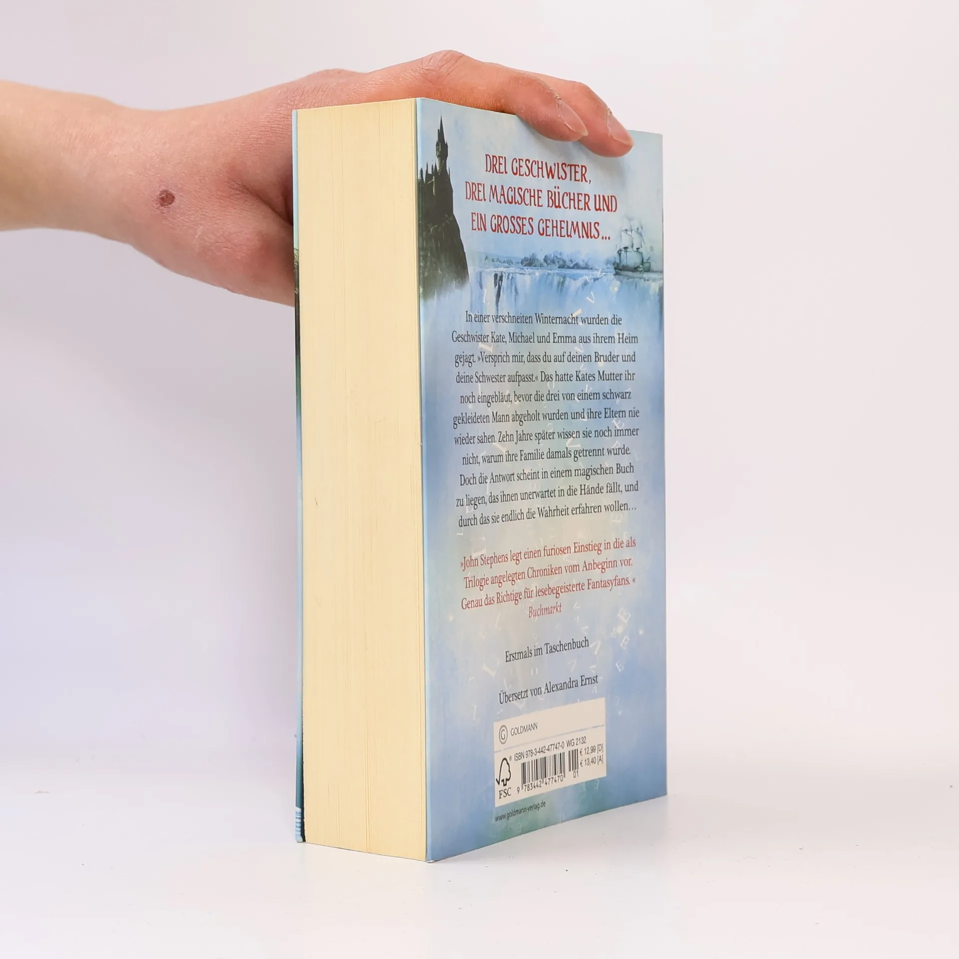 Drei Geschwister, drei magische Bücher, ein großes Geheimnis In einer verschneiten Winternacht werden die Geschwister Kate, Michael und Emma aus ihrem Heim gejagt. „Versprich mir, dass du auf deinen Bruder und deine Schwester aufpasst.“ Das hatte Kates Mutter ihr noch eingebläut, bevor die drei von einem schwarz gekleideten Mann abgeholt wurden und ihre Eltern nie wieder sahen. Zehn Jahre später wissen sie noch immer nicht, warum ihre Familie damals getrennt wurde. Doch die Antwort scheint in einem magischen Buch zu liegen, das ihnen unerwartet in die Hände fällt, und durch das sie endlich die Wahrheit erfahren wollen.