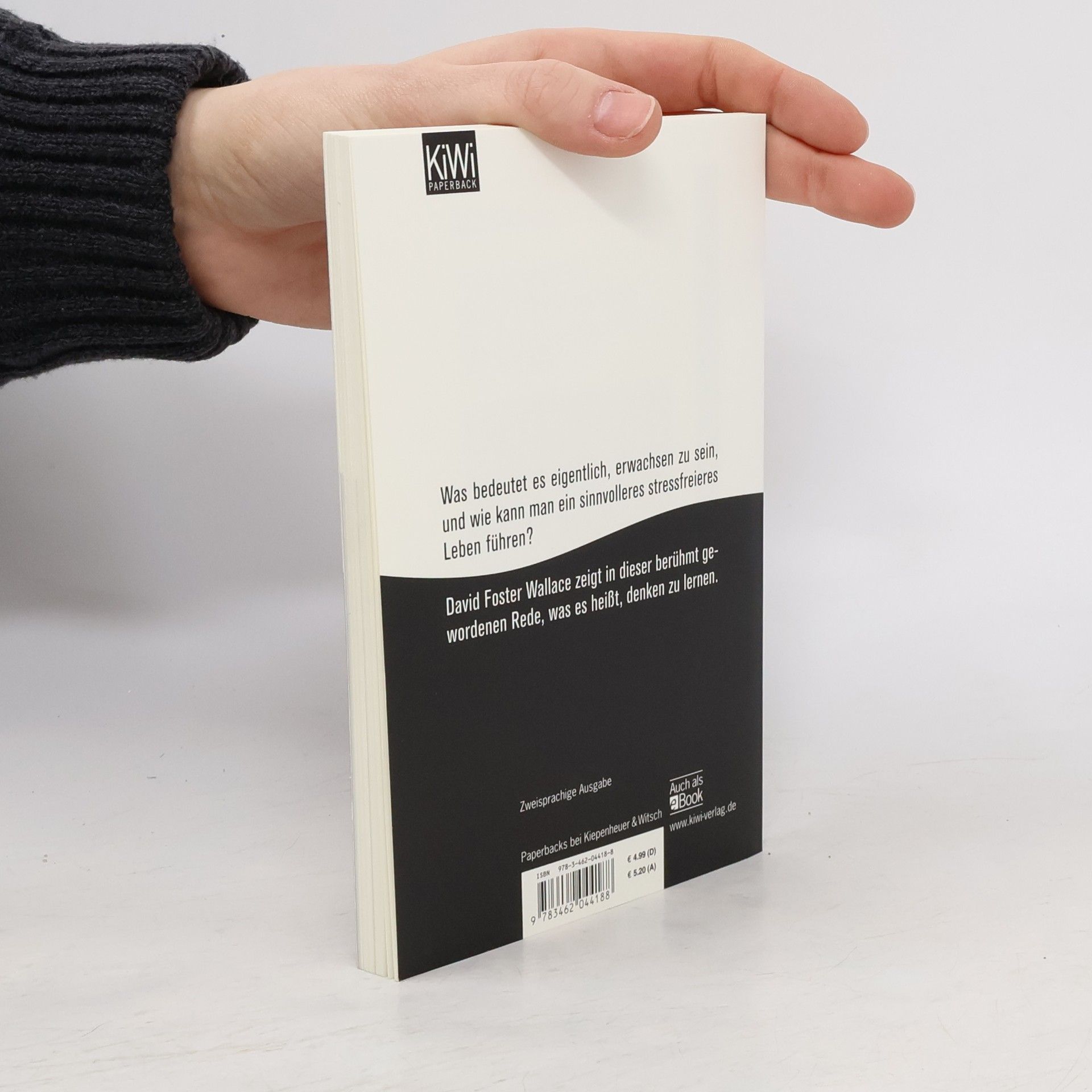 Eine Anstiftung zum Denken David Foster Wallace wurde 2005 darum gebeten, vor Absolventen des Kenyon College eine Abschlussrede zu halten. Diese berühmt gewordene Rede gilt in den USA mittlerweile als Klassiker und Pflichtlektüre für alle Abschlussklassen – eine kleine Anleitung für das Leben, die man jedem Hochschulabsolventen und jedem Jugendlichen mit auf den Weg geben möchte. Was bedeutet es eigentlich, erwachsen zu sein, und wie können Menschen ihre Standardeinstellung, dass sich alles im Leben erst mal um sie selbst dreht, durchbrechen, um ein sinnvolleres und stressfreieres Dasein zu führen? David Foster Wallace zeigt in dieser kurzen Rede mit einfachen Worten, was es heißt, Denken zu lernen und erwachsen zu sein. Eine frappierende Weisheit, eine entwaffnende Moral und ein Aufruf zu mehr Empathie – es wird keinen Leser geben, der sich dem Zauber von Wallace’ Darlegung entziehen kann.