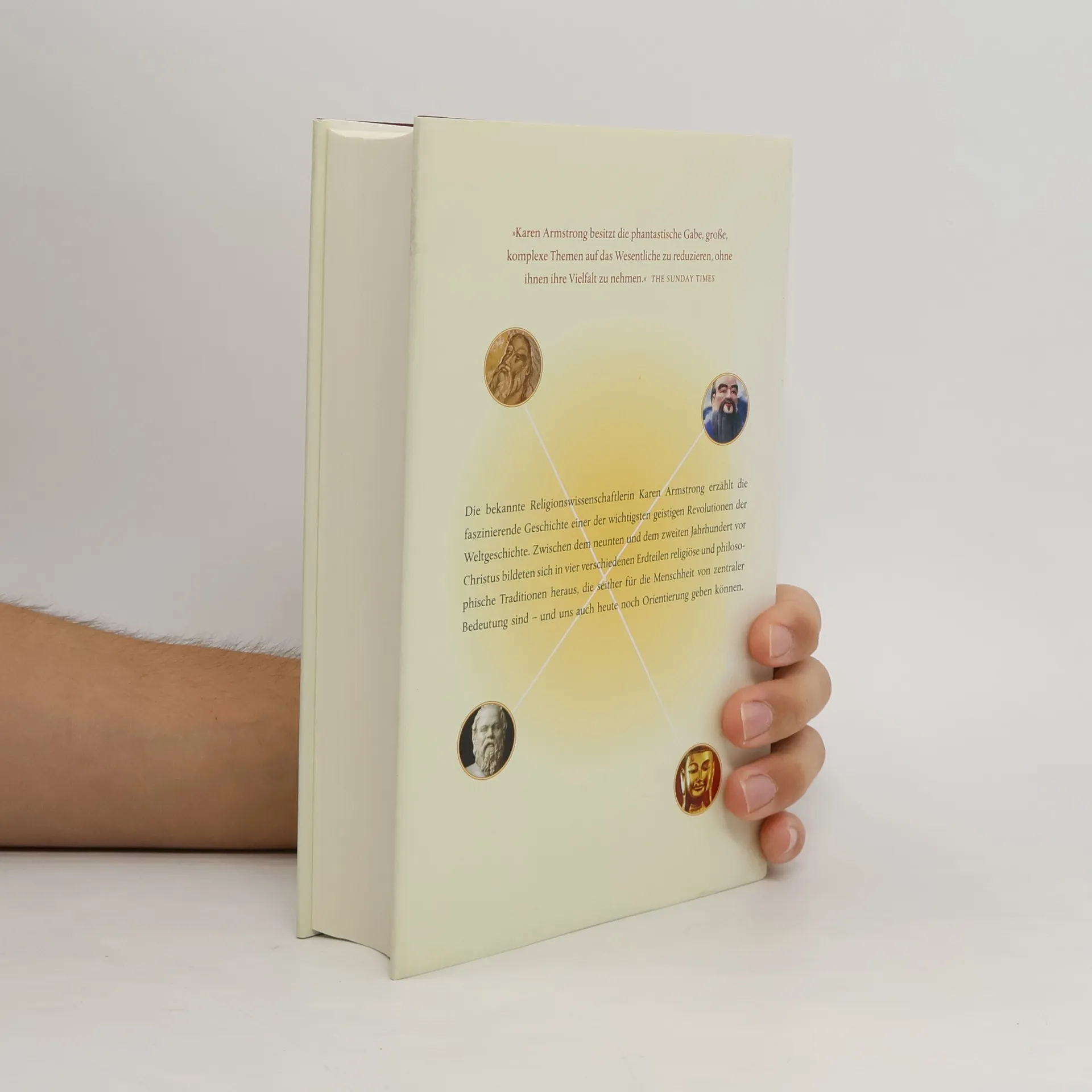 Karen Armstrong erzählt die faszinierende Geschichte einer der bedeutendsten geistigen Revolutionen der Weltgeschichte. Zwischen dem 9. und 2. Jahrhundert vor Christus entstanden in vier Erdteilen religiöse und philosophische Traditionen, die bis heute für die Menschheit zentral sind. Armstrong begibt sich auf eine Entdeckungsreise zu den Lehren der Achsenzeit, einer Epoche, in der ein neues menschliches Bewusstsein entstand. Diese Zeit brachte die großen Glaubensrichtungen hervor: Hinduismus und Buddhismus aus Indien, Taoismus und Konfuzianismus aus China, Rationalismus aus Griechenland und Monotheismus aus der Region des heutigen Israel. Sie zeigt, dass jede dieser Weltanschauungen auf ähnliche Probleme mit vergleichbaren Antworten reagierte. Die Urväter dieser geistig-religiösen Revolution – Buddha, Sokrates, Konfuzius und Hesekiel – wollten keine ultimative Wahrheit aufzwingen, sondern betonten, wie man lebte. Mitgefühl und Toleranz wurden zu zentralen Tugenden. Armstrongs Abhandlung ist nicht nur eine umfassende Ideengeschichte der Weltreligionen, sondern auch ein eindringliches Plädoyer zur Besinnung auf die ursprünglichen Quellen unseres Glaubens, unserer Philosophie und Moral. In Zeiten von Gewalt und religiöser Intoleranz ist das Buch besonders lehrreich und legt den gemeinsamen Kern der großen Glaubensrichtungen offen.