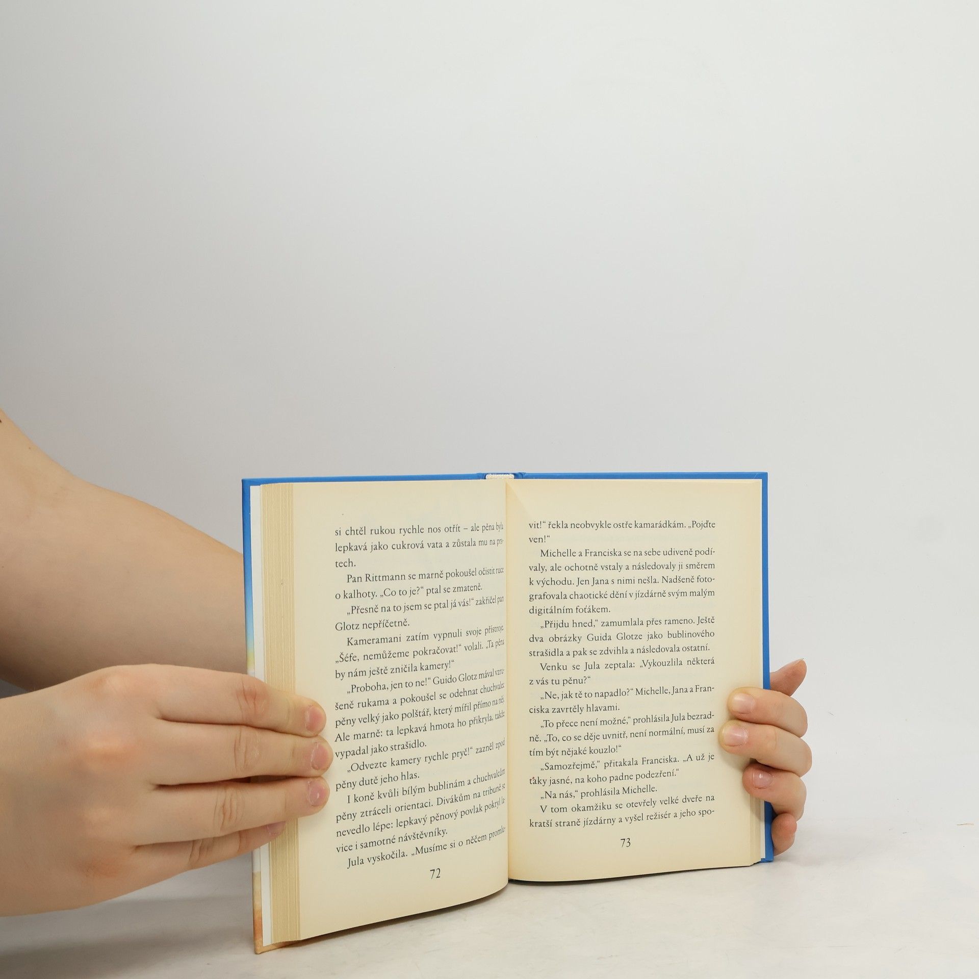 Jestlipak víte, co je na Koňském hrádku nového? Přijel režisér a hledá mladé jezdkyně do televizního seriálu. A u toho Jana, Jula, Michelle a Franciska samozřejmě nesmějí chybět! Ale jejich soupeřky se jim to budou snažit u filmařů všemožně pokazit. Jana a její kamarádky jim to budou chtít oplatit za pomocí kouzel – od čeho by jinak byly čarodějky, ne? Jenže pak se jejich soupeřkám podaří získat polovinu čarodějné knihy. A to se teprve začnou dít věci… -- zdroj: www.legie.info --