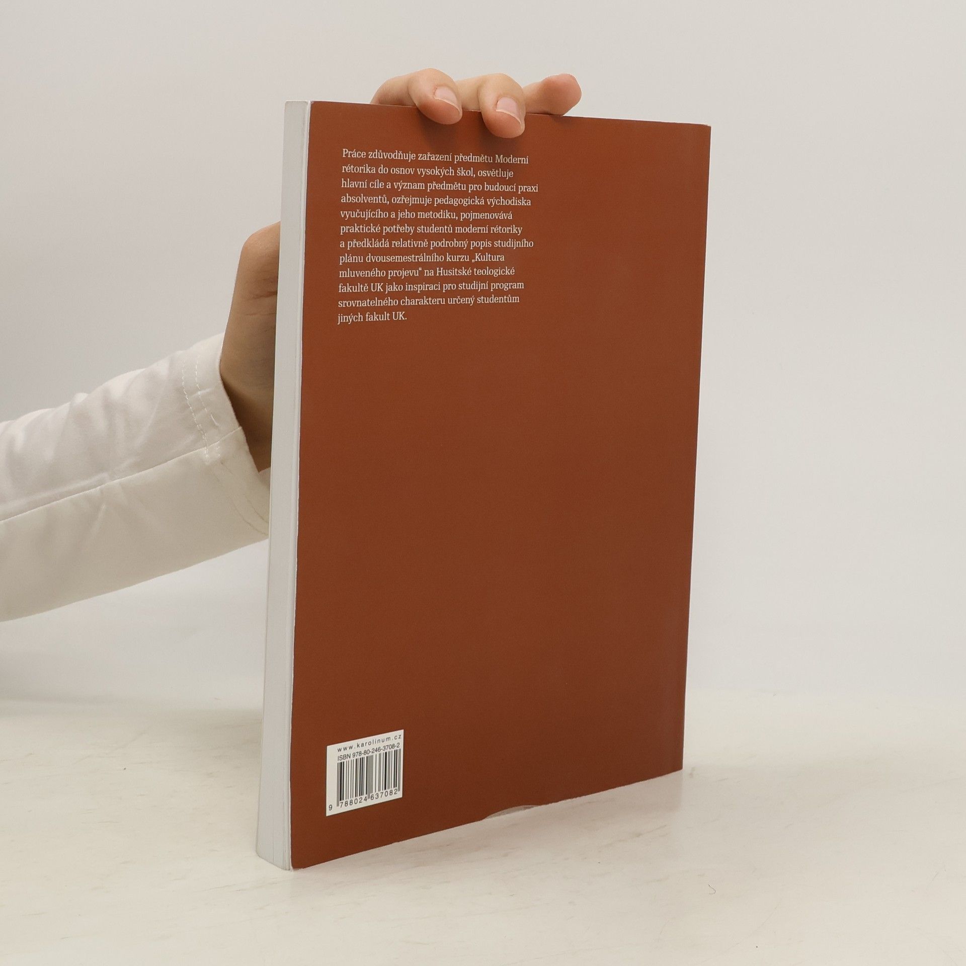 Práce zdůvodňuje zařazení předmětu Moderní rétorika do osnov vysokých škol, osvětluje hlavní cíle a význam předmětu pro budoucí praxi absolventů, ozřejmuje pedagogická východiska vyučujícího a jeho metodiku, pojmenovává praktické potřeby studentů moderní rétoriky a předkládá relativně podrobný popis studijního plánu dvousemestrálního kurzu „Kultura mluveného projevu“ na Husitské teologické fakultě UK jako inspiraci pro studijní program srovnatelného charakteru určený studentům jiných fakult UK.