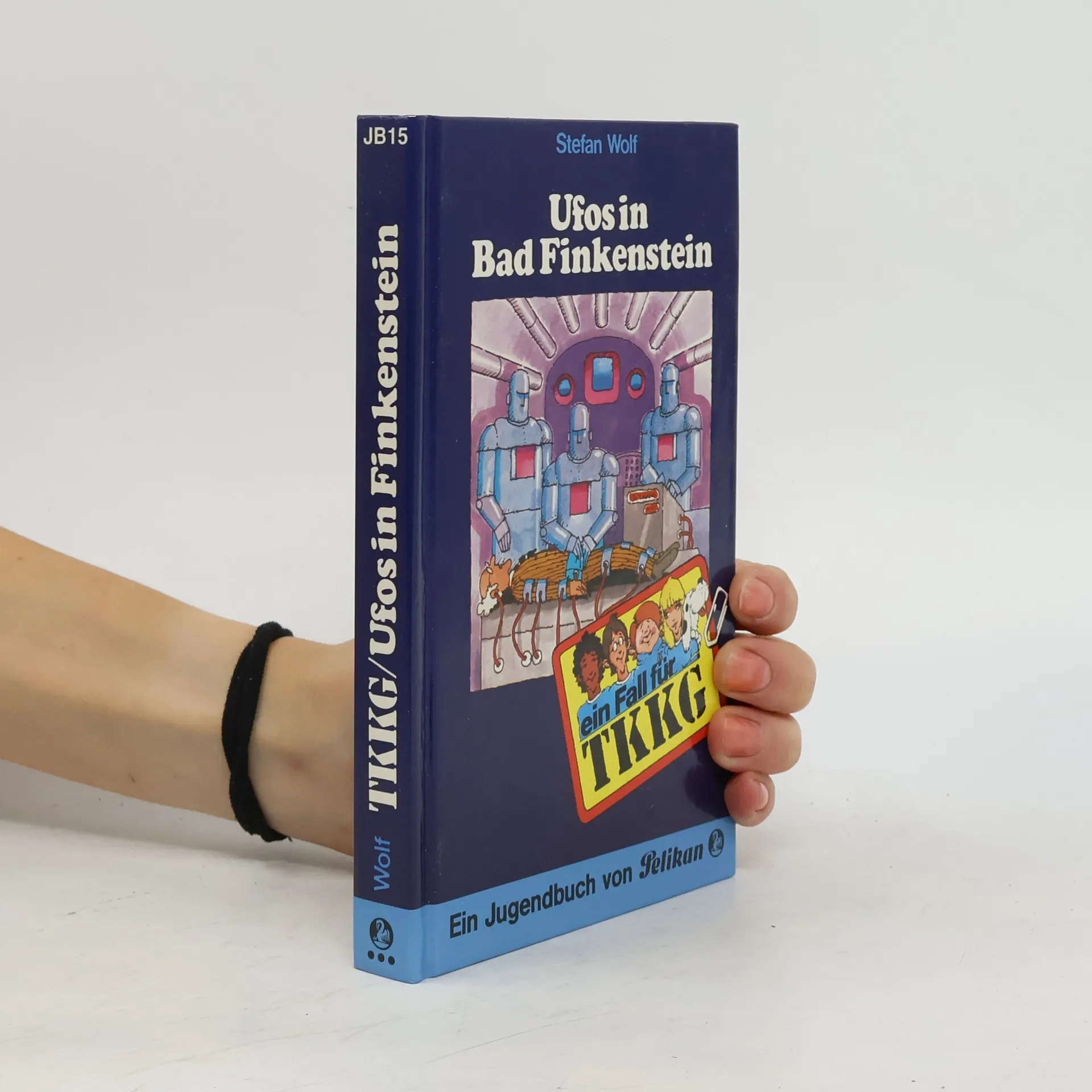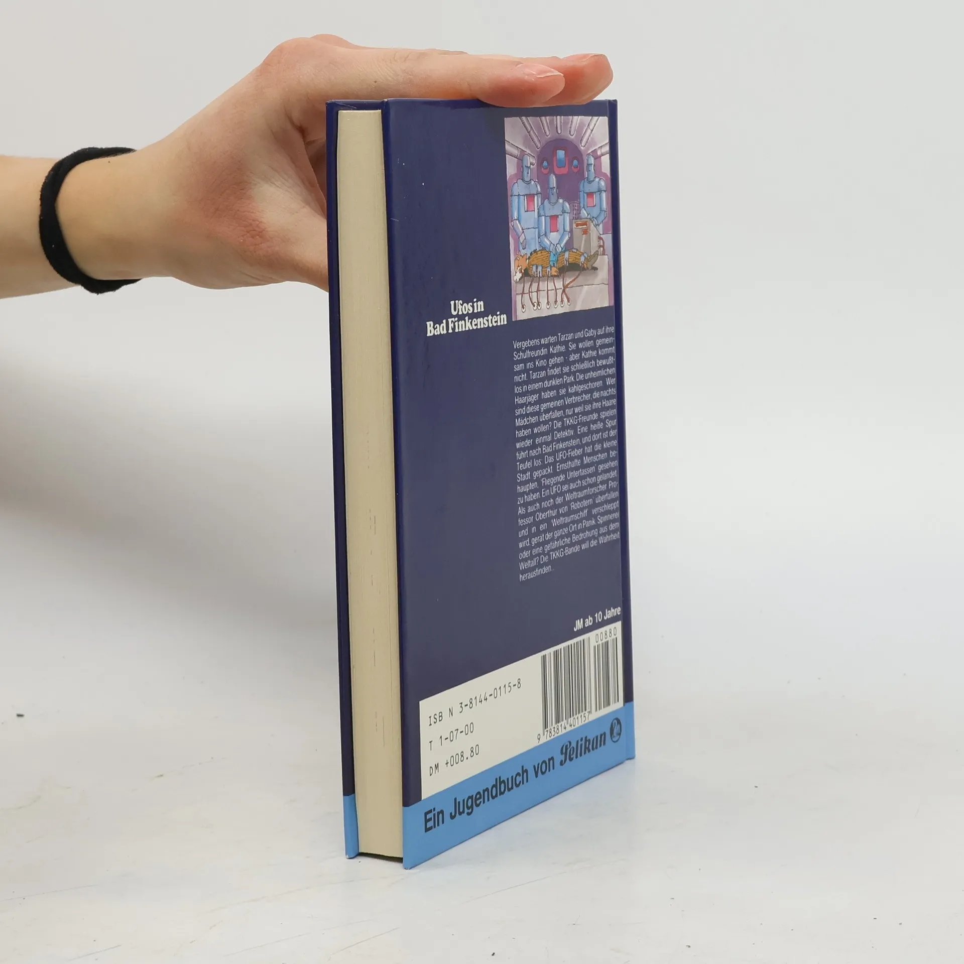 Vergebens warten Tarzan und Gaby auf ihre Schulfreundin Kathie. Sie wollen gemeinsam ins Kino gehen - aber Kathie kommt nicht. Tarzan findet sie schließlich bewusstlos in einem dunklen Park. Die unheimlichen Haarjäger haben sie kahlgeschoren. Wer sind diese gemeinen Verbrecher, die nachts Mädchen überfallen, nur weil sie ihre Haare haben wollen? Die TKKG-Freunde spielen wieder einmal Detektiv. Eine heiße Spur führt nach Bad Finkenstein, und dort ist der Teufel Das UFO-Fieber hat die kleine Stadt gepackt. Ernsthafte Menschen behaupten, 'Fliegende Untertassen' gesehen zu haben. Ein UFO sei auch schon gelandet. Als auch noch der Weltraumforscher Professor Oberthür von 'Robotern' überfallen und in ein 'Weltraumschiff' verschleppt wird, gerät der ganze Ort in Panik. Spinnerei oder eine gefährliche Bedrohung aus dem Weltall? Die TKKG-Bande will die Wahrheit herausfinden...