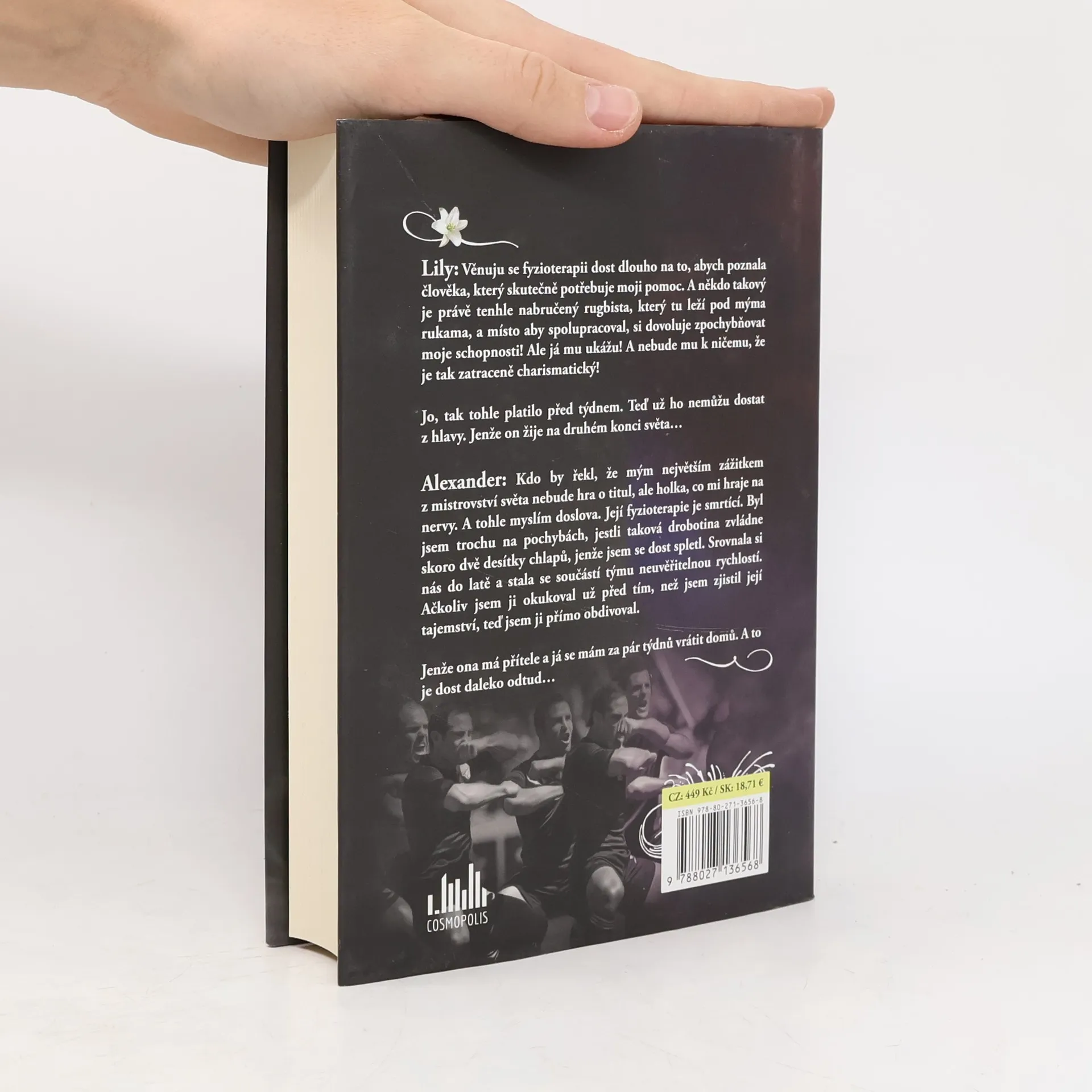 Žhavý román nejen o ragby, následné fyzioterapii a osudové lásce od české autorky. Lily: Věnuju se fyzioterapii dost dlouho na to, abych poznala člověka, který skutečně potřebuje moji pomoc. A někdo takový je právě tenhle nabručený rugbista, který tu leží pod mýma rukama, a místo aby spolupracoval, si dovoluje zpochybňovat moje schopnosti! Ale já mu ukážu! A nebude mu k ničemu, že je tak zatraceně charismatický!Jo, tak tohle platilo před týdnem. Teď už ho nemůžu dostat z hlavy. Jenže on žije na druhém konci světa… Alexander: Kdo by řekl, že mým největším zážitkem z mistrovství světa nebude hra o titul, ale holka, co mi hraje na nervy. A tohle myslím doslova. Její fyzioterapie je smrtící. Byl jsem trochu na pochybách, jestli taková drobotina zvládne skoro dvě desítky chlapů, jenže jsem se dost spletl. Srovnala si nás do latě a stala se součástí týmu neuvěřitelnou rychlostí. Ačkoliv jsem ji okukoval už před tím, než jsem zjistil její tajemství, teď jsem jí přímo obdivoval. Jenže ona má přítele a já se mám za pár týdnu vrátit domů. A to je dost daleko odtud…