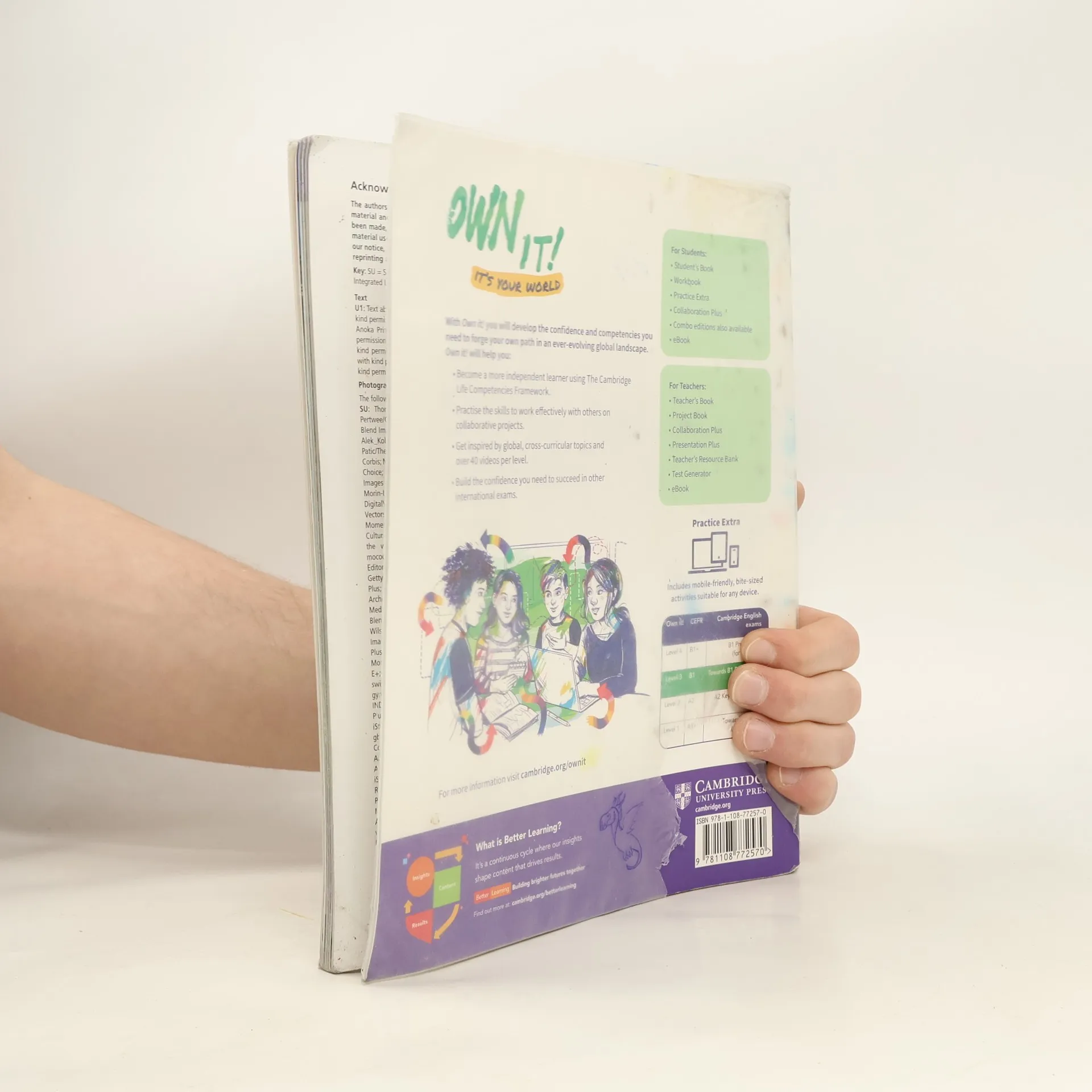 Own it! is a four-level lower Secondary course which makes sure that students are confident and future-ready through a combination of global topics, collaborative projects and strategies to develop learner independence. We live in a rapidly changing world. With Own It!, teens develop the confidence and competencies they need to forge their own path in this ever-evolving global landscape. From developing critical and creative thinking skills and social/emotional aptitudes to working effectively in a group, Own it! helps create confident, future-ready learners who are able to meet the challenges ahead. The Student's Book includes full access to all digital tools for students, including mobile-friendly Practice Extra and the digital collaboration space.