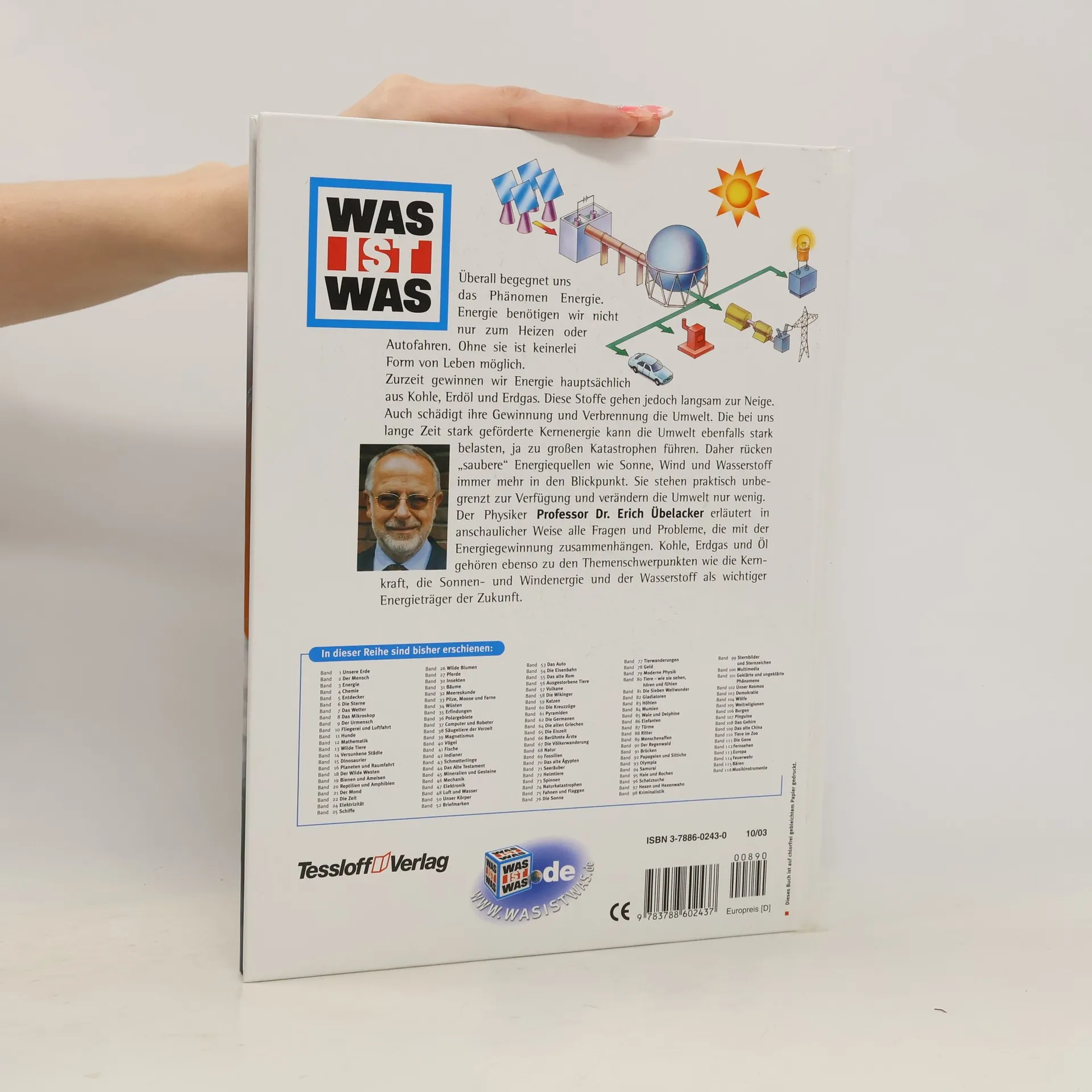 Der Physiker Professor Dr. Erich Übelacker erläutert in anschaulicher Weise alle Fragen und Probleme, die mit der Energiegewinnung zusammenhängen. Kohle, Erdgas und Öl gehören ebenso zu den Themenschwerpunkten wie die Kernkraft, die Sonnen- und Windenergie und der Wasserstoff als wichtiger Energieträger der Zukunft.