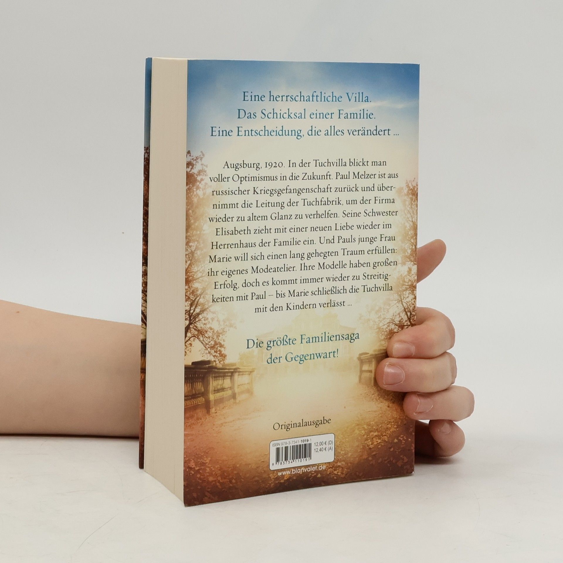 Das Schicksal einer Familie in einer bewegten Zeit. Und eine Liebe, die alles überwindet. Augsburg, 1920. In der Tuchvilla blickt man voller Optimismus in die Zukunft. Paul Melzer ist aus russischer Kriegsgefangenschaft zurück und übernimmt die Leitung der Tuchfabrik, um der Firma wieder zu altem Glanz zu verhelfen. Seine Schwester Elisabeth zieht mit einer neuen Liebe wieder im Herrenhaus der Familie ein. Und Pauls junge Frau Marie will sich einen lang gehegten Traum erfüllen: ihr eigenes Modeatelier. Ihre Modelle haben großen Erfolg, doch es kommt immer wieder zu Streitigkeiten mit Paul – bis Marie schließlich die Tuchvilla mit den Kindern verlässt … SPIEGEL-Bestsellerautorin Anne Jacobs bei Blanvalet: Die Tuchvilla-Saga: 1. Die Tuchvilla 2. Die Töchter der Tuchvilla 3. Das Erbe der Tuchvilla 4. Rückkehr in die Tuchvilla Die Gutshaus-Saga: 1. Das Gutshaus. Glanzvolle Zeiten 2. Das Gutshaus. Stürmische Zeiten 3. Das Gutshaus. Zeit des Aufbruchs