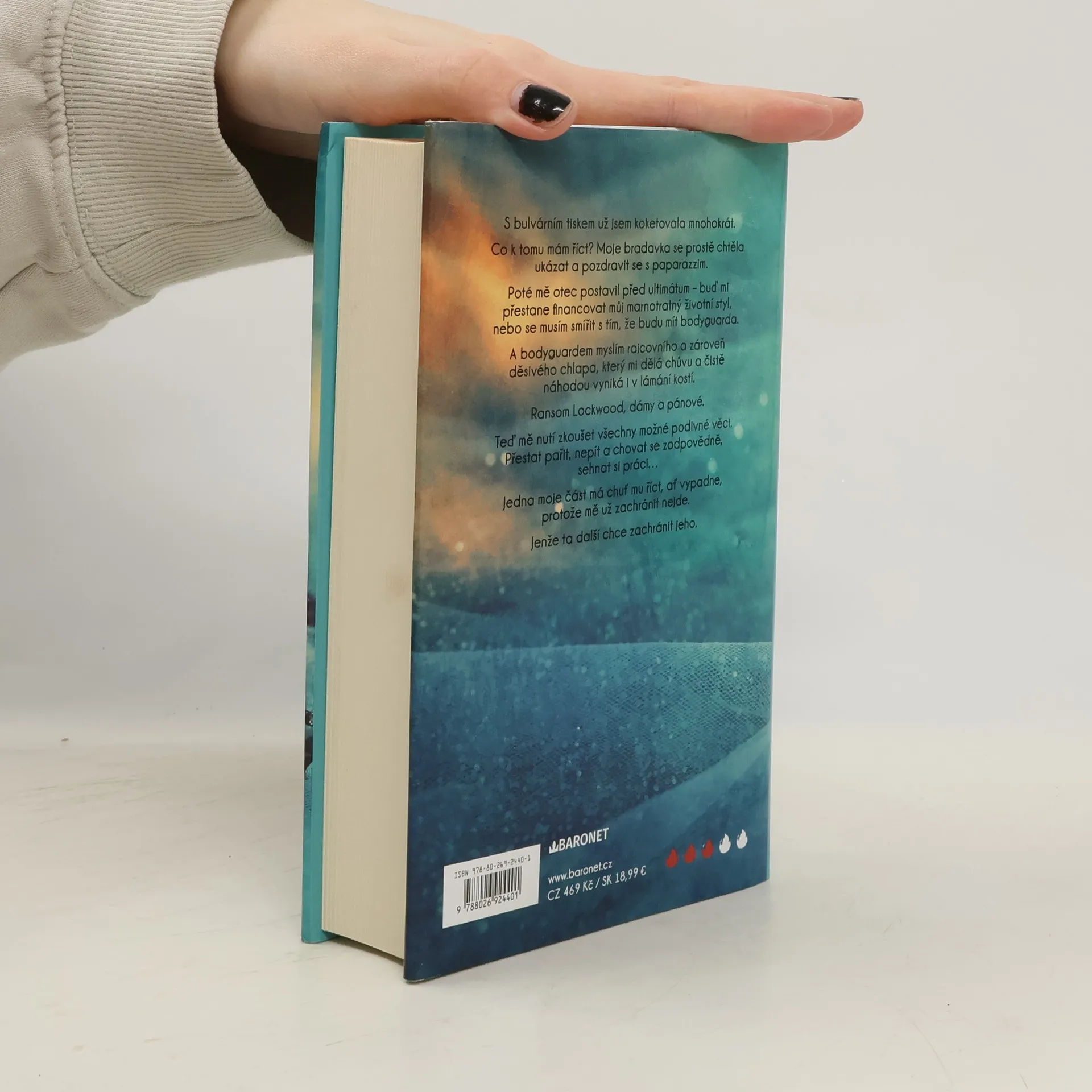 Příběh s romantickou zápletkou od americké autorky. Hallie a její divoký život královny večírků musí nutně jednoho dne skončit. A ta chvíle právě přišla spolu s okouzlujícím, ale nebezpečným bodyguardem Ransomem Lockwoodem. Nebudu si hrát na nevinnou, až příliš často jsem se dostala do hledáčku bulváru. A po tom posledním incidentu s bradavkou mi otec dal ultimátum: buď přestane platit můj okázalý životní styl, nebo si nechám přidělit bodyguarda. Ransom Lockwood, dámy a pánové. Sexy nabušený tělesný strážce, který mě teď nutí, abych přestala pařit a uklidnila se... Jedna moje část by ho nejradši poslala do háje. A ta druhá? Ta ho chce zachránit. Nevím, jak to dopadne, ale jedno je jisté - než to zjistím, užiju si dost zábavy. Nakladatelská anotace.