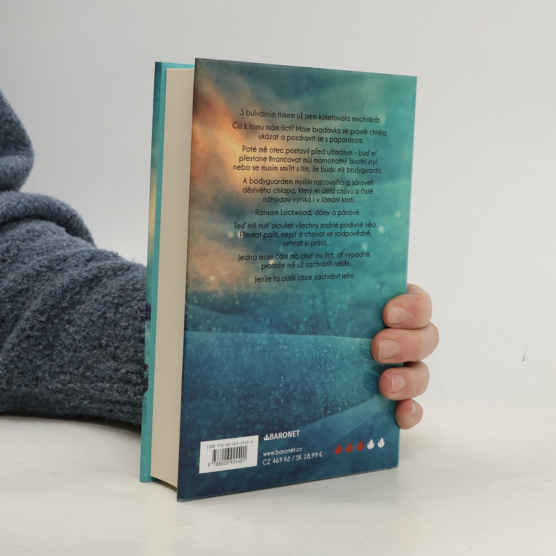 Příběh s romantickou zápletkou od americké autorky. Hallie a její divoký život královny večírků musí nutně jednoho dne skončit. A ta chvíle právě přišla spolu s okouzlujícím, ale nebezpečným bodyguardem Ransomem Lockwoodem. Nebudu si hrát na nevinnou, až příliš často jsem se dostala do hledáčku bulváru. A po tom posledním incidentu s bradavkou mi otec dal ultimátum: buď přestane platit můj okázalý životní styl, nebo si nechám přidělit bodyguarda. Ransom Lockwood, dámy a pánové. Sexy nabušený tělesný strážce, který mě teď nutí, abych přestala pařit a uklidnila se... Jedna moje část by ho nejradši poslala do háje. A ta druhá? Ta ho chce zachránit. Nevím, jak to dopadne, ale jedno je jisté - než to zjistím, užiju si dost zábavy. Nakladatelská anotace.