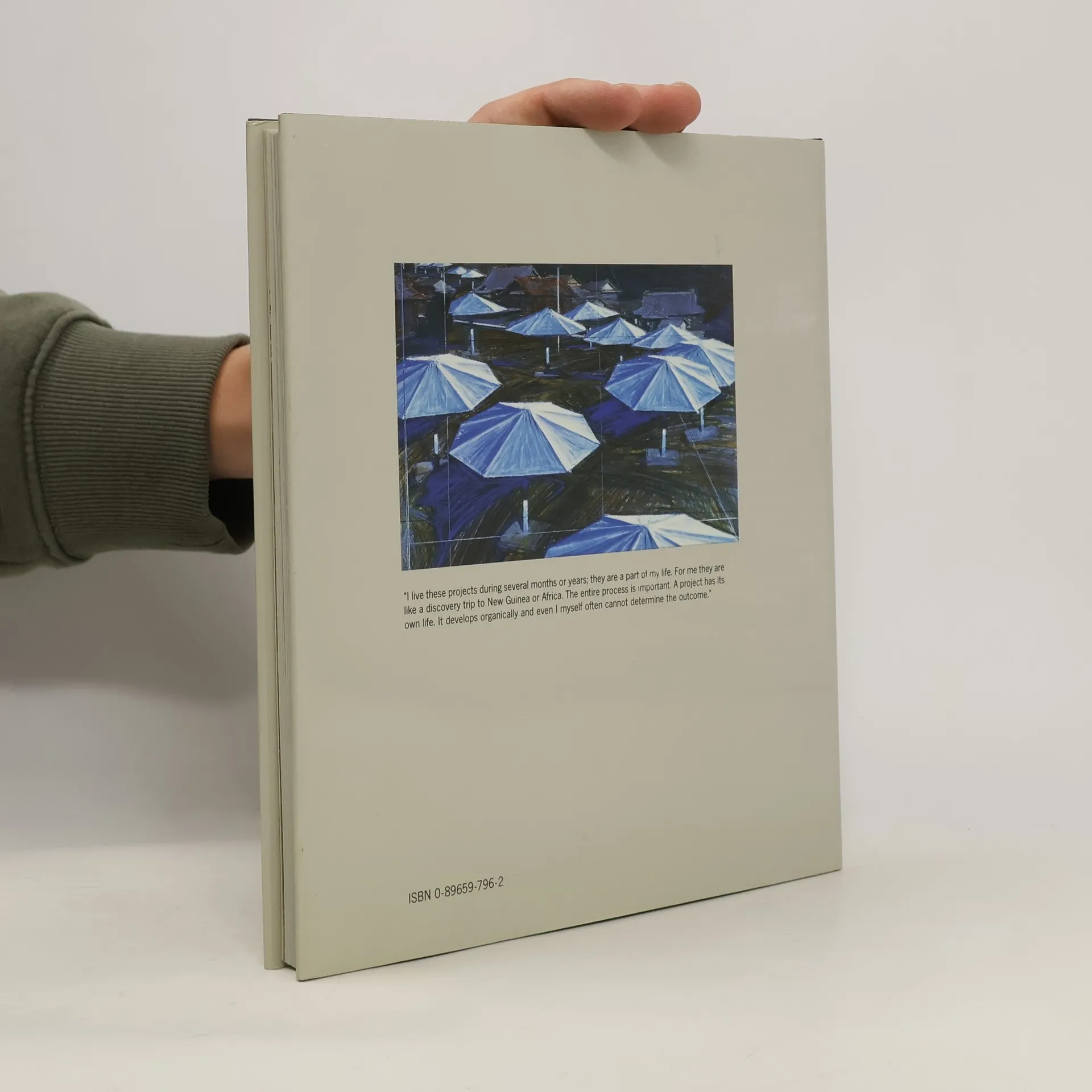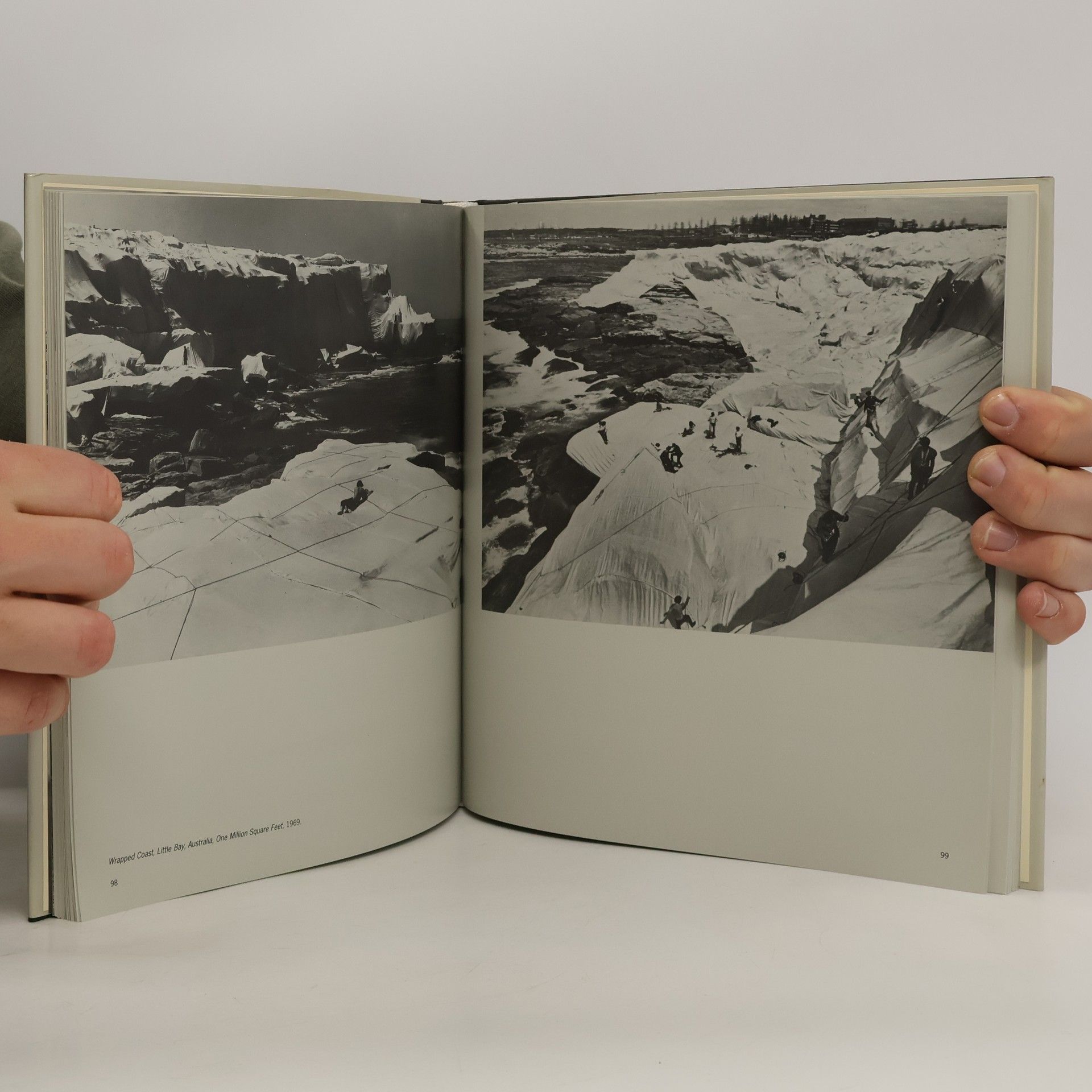 Shows the artist's lithographs and wrapped objects and discusses both his completed and uncompleted projects