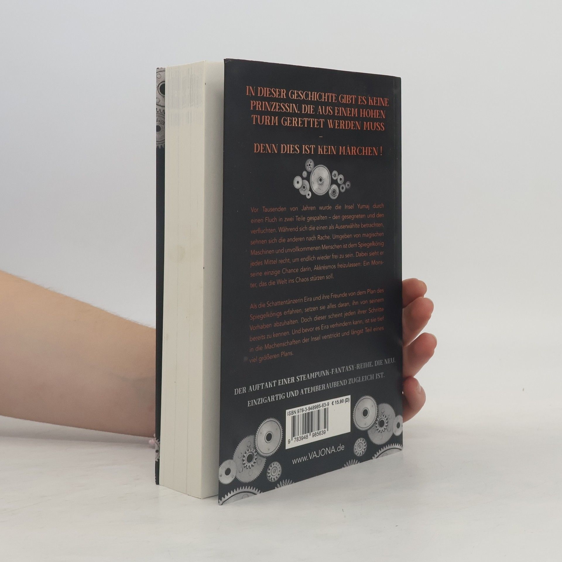 *In dieser Geschichte gibt es keine Prinzessin, die aus einem hohen Turm gerettet werden muss – denn dies ist kein Märchen!* Vor Tausenden von Jahren wurde die Insel Yumaj durch einen Fluch in zwei Teile gespalten – den gesegneten und den verfluchten. Während sich die einen als Auserwählte betrachten, sehnen sich die anderen nach Rache. Umgeben von magischen Maschinen und unvollkommenen Menschen ist dem Spiegelkönig jedes Mittel recht, um endlich wieder frei zu sein. Dabei sieht er seine einzige Chance darin, Akkrésmos freizulassen: Ein Monster, das die Welt ins Chaos stürzen soll. Als die Schattentänzerin Eira und ihre Freunde von dem Plan des Spiegelkönigs erfahren, setzen sie alles daran, ihn von seinem Vorhaben abzuhalten. Doch dieser scheint jeden ihrer Schritte bereits zu kennen. Und bevor es Eira verhindern kann, ist sie tief in die Machenschaften der Insel verstrickt und längst Teil eines viel größeren Plans. Der Auftakt einer Steampunk-Fantasy-Reihe, die neu, einzigartig und atemberaubend zugleich ist.