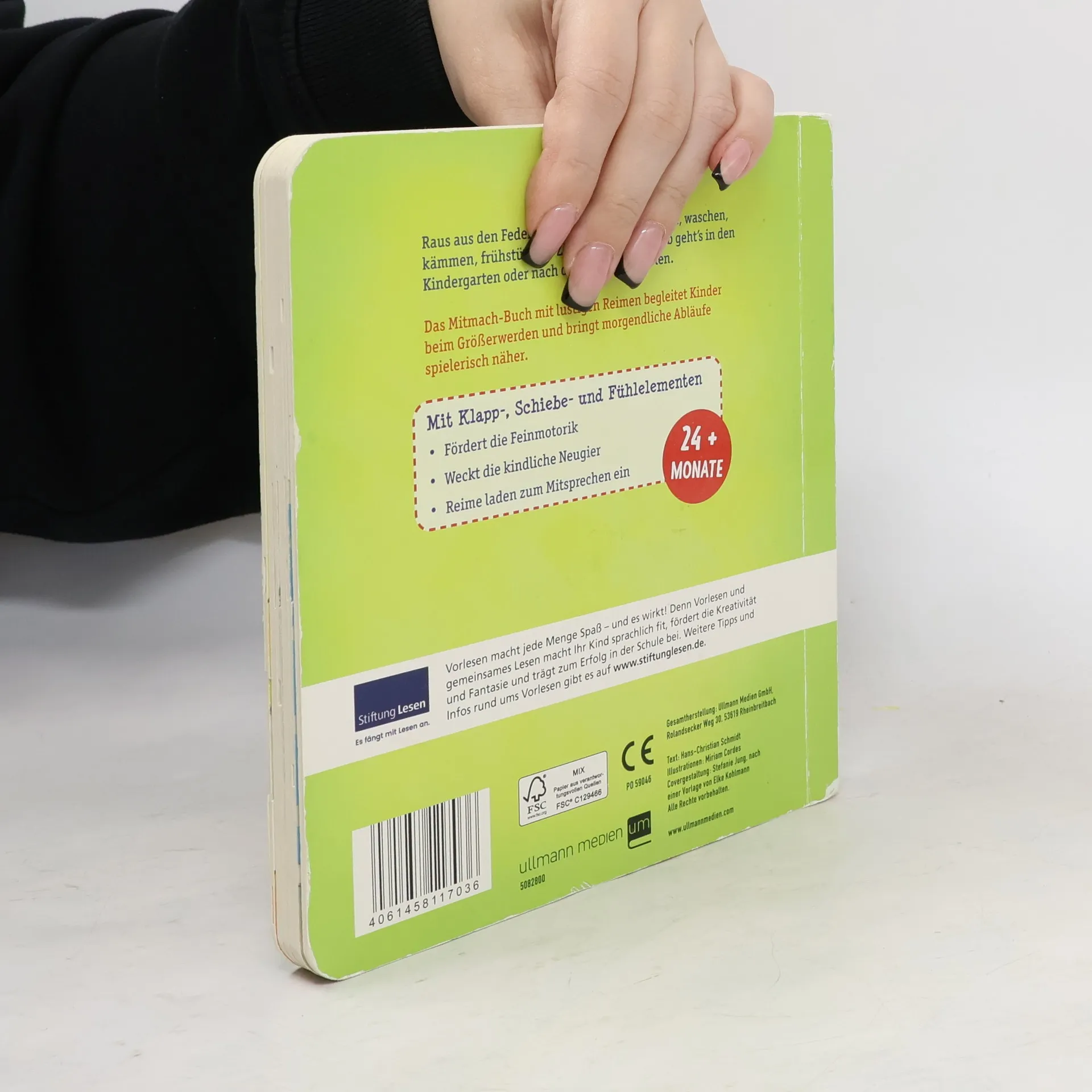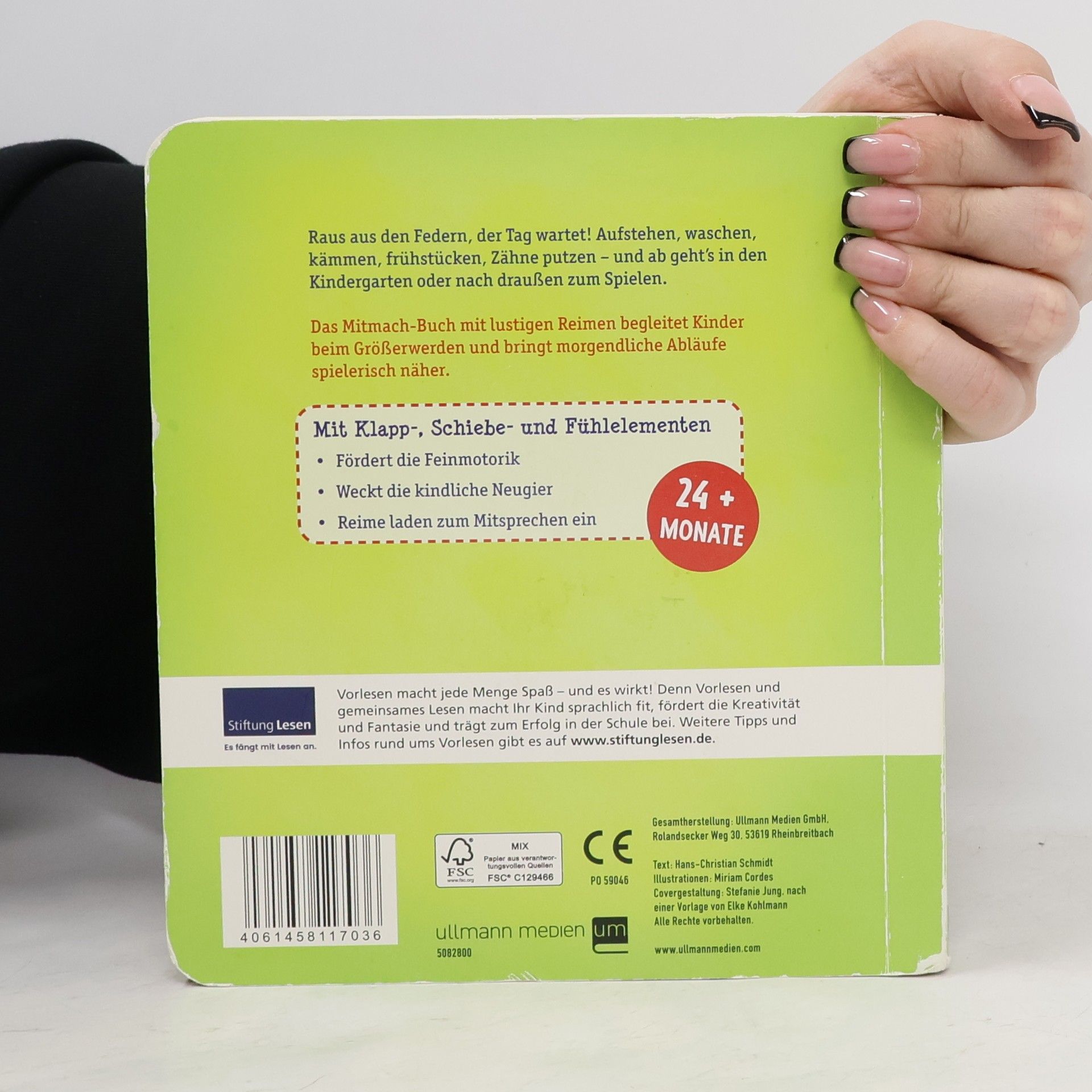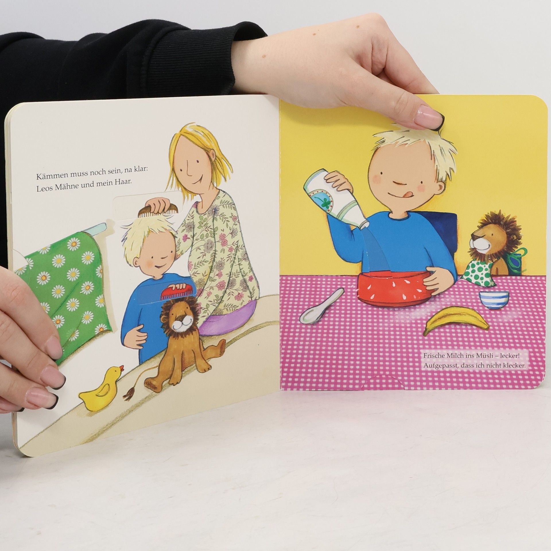Guten Morgen, so beginnt mein Tag. Ein schönes Buch für die kleinen. Meine Tochter schaut es gerne an, da es auch Schiebe und Klapp Elemente gibt. Durch die dicken Seiten sehr Stabil. Die Texte sind leicht zu verstehen.