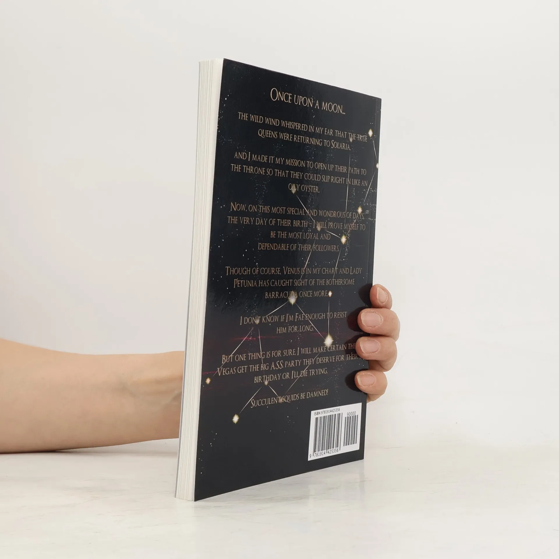 Once upon a moon, the wild wind whispered in my ear that the true queens were returning to Solaria and I made it my mission to open up their path to the throne so that they could slip right in like an oily oyster.Now, on this most special and wonderous of days, the very day of their birth – I will prove myself to be the most loyal and dependable of their followers. Though of course, Venus is in my chart and Lady Petunia has caught sight of the bothersome barracuda once more.Max Rigel is my most sinful of temptations, the shark in the dark who wishes to lure me to his sea cave and I don’t know if I’m Fae enough to resist him for long.But one thing is for sure, I will make certain the Vegas get the big A.S.S. party they deserve for their birthday or I’ll die trying. Succulent squids be damned!This is a 25k novella set in the world of Solaria during Book 5 of the Zodiac Academy series, Cursed Fates, featuring Geraldine and Max as they attend the party of the century and try to resist the lure of the moon as it pushes them together once more. It’s full of slippery salmons and more buttery bagels than you can shake a stick at and is best read after Cursed Fates.