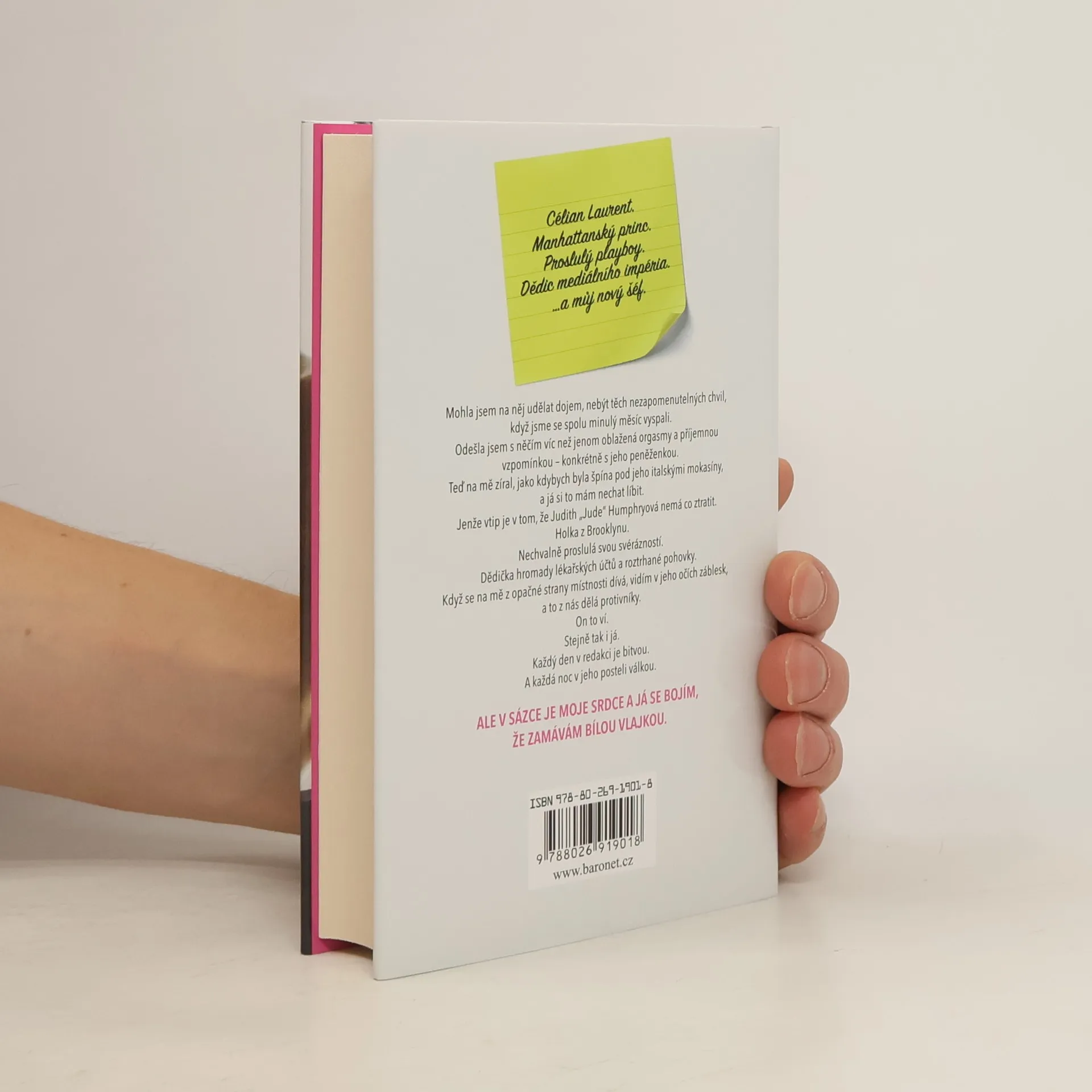 Célian Laurent. Manhattanský princ. Proslulý playboy. Dědic mediálního impéria. … A můj nový šéf. Mohla jsem na něj udělat dojem, nebýt těch nezapomenutelných chvil, když jsme se spolu minulý měsíc vyspali. Odešla jsem s něčím víc, než jenom oblažena orgasmy a příjemnou vzpomínkou – konkrétně s jeho peněženkou. Teď na mě zíral, jako kdybych byla špína pod jeho italskými mokasíny, a já si to mám nechat líbit. Jenže vtip je v tom, že Judith „Jude“ Humphryová nemá co ztratit. Holka z Brooklynu. Nechvalně proslulá svou svérázností. Dědička hromady lékařských účtů a roztrhané pohovky. Když se na mě z opačné strany pokoje dívá, vidím v jeho očích záblesk a to z nás dělá protivníky. On to ví. Stejně tak i já. Každý den v redakci je bitvou. A každá noc v jeho posteli válka. Ale v sázce je moje srdce a já se bojím, že zvednu bílou vlajku.
