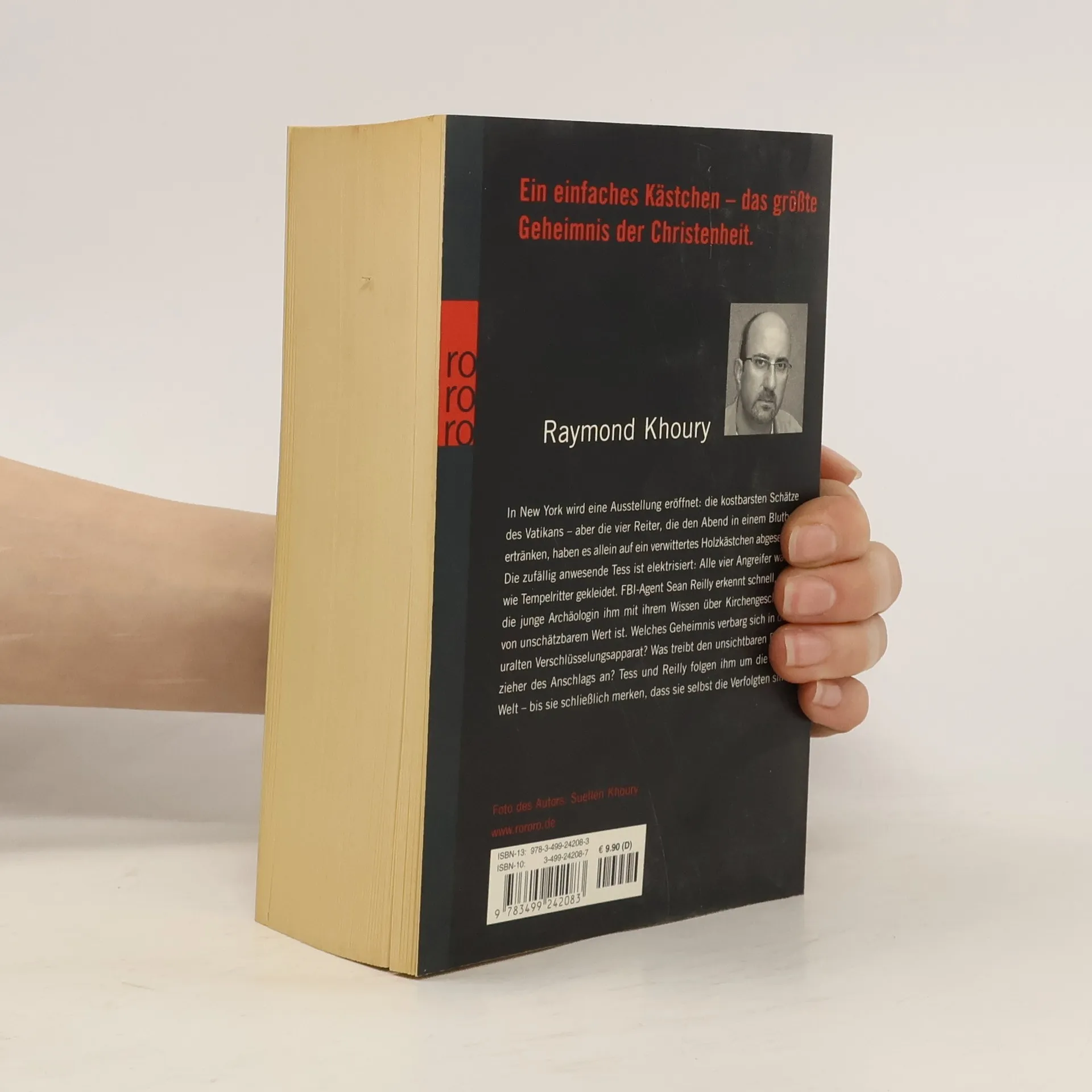 Ein unscheinbares Kästchen - das größte Geheimnis der Christenheit. In New York wird eine Ausstellung eröffnet: die kostbarsten Schätze des Vatikans – aber die vier Reiter, die den Abend in einem Blutbad ertränken, haben es allein auf ein verwittertes Holzkästchen abgesehen. Die zufällig anwesende Tess Chaykin ist elektrisiert: Die Angreifer waren wie mittelalterliche Tempelritter gekleidet. FBI-Agent Sean Reilly merkt schnell, dass die junge Archäologin ihm mit ihrem Wissen von unschätzbarem Wert ist. Welches Geheimnis verbarg sich in dem uralten Verschlüsselungsapparat? Was treibt den unsichtbaren Drahtzieher des Anschlags an? Tess und Reilly folgen ihm um die halbe Welt – am Ende erkennen sie, dass sie selbst die Verfolgten sind. DER WELT-BESTSELLER: EINE MILLION VERKAUFTE EXEMPLARE IN DEUTSCHLAND