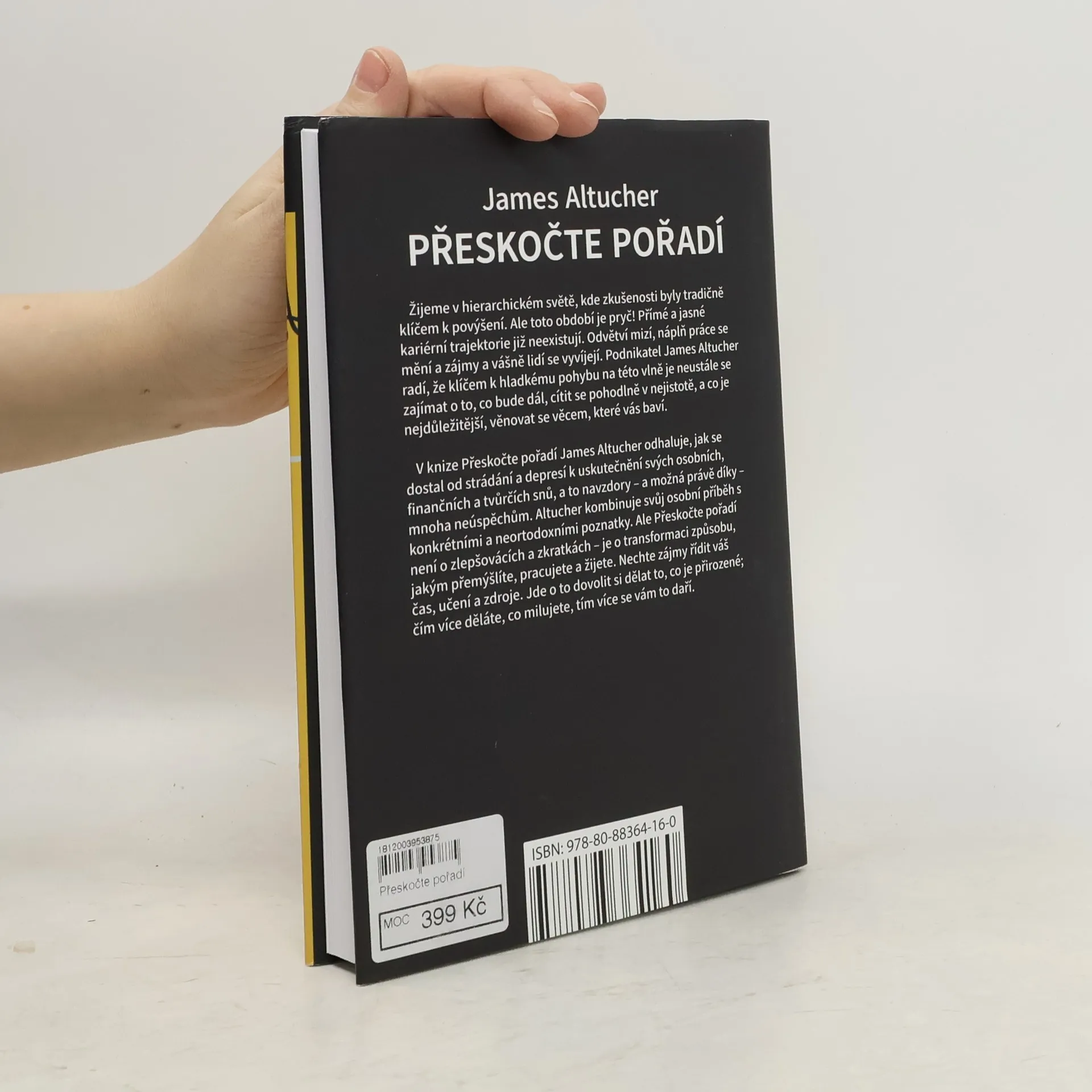 Žijeme v hierarchickém světě, kde zkušenosti byly tradičně klíčem k povýšení. Ale toto období je pryč! Přímé a jasné kariérní trajektorie již neexistují. Odvětví mizí, náplň práce se mění a zájmy a vášně lidí se vyvíjejí. Podnikatel James Altucher radí, že klíčem k hladkému pohybu na této vlně je neustále se zajímat o to, co bude dál, cítit se pohodlně v nejistotě, a co je nejdůležitější, věnovat se věcem, které vás baví. V knize Přeskočte pořadí James Altucher odhaluje, jak se dostal od strádání a depresí k uskutečnění svých osobních, finančních a tvůrčích snů, a to navzdory – a možná právě díky – mnoha neúspěchům. Altucher kombinuje svůj osobní příběh s konkrétními a neortodoxními poznatky. Ale Přeskočte pořadí není o zlepšovácích a zkratkách – je o transformaci způsobu, jakým přemýšlíte, pracujete a žijete. Nechte zájmy řídit váš čas, učení a zdroje. Jde o to dovolit si dělat to, co je přirozené; čím více děláte, co milujete, tím více se vám to daří.
