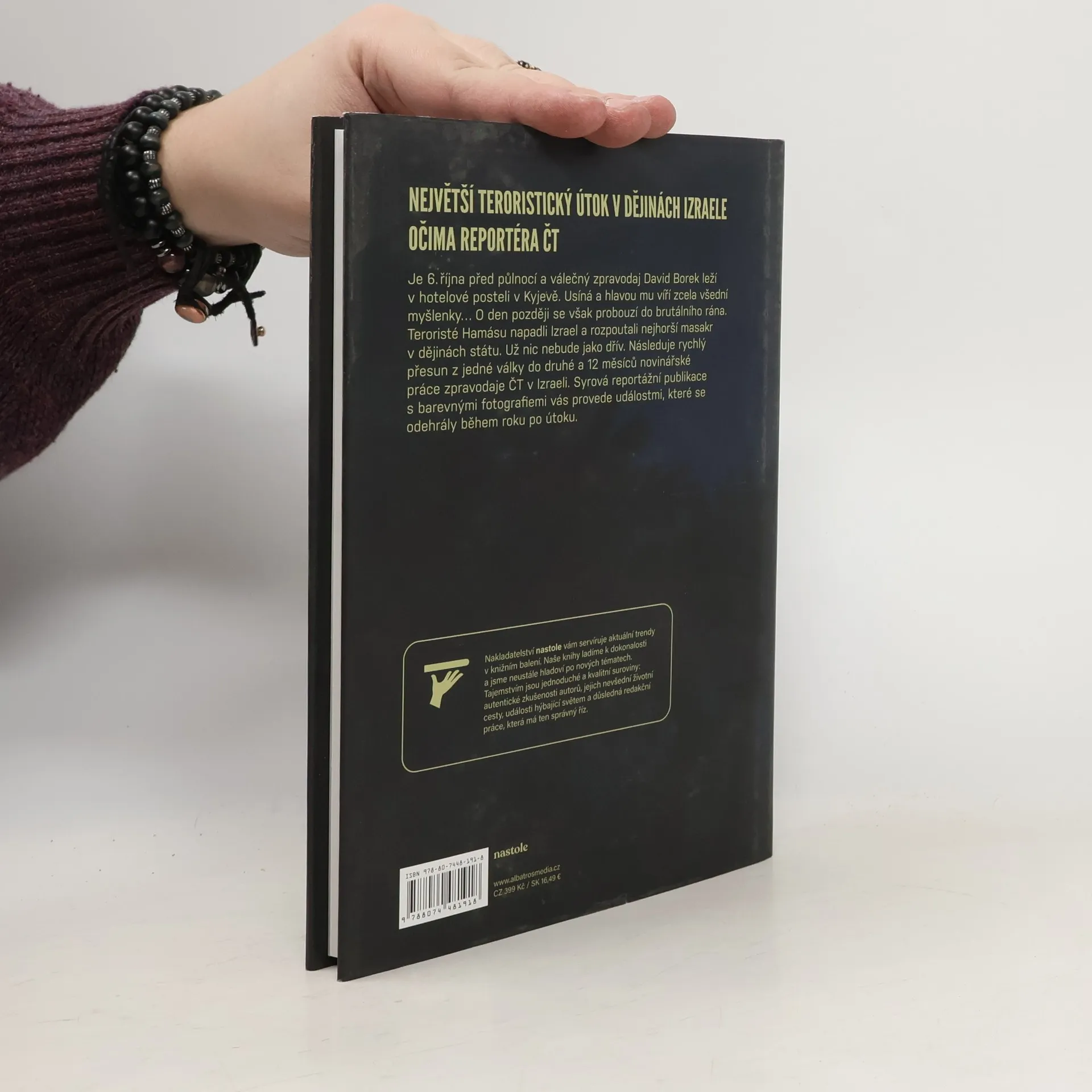 Je 6. října před půlnocí a válečný zpravodaj David Borek leží v hotelové posteli v Kyjevě. Usíná a hlavou mu víří zcela všední myšlenky… O den později se však probouzí do brutálního rána. Teroristé Hamásu napadli Izrael a rozpoutali nejhorší masakr v dějinách státu. Už nic nebude jako dřív. Následuje rychlý přesun z jedné války do druhé a 12 měsíců novinářské práce jako zpravodaj ČT v Izraeli. Syrová reportážní publikace s barevnými fotografiemi vás provede událostmi, které se odehrály během roku po útoku.