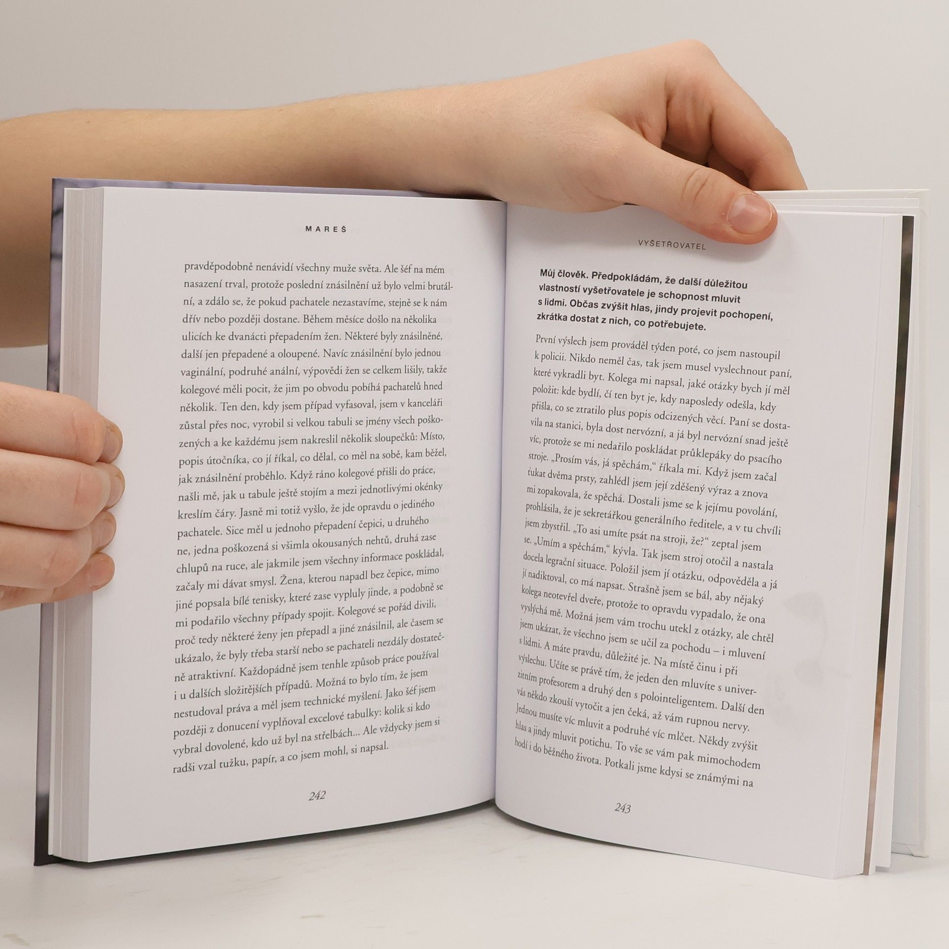 Kniha je vedena formou rozhovorů s Josefem Marešem, který je jedním z nejznámějších českých kriminalistů, bývalým šéfem pražské mordparty a autorem seriálů Devadesátky a Případy 1. oddělení. Mareš vzpomíná na známé případy, jako je vytahování sudů z Orlické přehrady, zmizelá Anička nebo přestřelka, do které byla zapletena mafie. Vypráví také o tom, jak zpracovává zlo, se kterým se při práci setkává, jak probíhá vyšetřování i o jeho vztahu k pachatelům.