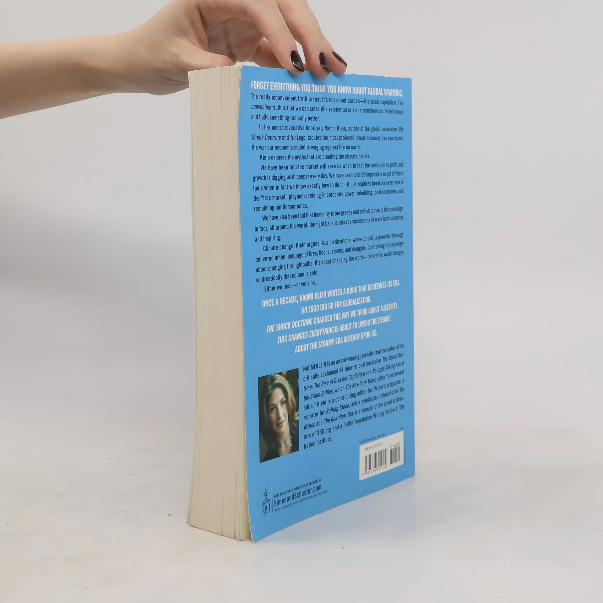 Forget everything you think you know about global warming. It's not about carbon – it's about capitalism. The good news is that we can seize this crisis to transform our failed economic system and build something radically better.In her most provocative book yet, Naomi Klein, author of the global bestsellers Shock Doctrine and No Logo, exposes the myths that are clouding climate debate.You have been told the market will save us, when in fact the addiction to profit and growth is digging us in deeper every day. You have been told it's impossible to get off fossil fuels when in fact we know exactly how to do it – it just requires breaking every rule in the 'free-market' playbook. You have also been told that humanity is too greedy and selfish to rise to this challenge. In fact, all around the world, the fight back is already succeeding in ways both surprising and inspiring.It's about changing the world, before the world changes so drastically that no one is safe. Either we leap – or we sink. This Changes Everything is a book that will redefine our era.