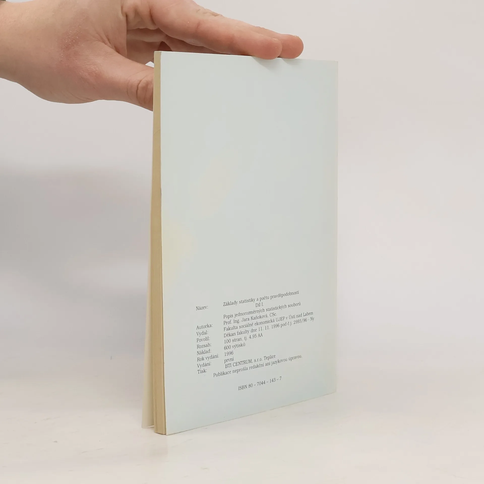Základy statistiky a počtu pravděpodobnosti, Jara Kaňoková