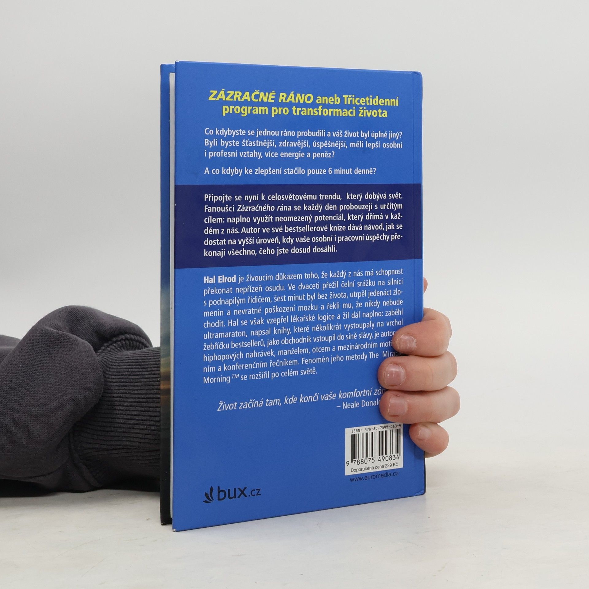 Tajemství, které vám změní život Ke zlepšení stačí 6 minut denně Celosvětový trend, který v poslední době dobývá svět: čtenáři a fanoušci Zázračného rána tvoří pozoruhodnou skupinu sestavenou z podobně založených jednotlivců, kteří se každé ráno probouzejí s určitým cílem: naplno využít neomezený potenciál, který dřímá v každém z nás. Tvůrce tohoto fenoménu má za sebou neuvěřitelný osud – po tragické autonehodě upadl do kómatu, přežil klinickou smrt, překonal fyzický handicap a propracoval se k celosvětovému úspěchu. Ve své knize dává návod, jak se dostat na vyšší úroveň, kde vaše osobní i pracovní úspěchy daleko přesáhnou všechno, co jste dokázali v minulosti.