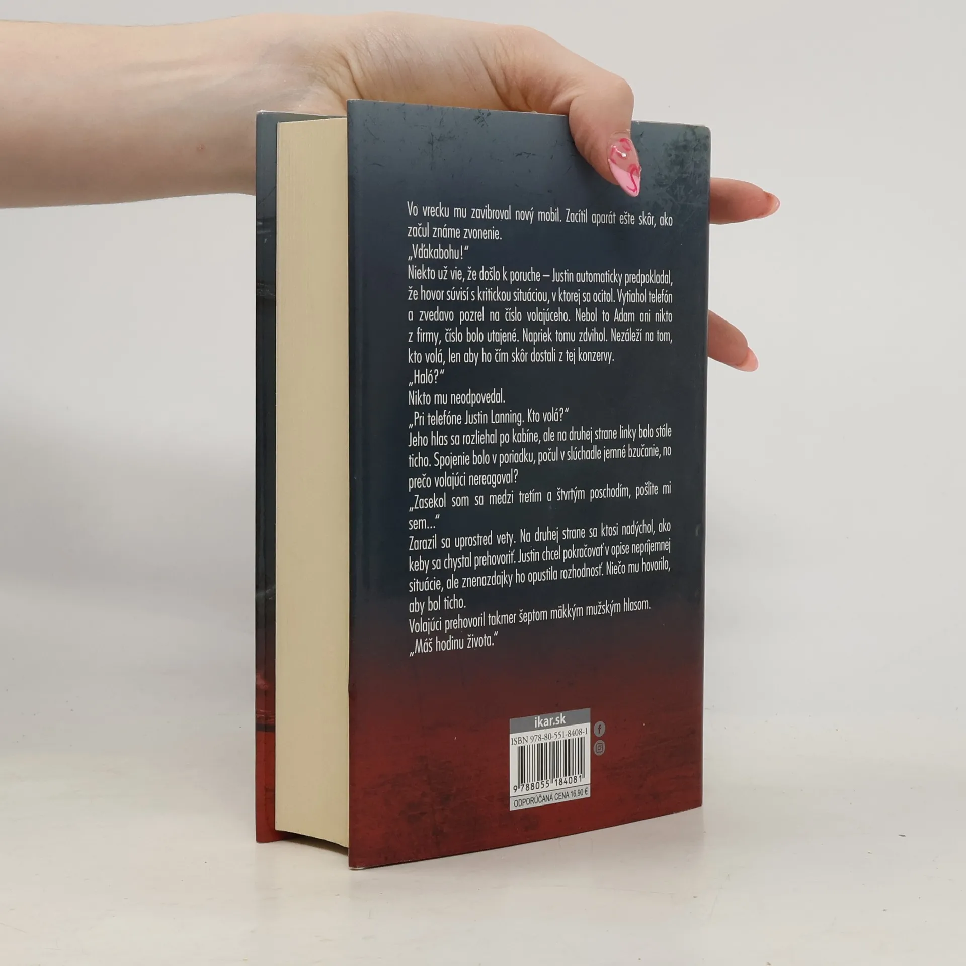 Jeden anonymný telefonát, jedna hodina života „Máš hodinu života.“ Nič viac vo výhražnom telefonáte nezaznie. Spojenie sa preruší. Je to nejaký kanadský žart? Omyl? Nesprávne číslo? Všetko je lepšie ako mrazivá skutočnosť, že vrah sliedi, čaká a usilovne pracuje na tom, aby do hodiny splnil svoju hrozbu. Ale prečo to robí? Hľadanie odpovede zostane na ostrieľanej hlavnej vyšetrovateľke Helen Graceovej, ktorá má s podobnými prípadmi bohaté skúsenosti. Lenže tentoraz si vrah majstrovsky udržiava náskok nielen pred obeťami, ale aj pred bezradnou políciou. Chýba motív, stopa, podozrenie. Hodina strachu je dlhá ako celý život.
