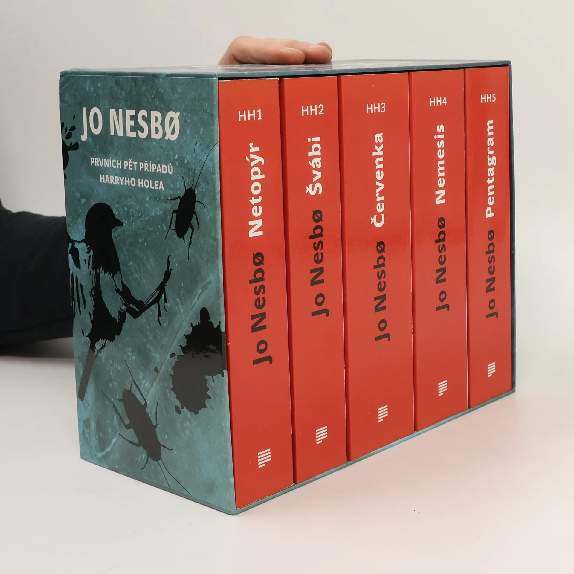 „Prvních pět případů nekompromisního detektiva Harryho Hola za exkluzivní cenu!“ Seznamte se se svérázným detektivem Harrym Holem a ponořte se do fascinujícího světa vyšetřovaní nejneuvěřitelnějších zločinů. Skvělý vypravěč Jo Nesbo čtenáře rozhodně nešetří. Mrazivé napětí, záhadná zmizení, temný zločin, šokující vraždy a nečekané zvraty porcuje snad v každé kapitole všech pěti dílů. Netopýr, Švábi, Červenka, Nemesis a Pentagram se odehrávají nejen ve Skandinávii, ale zavedou čtenáře do exotického Thajska nebo daleké Austrálie.