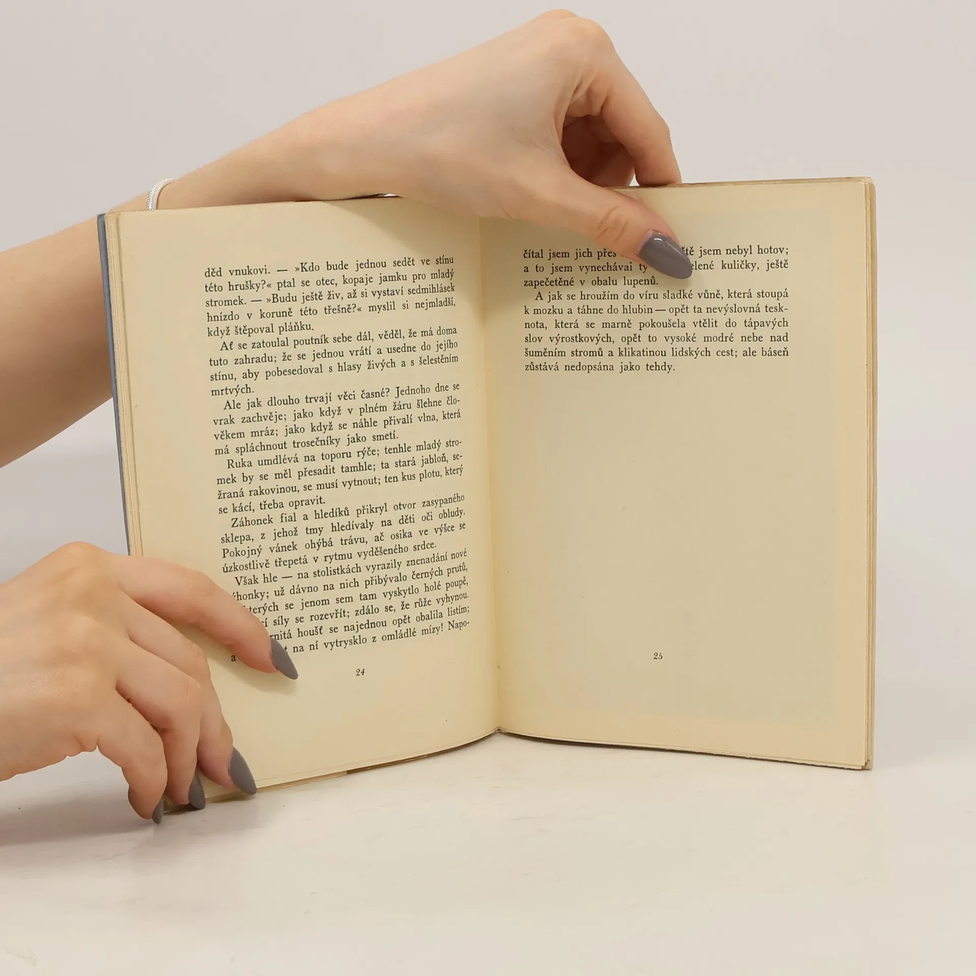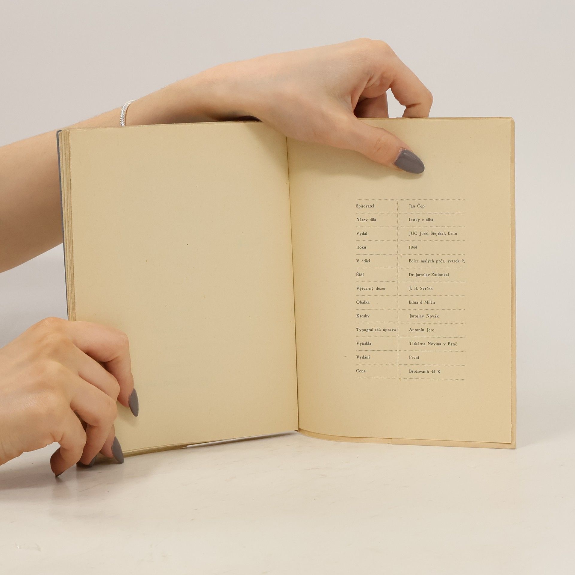 Soubor drobných próz, které vznikly ve 30. a 40. letech a vyšly v útlém sešitku. Jsou to texty evokující staré fotografie. Dojmy a obrazy místy převažují nad dějovou linkou a je z nich znát Čepovo pevné ukotvení v hanácké rovině, kde se roku 1902 narodil a na kterou v méně šťastných dnech pařížského exilu stále vzpomínal. V hlavě se mu komíhaly obrazy: návsi pod sněhem, ospalých oken, bílých střech a náhle zelenající se hrušně, kývající zvolna listnatými haluzemi...