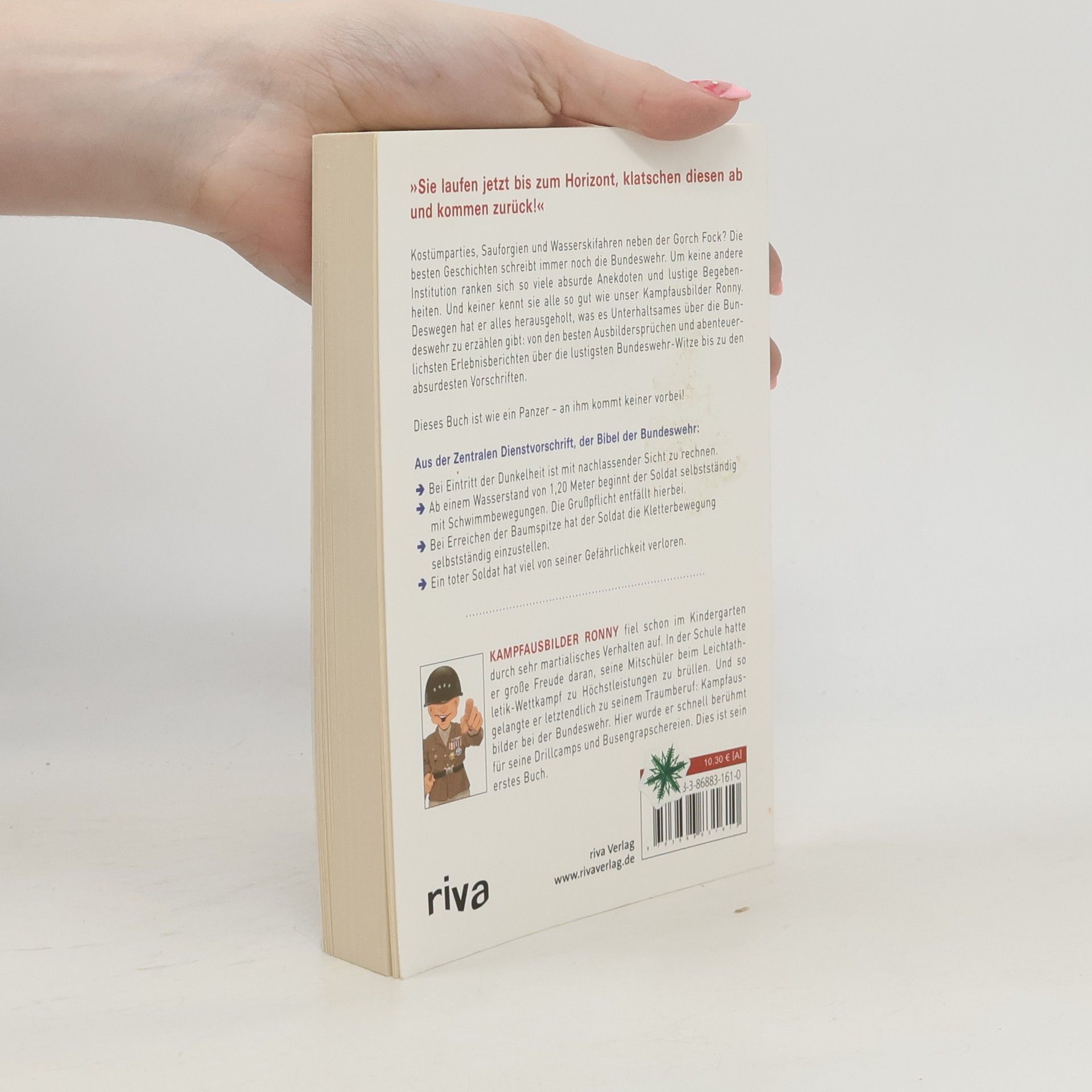 Jeder hat schon einmal Schreckensgeschichten oder lustige Anekdoten über die Bundeswehr gehört. Manche Geschichten werden in alter Tradition von Jahrgang zu Jahrgang weitergegeben, andere nur hinter verschlossenen Türen erzählt. Und täglich kommen neue hinzu. Dieses Buch bringt endlich die Wahrheit ans Licht und zeigt, wie es bei der Bundeswehr tatsächlich zugeht. Es versammelt all die lustigen und absurden Geschichten, verbreitet noch mehr Vorurteile und zieht sämtliche Klischees über den Bund hervor.