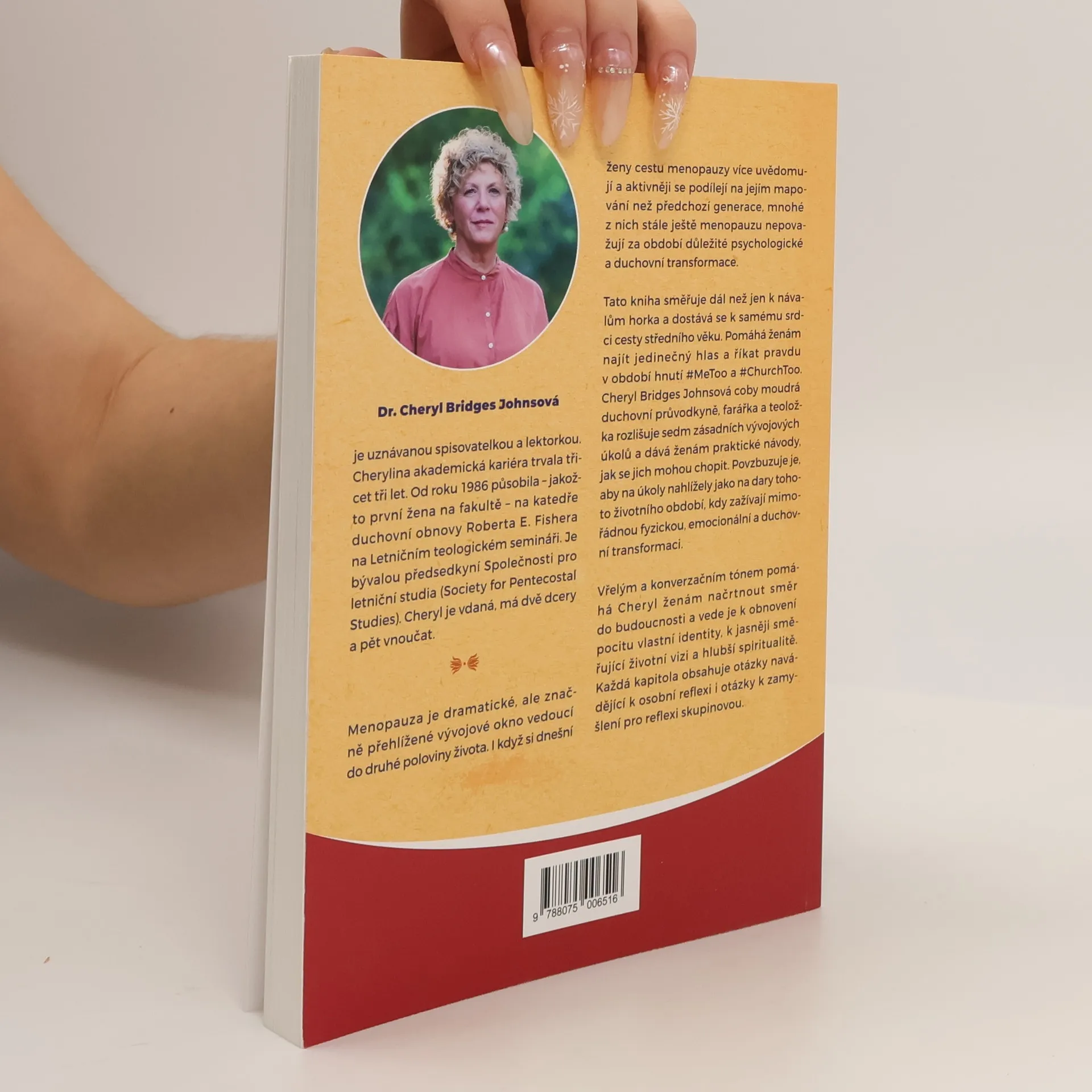 Menopauza je dramatické, ale značně přehlížené vývojové okno vedoucí do druhé poloviny života. I když si dnešní ženy cestu menopauzy více uvědomují a aktivněji se podílejí na jejím mapování než předchozí generace, mnohé z nich stále ještě menopauzu nepovažují za období důležité psychologické a duchovní transformace.Tato kniha směřuje dál než jen k návalům horka a dostává se k samému srdci cesty středního věku. Pomáhá ženám najít jedinečný hlas a říkat pravdu v období hnutí #MeToo a #ChurchToo. Cheryl Bridges Johnsová coby moudrá duchovní průvodkyně, farářka a teoložka rozlišuje sedm zásadních vývojových úkolů a dává ženám praktické návody, jak se jich mohou chopit. Povzbuzuje je, aby na úkoly nahlížely jako na dary tohoto životního období, kdy zažívají mimořádnou fyzickou, emocionální a duchovní transformaci.Vřelým a konverzačním tónem pomáhá Cheryl ženám načrtnout směr do budoucnosti a vede je k obnovení pocitu vlastní identity, k jasněji směřující životní vizi a hlubší spiritualitě. Každá kapitola obsahuje otázky navádějící k osobní reflexi i otázky k zamyšlení pro reflexi skupinovou.