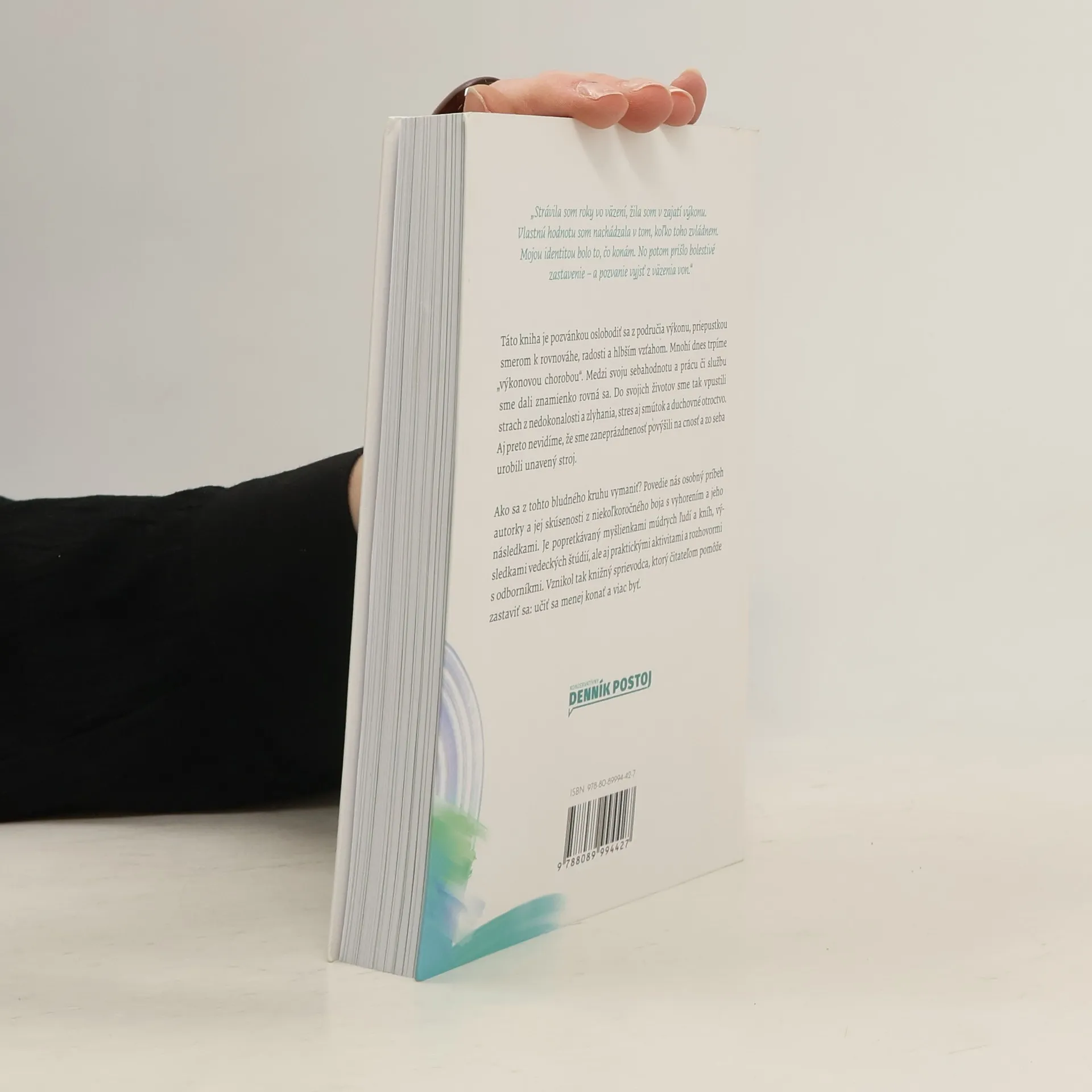 "Strávila som roky vo väzení, žila som v zajatí výkonu. Vlastnú hodnotu som nachádzala v tom, koľko toho zvládnem. Mojou identitou bolo to, čo konám. No potom prišlo bolestivé zastavenie -?a pozvanie vyjsť z väzenia von." Táto kniha je pozvánkou oslobodiť sa z područia výkonu, priepustkou smerom k rovnováhe, radosti a hlbším vzťahom. Mnohí dnes trpíme "výkonovou chorobou". Medzi svoju sebahodnotu a prácu či službu sme dali znamienko rovná sa. Do svojich životov sme tak vpustili strach z nedokonalosti a zlyhania, stres aj smútok a duchovné otroctvo. Aj?preto nevidíme, že sme zaneprázdnenosť povýšili na cnosť a zo seba urobili unavený stroj. Ako sa z tohto bludného kruhu vymaniť? Povedie nás osobný príbeh autorky a jej skúsenosti z niekoľkoročného boja s vyhorením a jeho následkami. Je popretkávaný myšlienkami múdrych ľudí a kníh, výsledkami vedeckých štúdií, ale aj praktickými aktivitami a rozhovormi s odborníkmi. Vznikol tak knižný sprievodca, ktorý čitateľom pomôže zastaviť sa: učiť sa menej konať a viac byť.
