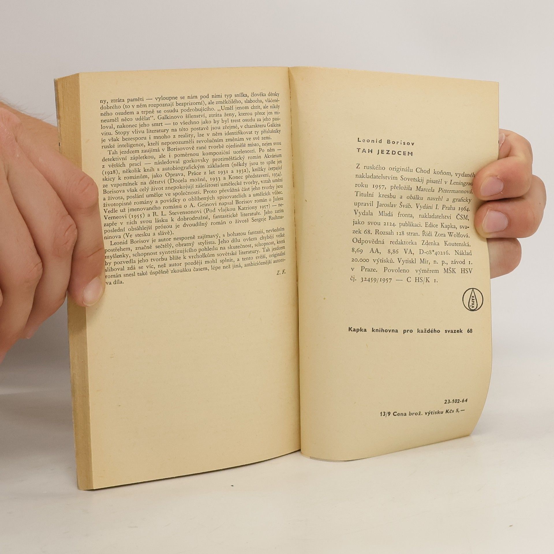 "Talentovaná kniha se zajímavým námětem", řekl Gorkij o této prozaické prvotině u nás zatím málo známého spisovatele (nar. 1897), jež poprvé vyšla v r. 1927. Vyvolá zájem jak detektivní zápletkou, záhadnou vraždou a jejím vyšetřováním, tak otevřeností, s níž v příběhu rozvíjeném v polovině dvacátých let líčí náladu a prostředí doby, střetání starého s novým ve společnosti i v člověku