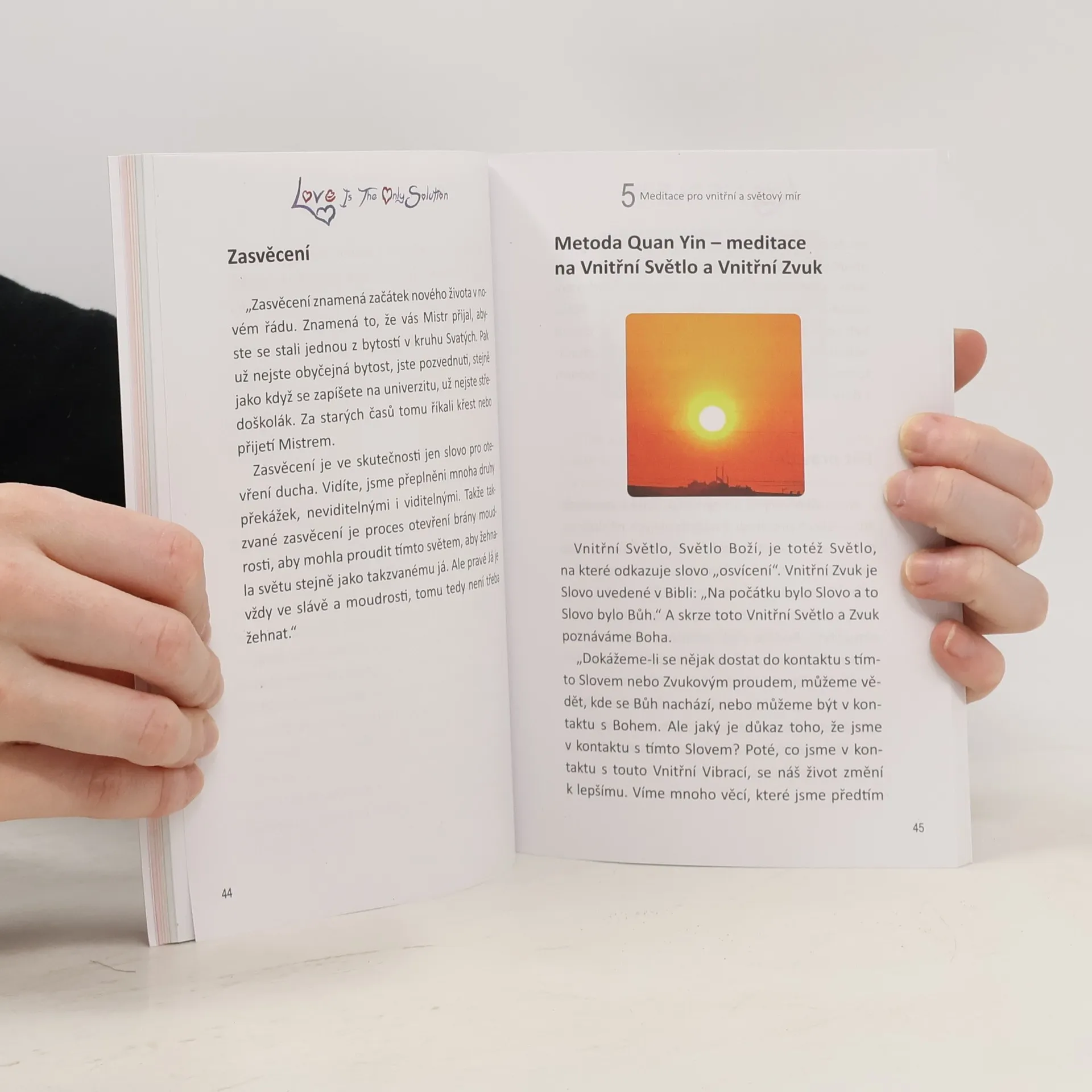 Meditace: Jak si vzpomenout na svou pravou podstatu Pokaždé, když jednobodově a z celého srdce věnujete plnou pozornost jedné věci, je to meditace. Já věnuji pozornost pouze Vnitřní Síle, soucitu, lásce, milosrdné kvalitě Boha a to je meditace. Abychom tak opravdu činili, měli bychom jen sedět v tichém koutě a být sami sebou, to je proces meditace. Ale člověk nezíská něco tím, že sedí tiše v koutě. Nejprve musíte být v kontaktu s touto Vnitřní Silou a meditovat pomocí této Vnitřní Síly. Tomu se říká sebeprobuzení. Musíme uvnitř probudit skutečné Já a nechat Ho meditovat, ne náš lidský mozek a náš smrtelný rozum. Pokud to neuděláte, posadíte se a budete přemýšlet o tisíci věcech a nebudete schopni utlumit své vášně. Ale pokud jste sebeprobuzený, skutečné vnitřní Já, Boží Síla ve vás bude ovládat vše. Skutečnou meditaci poznáte až poté, co jste probuzeni přenosem od skutečného Mistra. Jinak je to jen ztráta času v zápase se svým tělem a myslí."