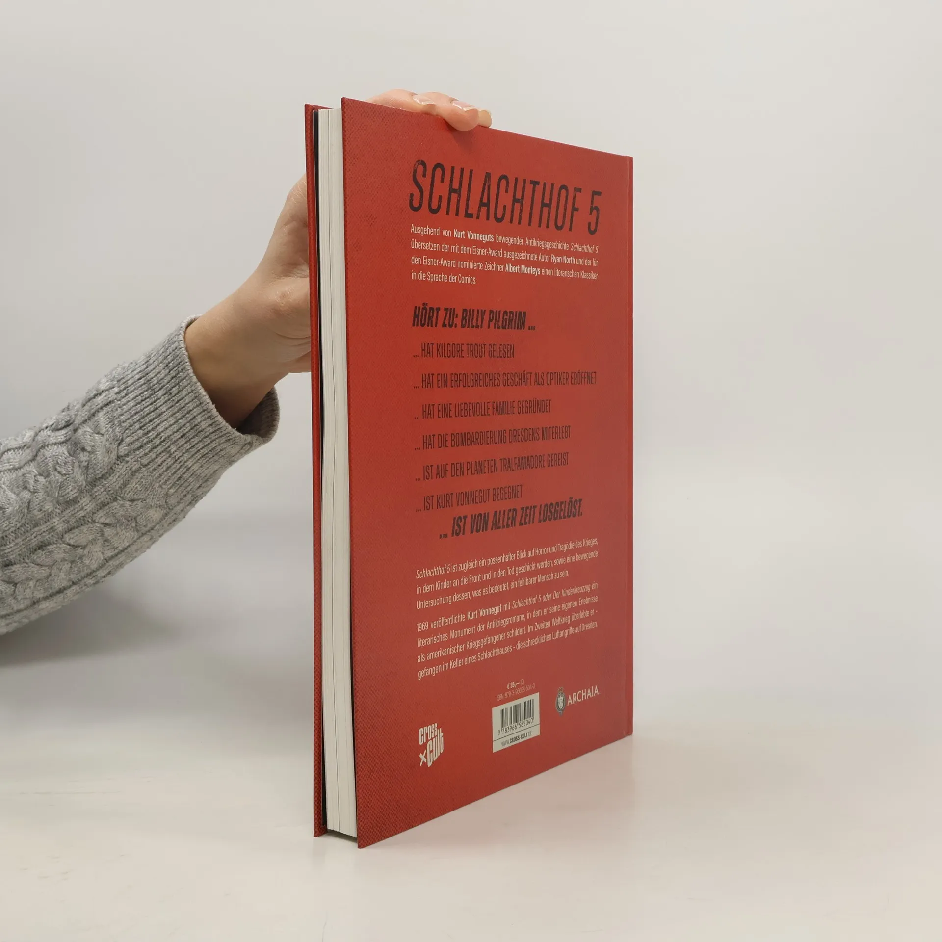 Weltliteratur im Gewand einer Graphic Novel 1969 veröffentlichte Kurt Vonnegut mit SCHLACHTHOF 5 ODER DER KINDERKREUZZUG ein literarisches Monument der Antikriegsromane, in dem er seine eigenen Erlebnisse als amerikanischer Kriegsgefangener schildert. Im Zweiten Weltkrieg überlebte er – gefangen in dem Keller eines Schlachthauses – die schrecklichen Luftangriffe auf Dresden. SCHLACHTHOF 5 ist zugleich ein possenhafter Blick auf Horror und Tragödie des Krieges, in dem Kinder an die Front und in den Tod geschickt werden, sowie eine bewegende Untersuchung dessen, was es bedeutet, ein fehlbarer Mensch zu sein: Billy Pilgrim hat Kilgore Trout gelesen und hat ein erfolgreiches Geschäft rundum die Augenoptik eröffnet. Billy Pilgrim hat eine liebevolle Familie gegründet und die Bombardierung Dresdens miterlebt. Billy Pilgrim ist auf den Planeten Tralfamadore gereist und hat Kurt Vonnegut getroffen. Billy Pilgrim ist von aller Zeit losgelöst. Ausgehend von Kurt Vonneguts bewegender Antikriegsgeschichte SCHLACHTHOF 5 übersetzen der mit dem Eisner Award ausgezeichnete Autor Ryan North (THE UNBEATABLE SQUIRREL GIRL) und der für den Eisner Award nominierte Zeichner Albert Monteys (UNIVERSE!) einen literarischen Klassiker in die Sprache der Comics.