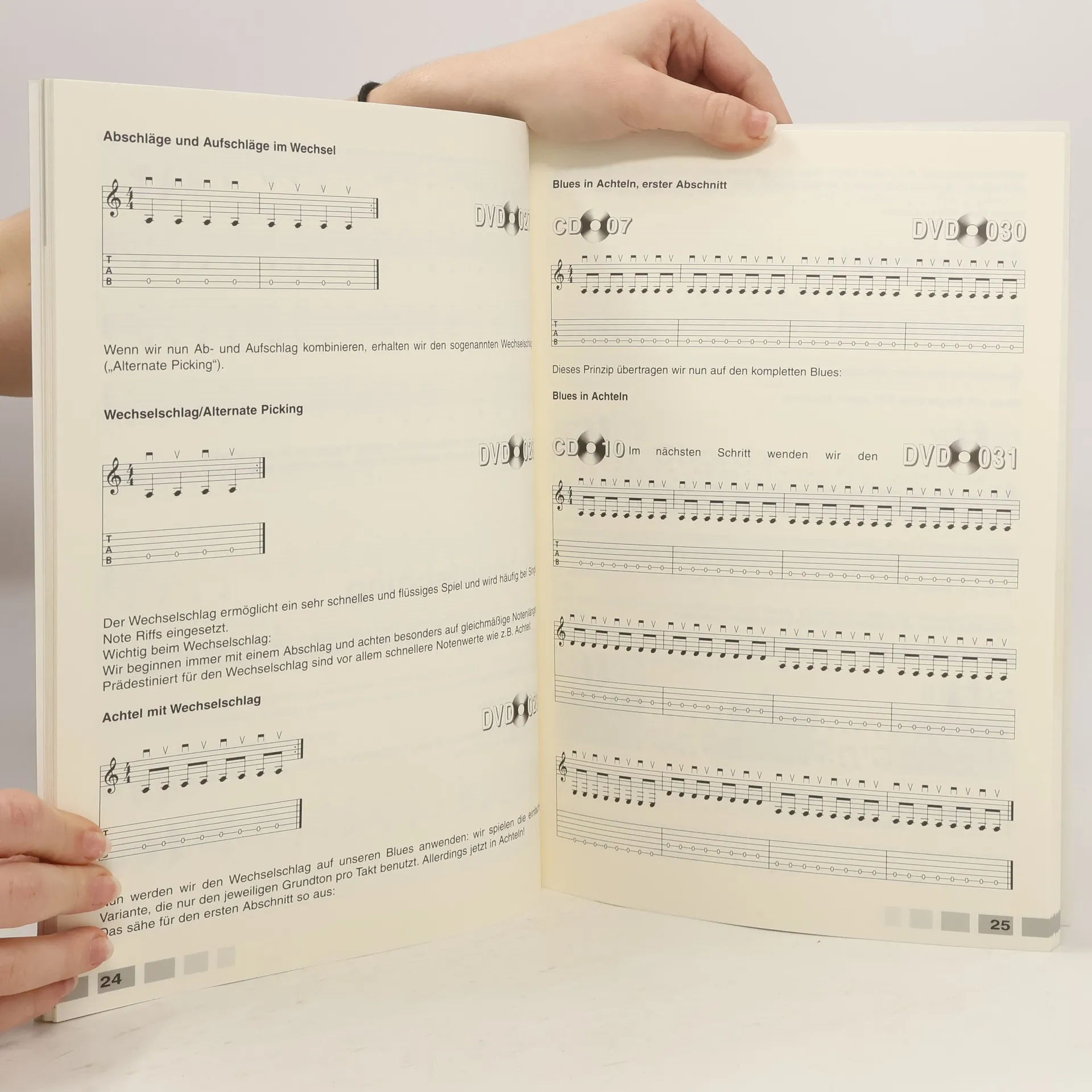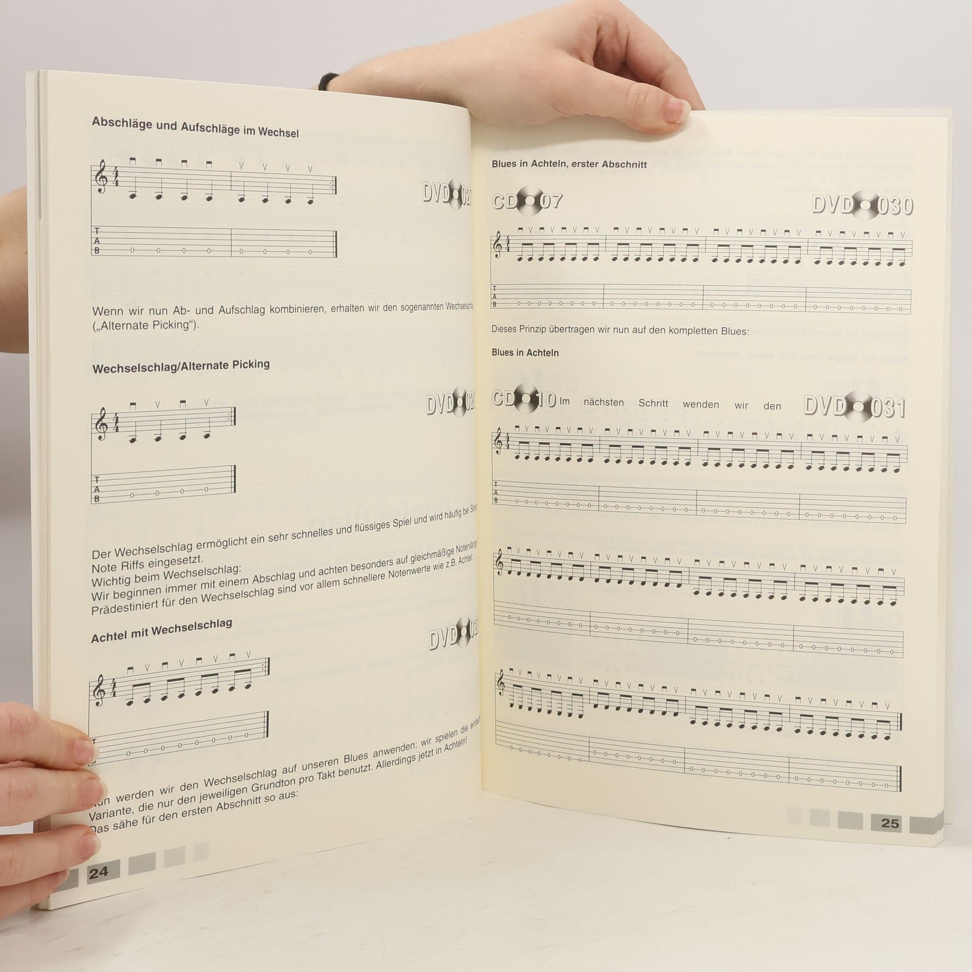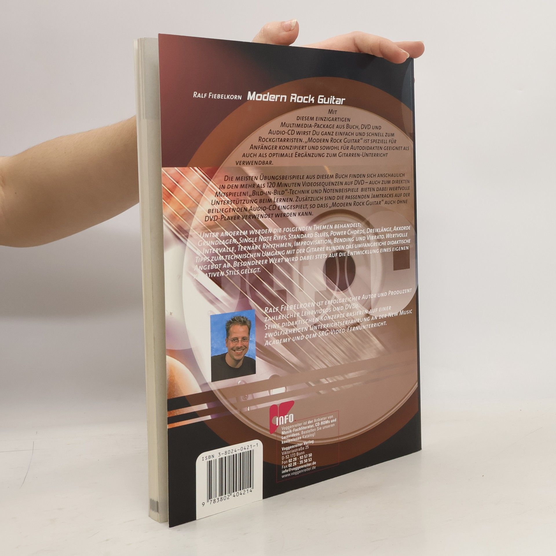 Mit diesem speziell für Anfänger konzipiertem Multimedia-Package, bestehend aus Buch, DVD und Audio-CD, wird jeder einfach und schnell zum Rockgitarristen! Für Autodidakten und als optimale Ergänzung zum Gitarren-Unterricht bestens geeignet. Die meisten Übungsbeispiele aus diesem Buch finden sich anschaulich, in den mehr als 120 Minuten Videosequenzen, auf DVD - auch zum direkten Mitspielen. "Bild-in-Bild"-Technik und Notenbeispiele bieten dabei wertvolle Unterstützung beim Lernen. Zusätzlich sind die passenden Jamtracks auf der beiliegenden Audio-CD eingespielt, so dass "Modern Rock Guitar" auch ohne DVD-Player verwendet werden kann. Behandelte Themen: Grundlagen, Single Note Riffs, Standard Blues, Power Chords, Dreiklänge, Akkorde & Intervalle, Ternäre Rhythmen, Improvisation, Bending, Vibrato und Tipps zum technischen Umgang mit der Gitarre.